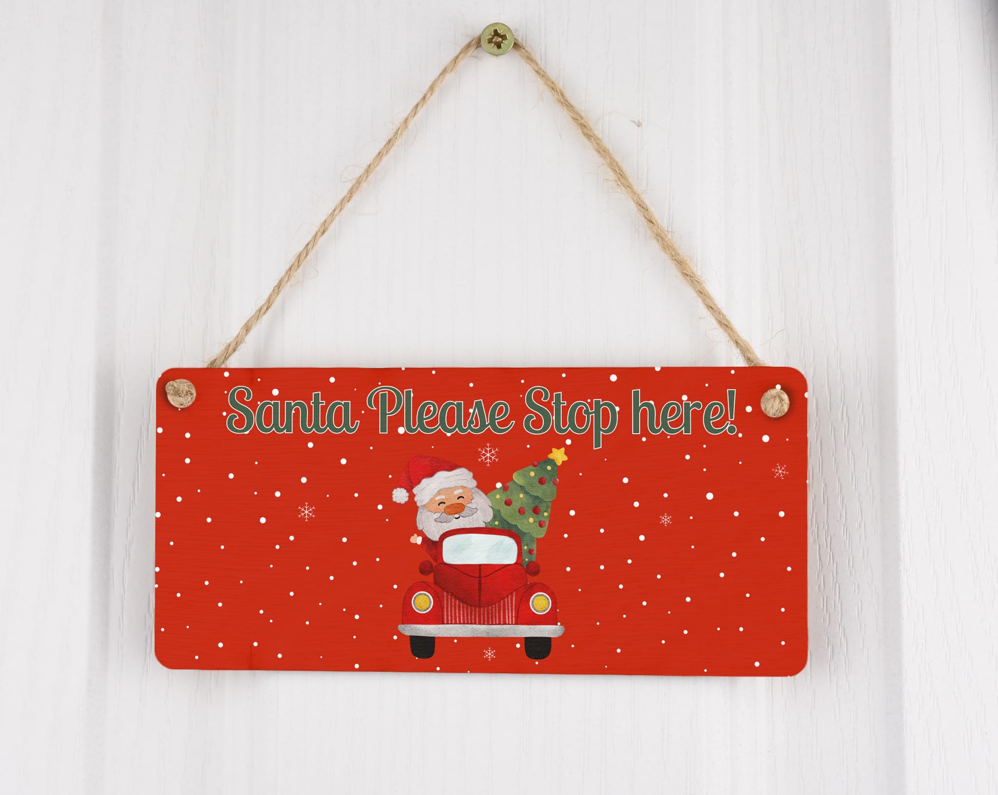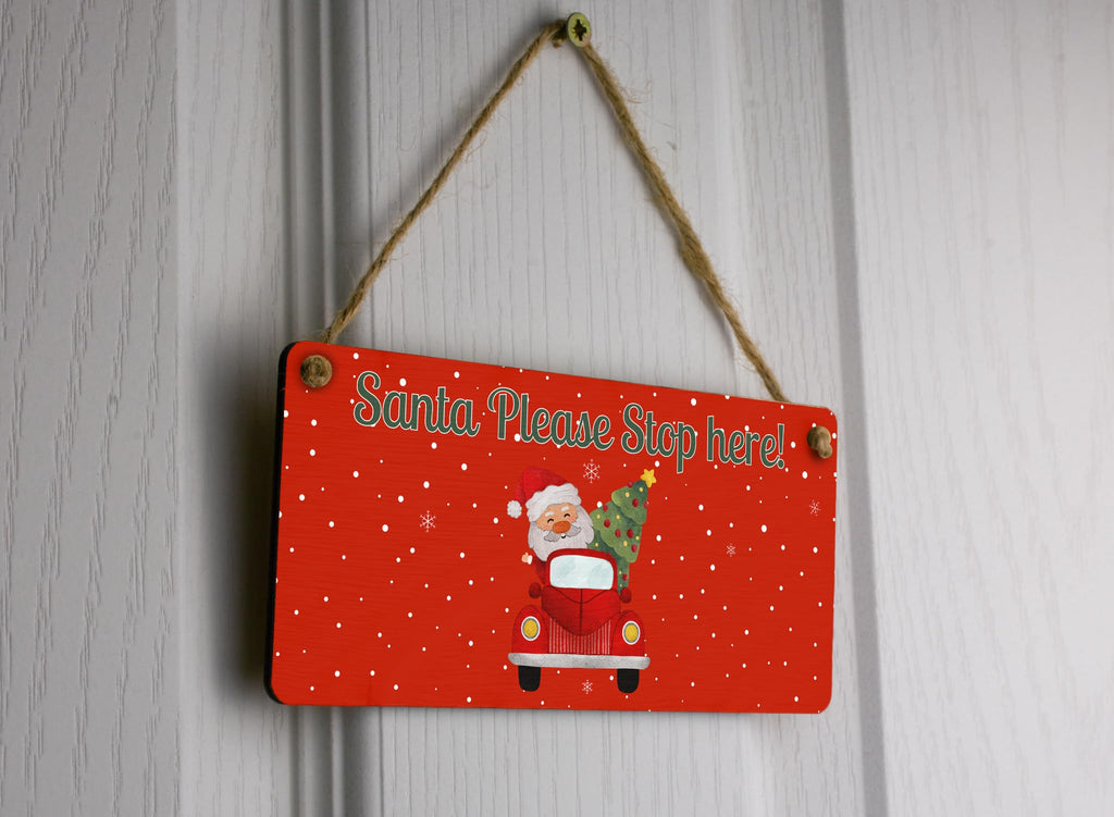 Add a touch of festive charm to your home with this Full Colour Christmas Plywood Hanging Sign. Made from high-quality plywood, this sign features a delightful Santa design and the words 'Santa, Please Stop Here!' It is the perfect Christmas decoration to create a warm and inviting atmosphere for kids and adults alike. Hang it on your wall, door, or anywhere you want to spread the Christmas cheer. This full-colour Christmas sign is sure to capture the attention of all who see it, making it a wonderful addition to your holiday decor collection. Get ready to celebrate the magic of Christmas with this beautiful and vibrant kids' decoration!