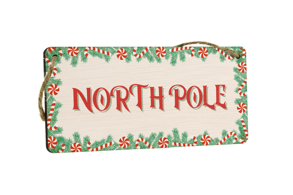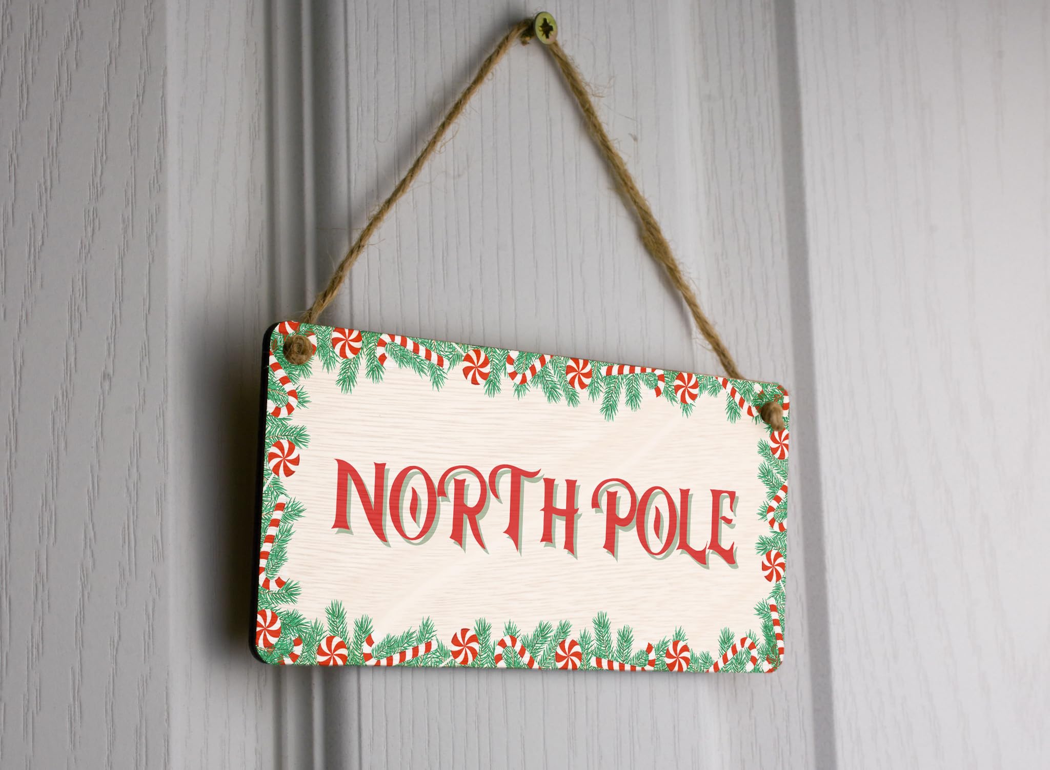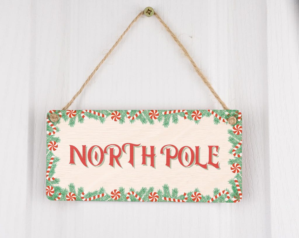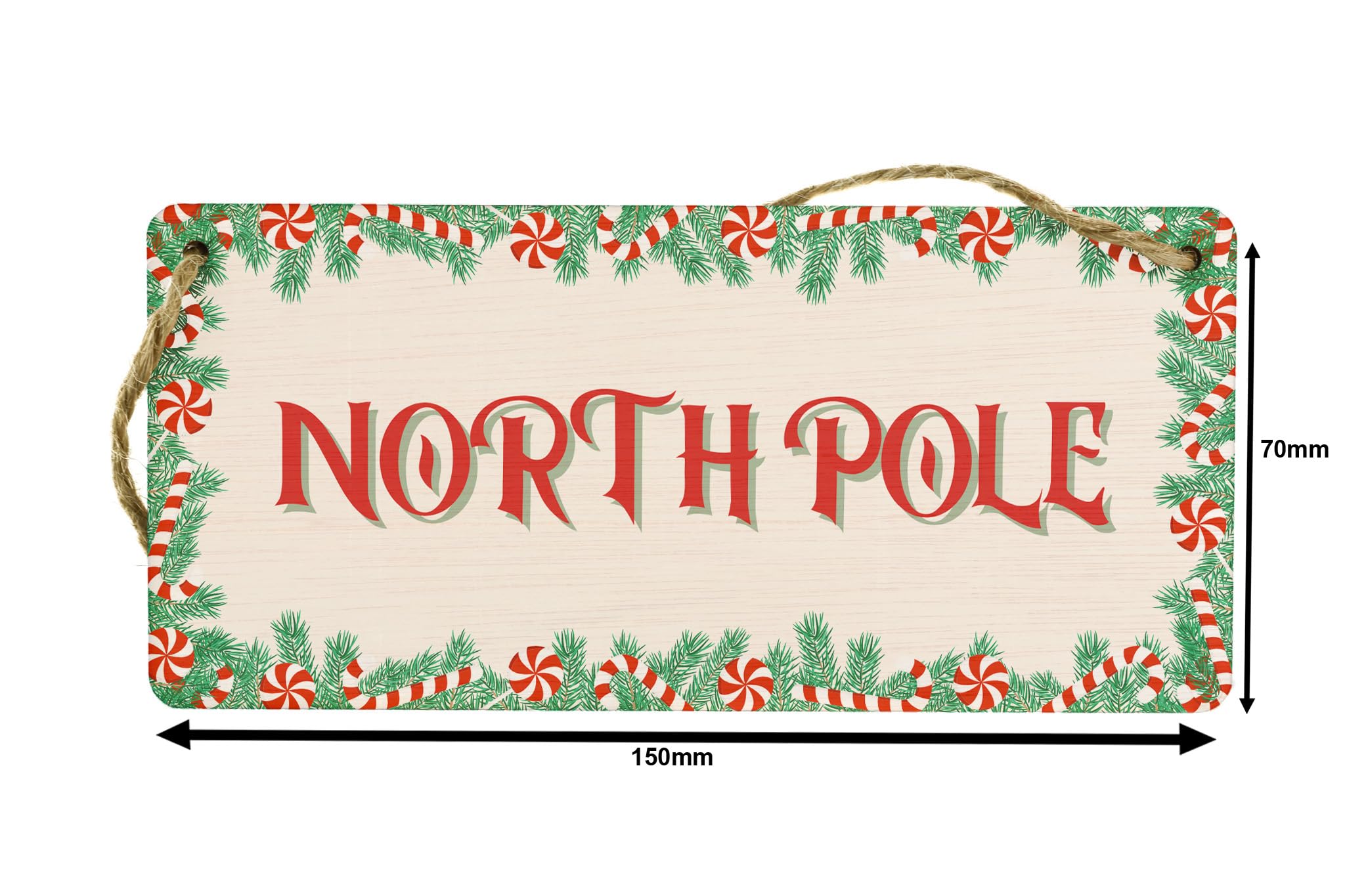 Add a touch of festive spirit to your home with this Full Colour Festive Plywood Hanging Sign. Made from sturdy plywood, this hanging sign features a vibrant and eye-catching design that will surely brighten up any space. Hang it on your front door, in your living room, or in your kids' room to create a cheerful and festive atmosphere. The sign reads 'North Pole', adding a fun and whimsical touch to your Christmas decor. This hanging sign is not only a great decoration for the holiday season but also makes a perfect novelty gift for kids and grandparents. It is an ideal addition to any home and kids room decor.