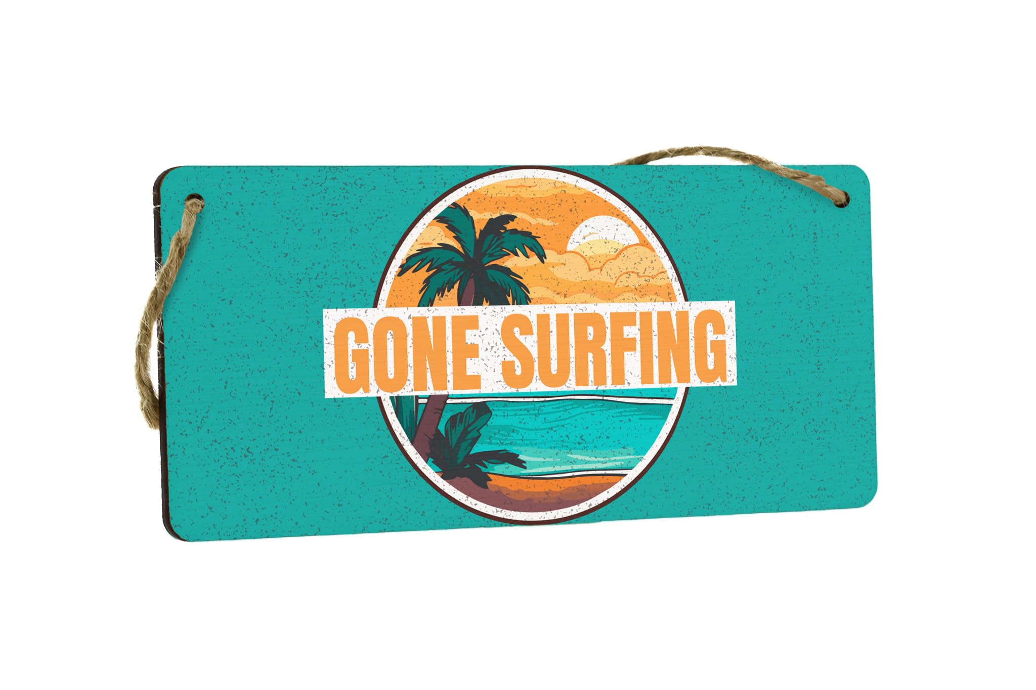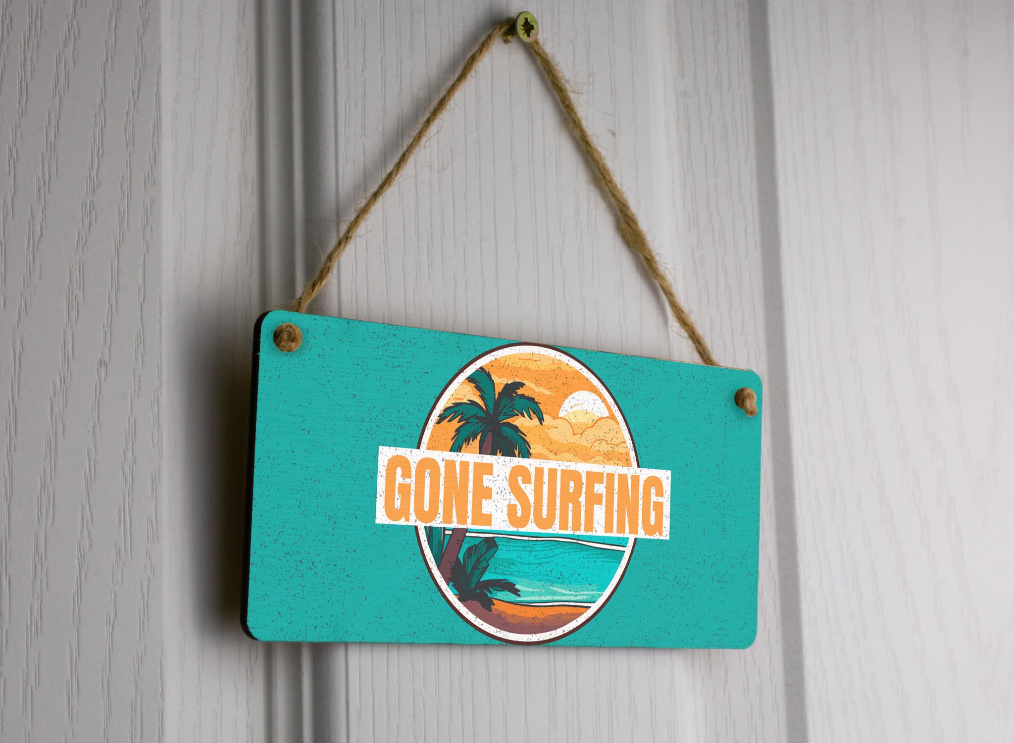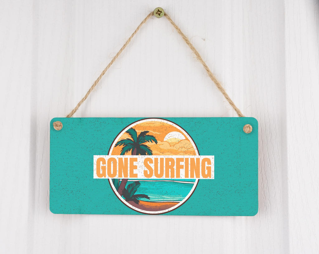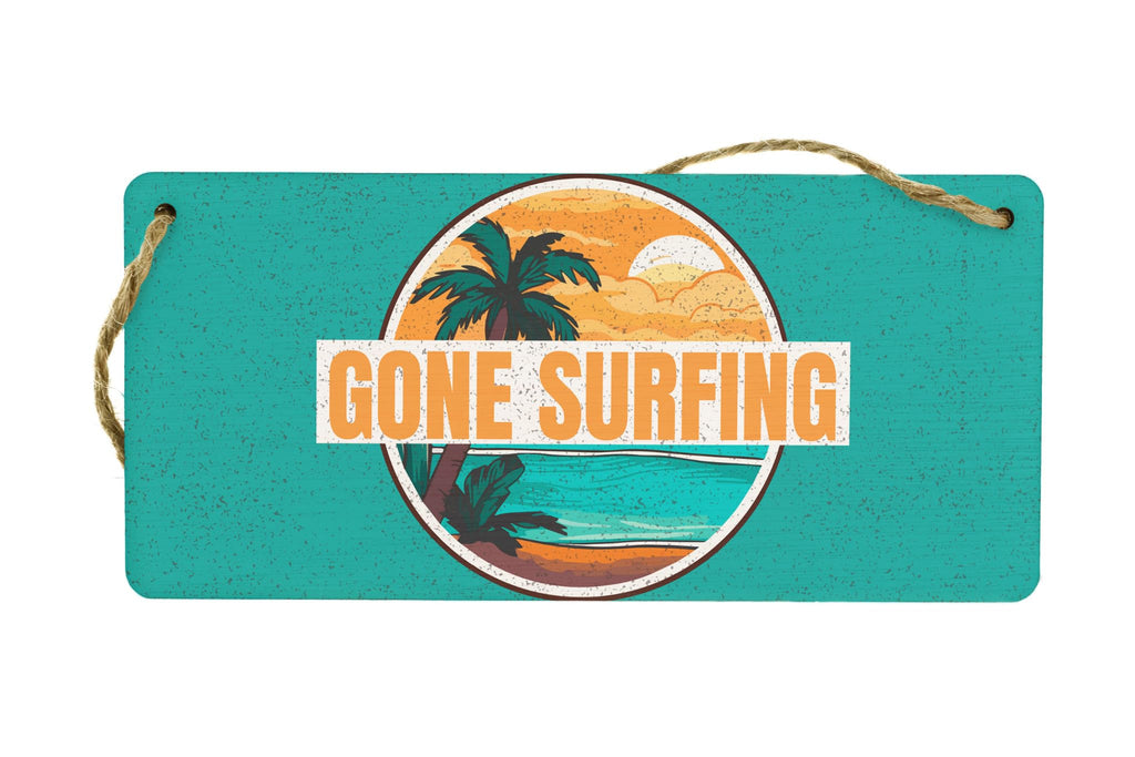 Full Colour Gone Surfing Hanging Plywood Sign - Vibrant Beach House Decor and Surfer Ideas
