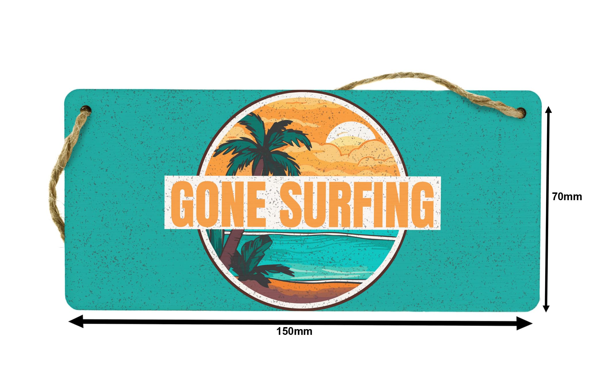 Enhance your beach house decor with this Full Colour Gone Surfing Hanging Plywood Sign. Made from sturdy plywood, this hanging sign features vibrant colors and a stylish design. The sign reads 'Gone Surfing' and is perfect for displaying on a wall or door. It makes an excellent surfer gift for your friends or family members who love the waves. Add a touch of coastal charm to your home with this eye-catching surfing sign.