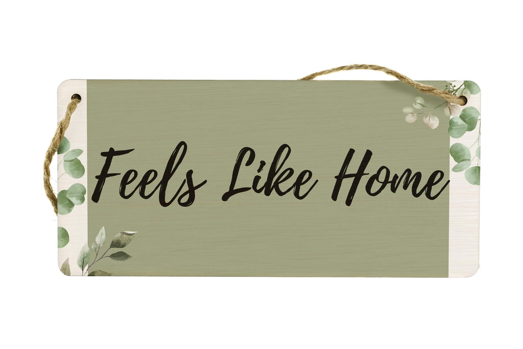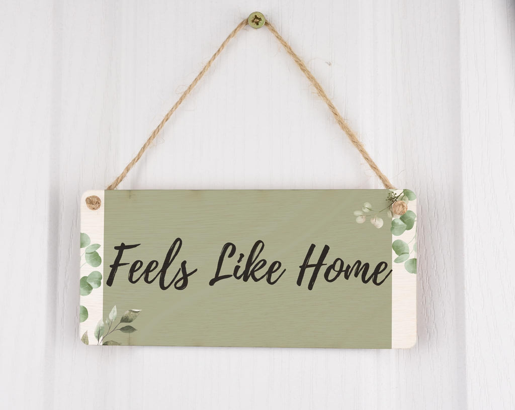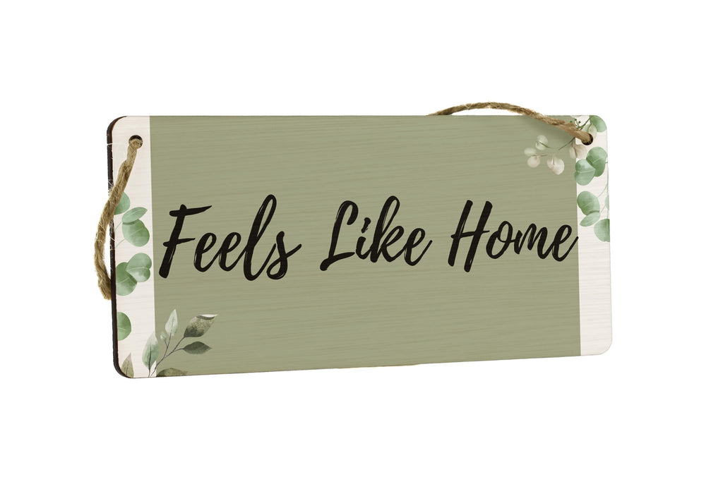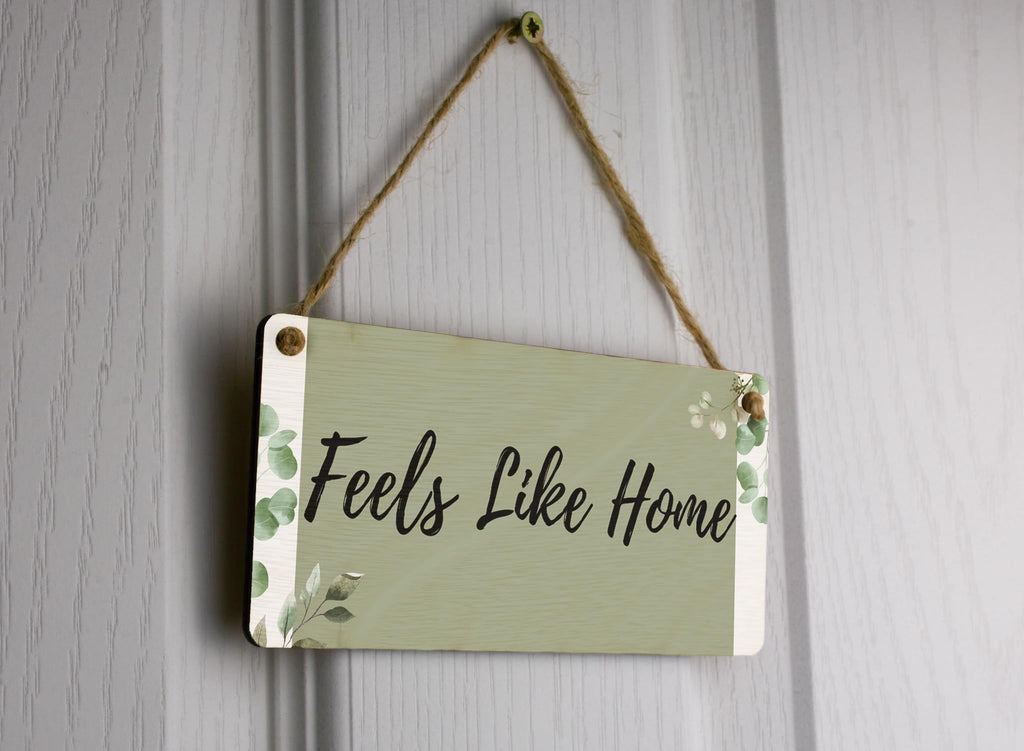 Enhance the cozy atmosphere of your living room walls with this stunning Full-Colour Hanging Plywood Sign. Crafted from high-quality plywood, this sign is built to last and exudes rustic farmhouse charm. The sign reads 'Feels Like Home,' serving as a constant reminder of the warmth and comfort your home provides. Its inspiring message will uplift your spirits and create a welcoming ambiance for you and your guests. With its exquisite full-colour design, the sign adds a vibrant touch to any space. Whether you are looking to revamp your home decor or searching for the perfect gift for a housewarming, this sign is an ideal choice. Create a sense of nostalgia and tranquility by adorning your walls with this beautiful piece of artwork. Bring farmhouse elegance and inspiration into your home with this delightful hanging sign that truly feels like home.