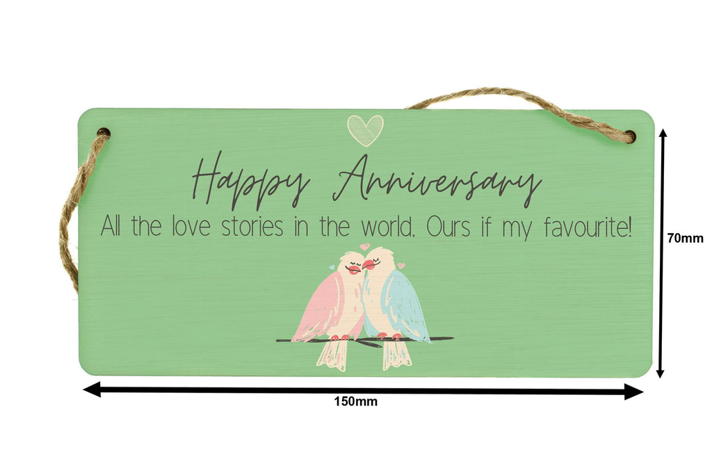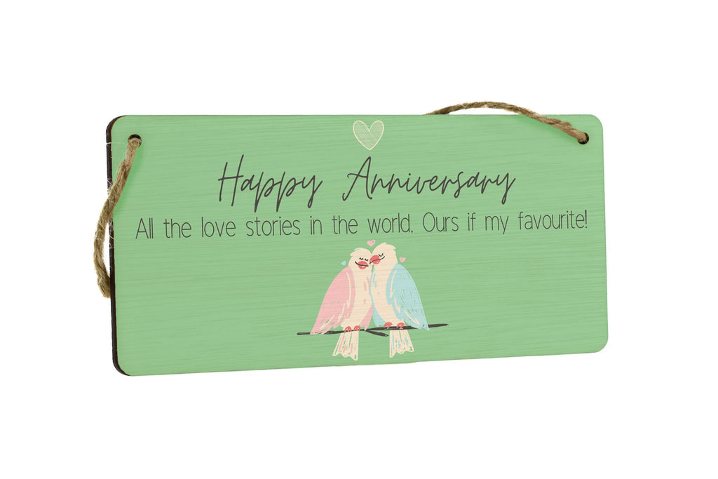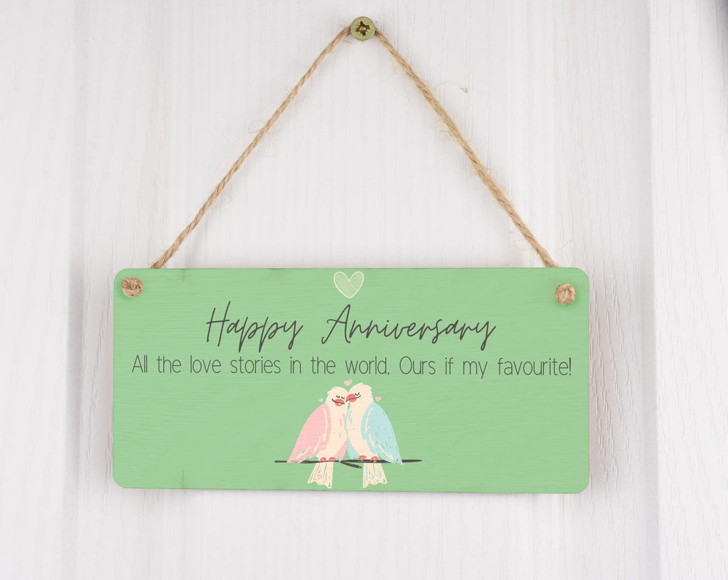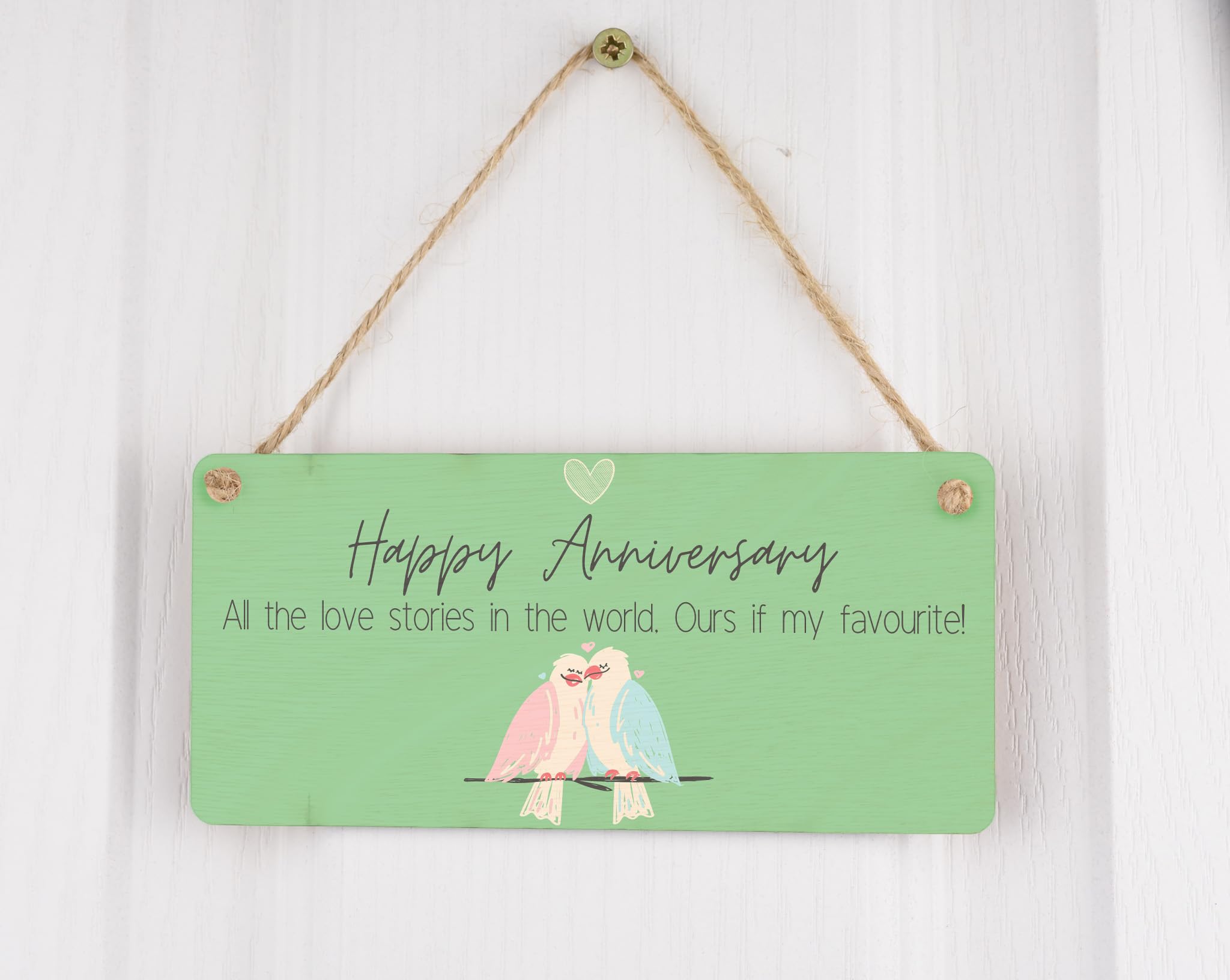Full Colour Plywood Hanging Love Sign - All the Love Stories in the World, Ours is My Favourite - Happy Anniversary Home Decor