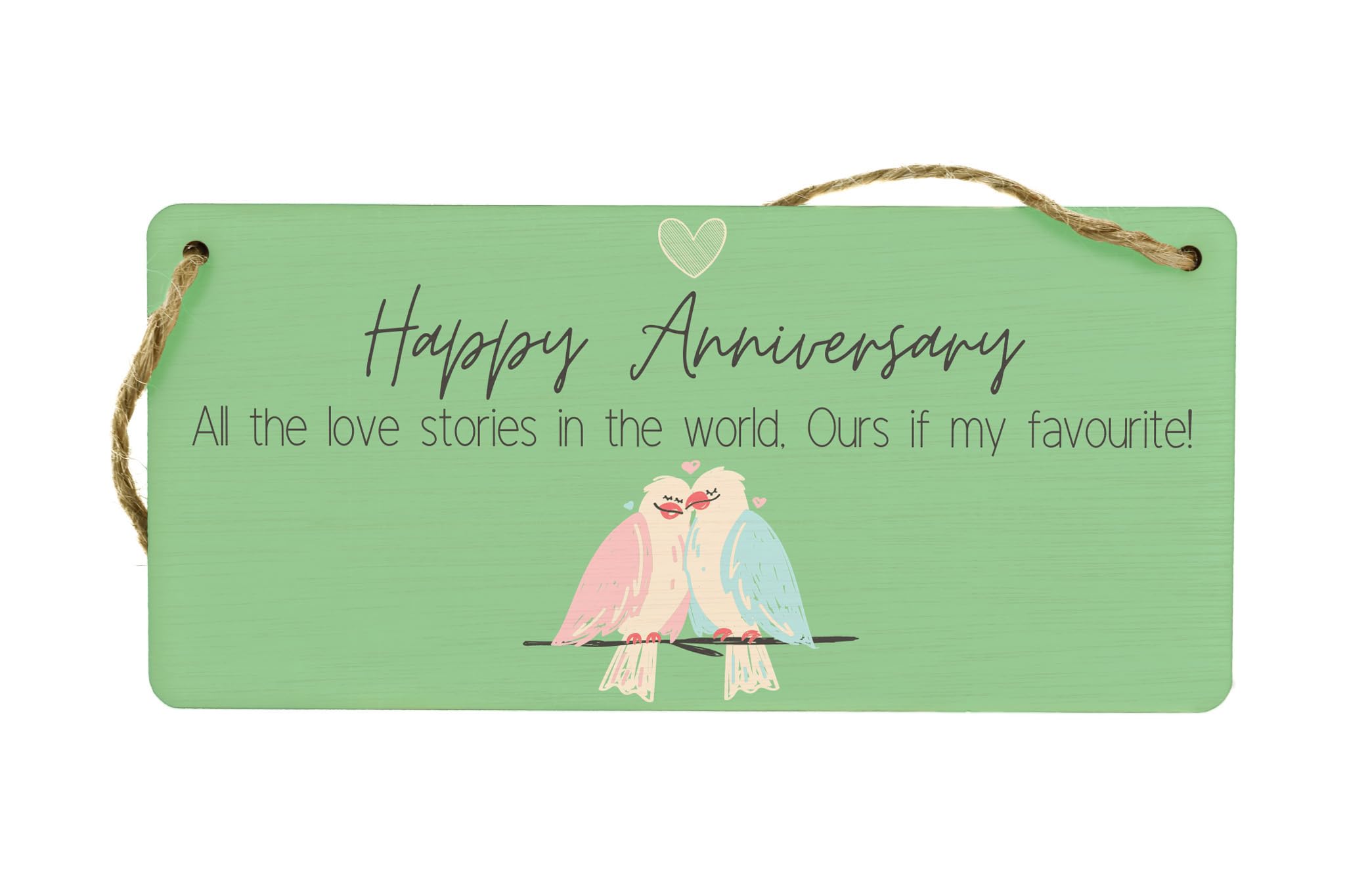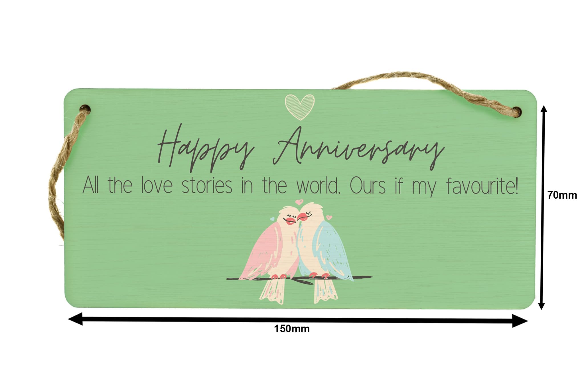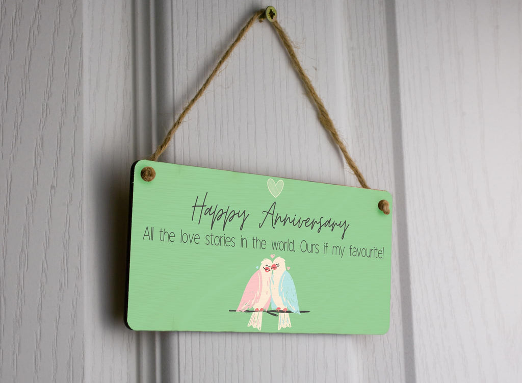 Full Colour Plywood Hanging Love Sign - All the Love Stories in the World, Ours is My Favourite - Happy Anniversary Home Decor