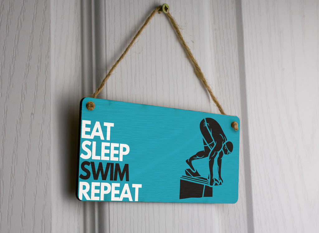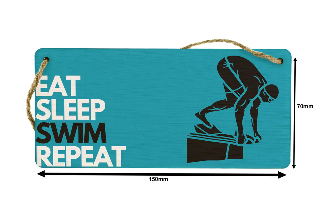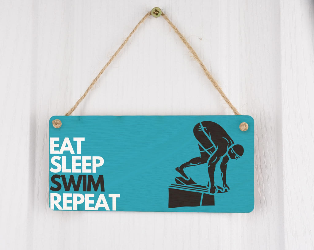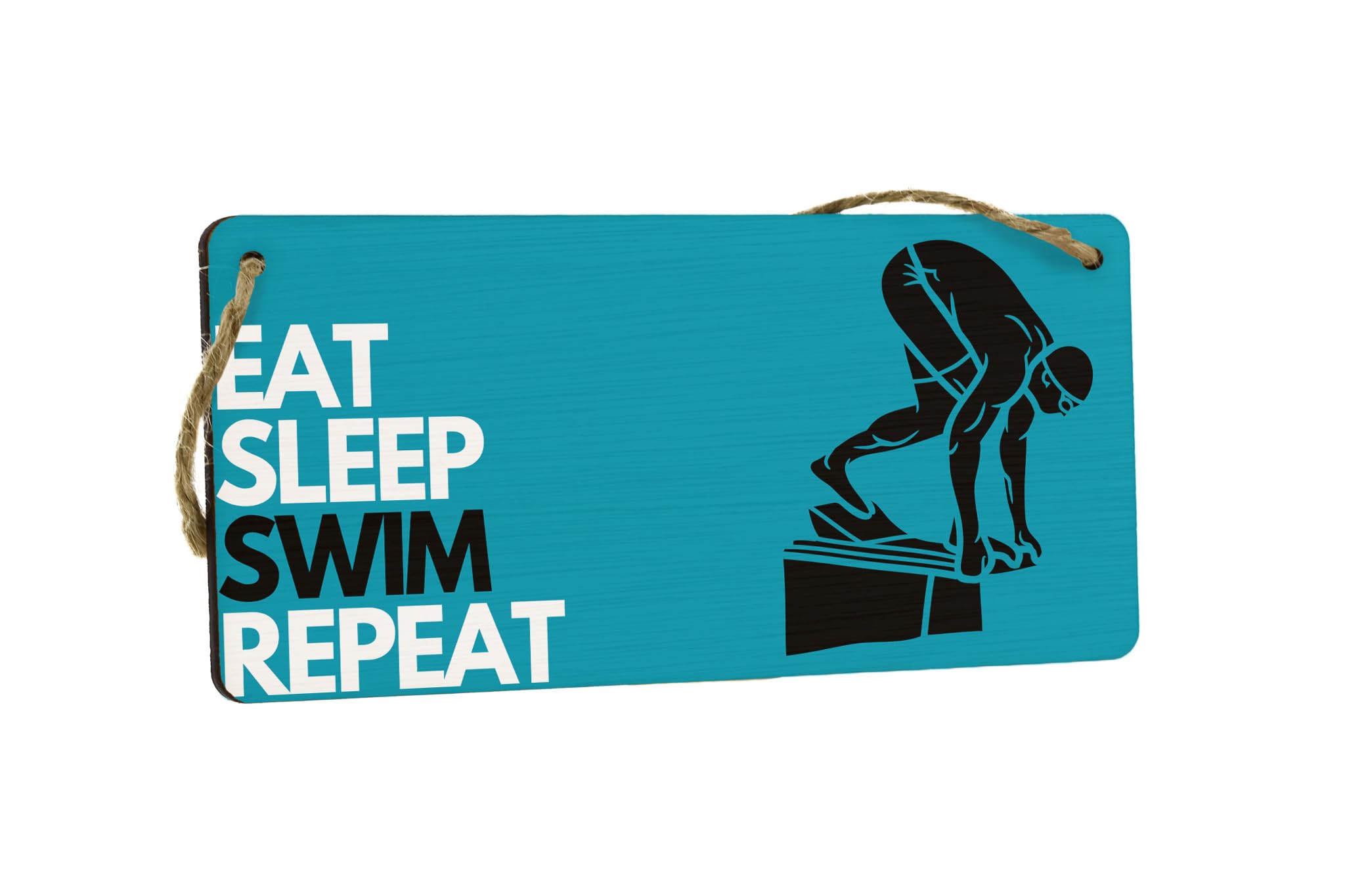 Add a splash of style to your wall with this Full Colour Plywood Hanging Sign - Eat Sleep Swim. This eye-catching sign is designed specifically for swimmers and is the perfect addition to any swimming lover's wall decor. Made from quality plywood, this sign features vibrant, full-colour printing that really brings the design to life. Hang it up in your bedroom, living room, or even in your swimming centre to showcase your passion for swimming. Whether you're a competitive swimmer or simply enjoy a dip in the pool, this sign is sure to make a statement.