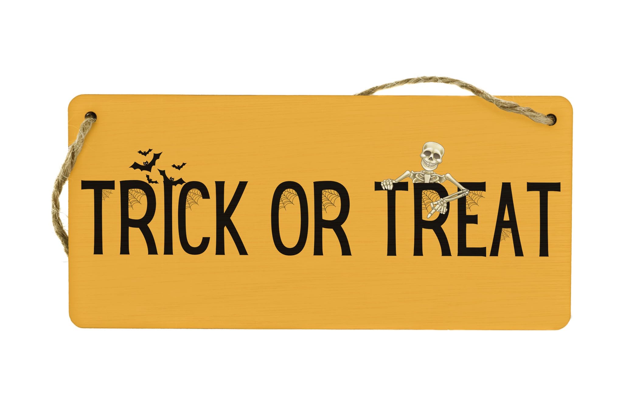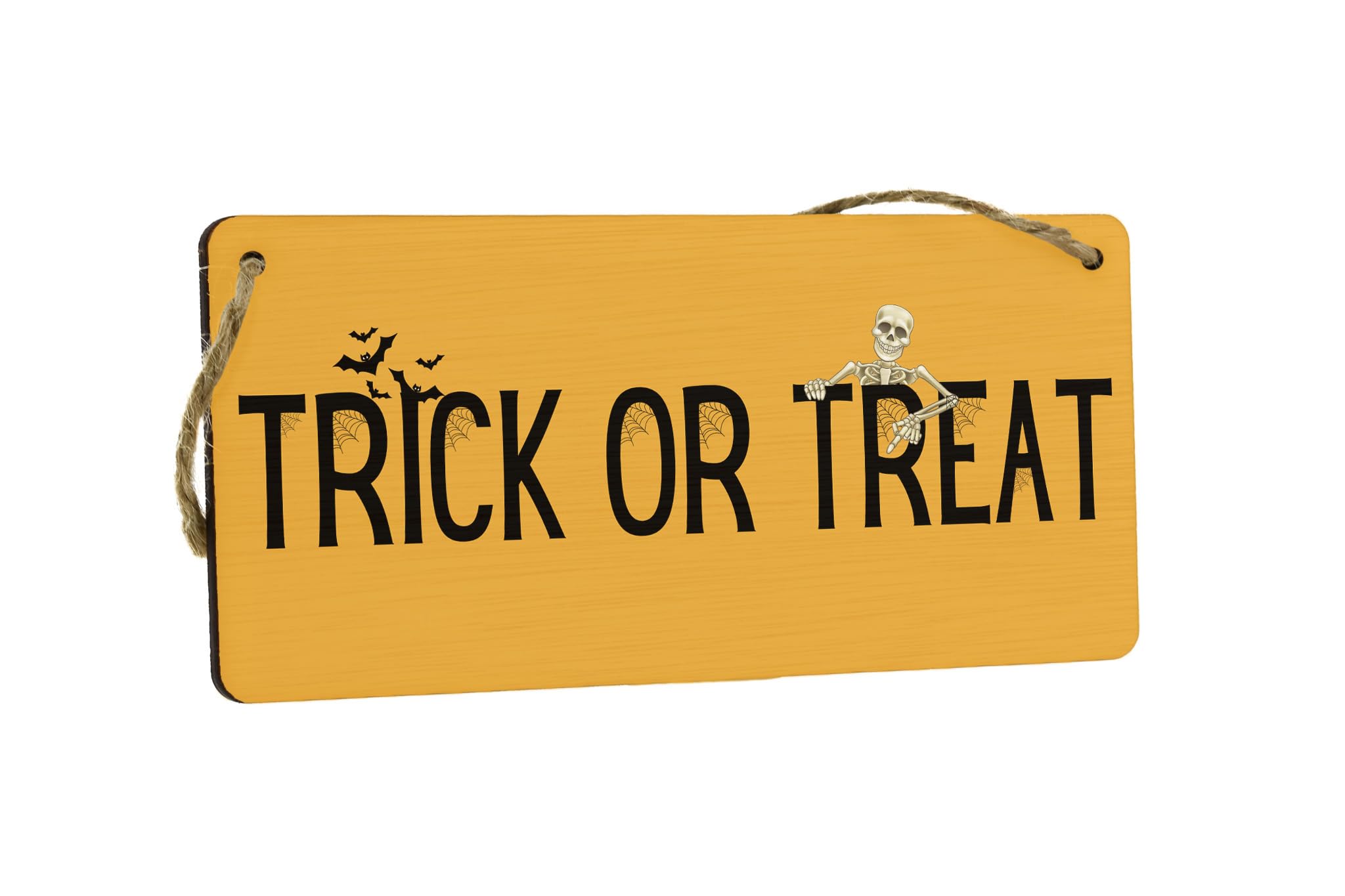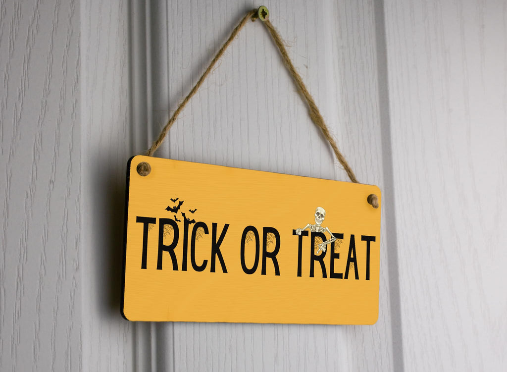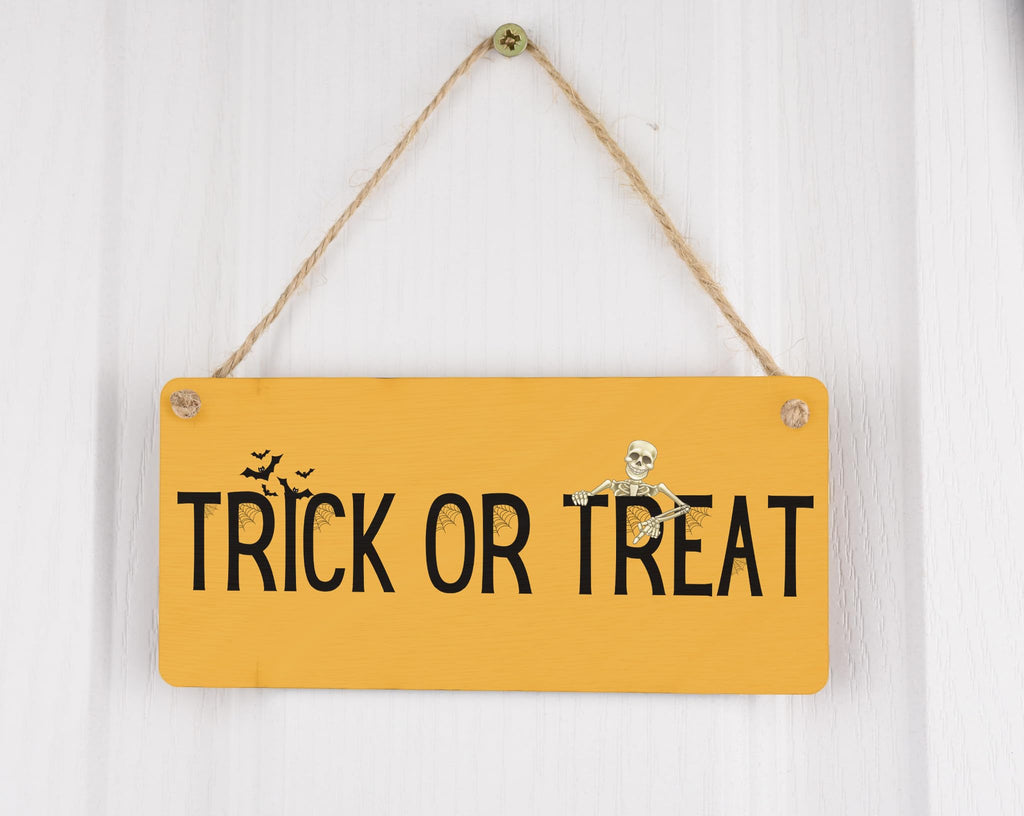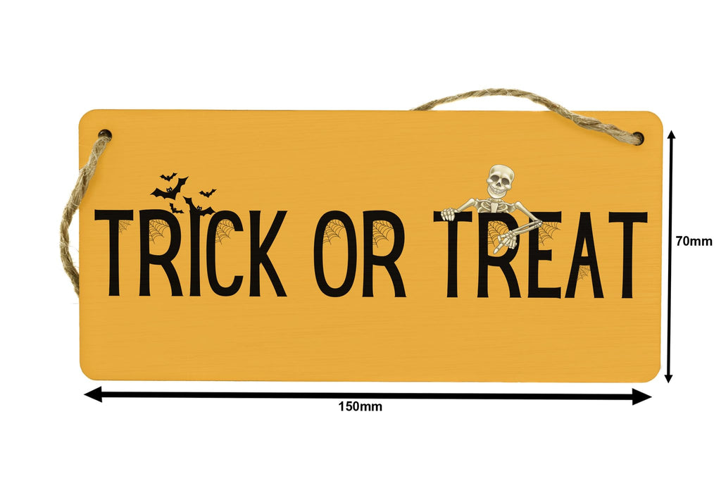 Add a festive touch to your home decor with this Full Colour Plywood Hanging Trick or Treat Sign. Made from quality plywood, this sign features a vibrant design that will instantly grab everyone's attention. Hang it on your front door or in your living room to create a spooky atmosphere for Halloween. This versatile sign can also be used year after year, making it a great investment for your Halloween decorations collection. Get ready to impress your trick-or-treaters with this eye-catching Halloween sign.