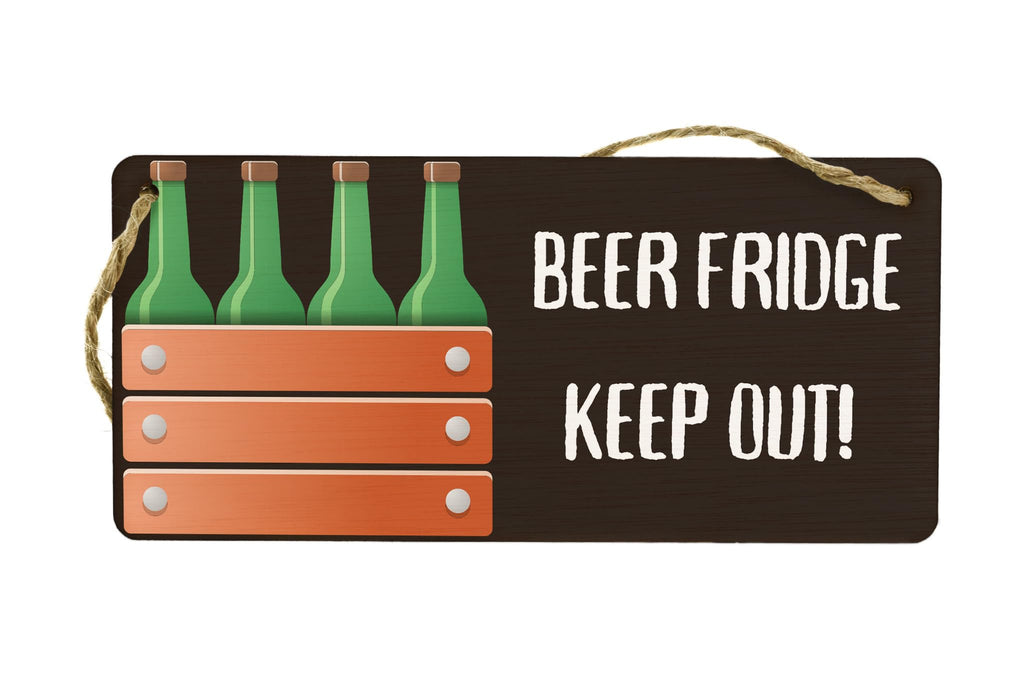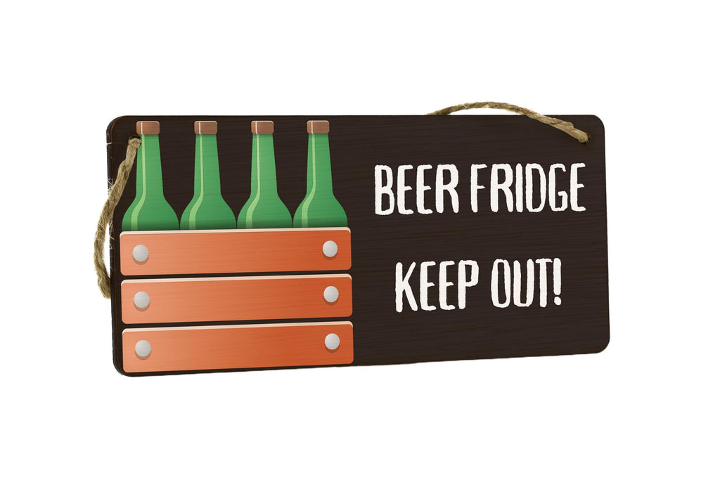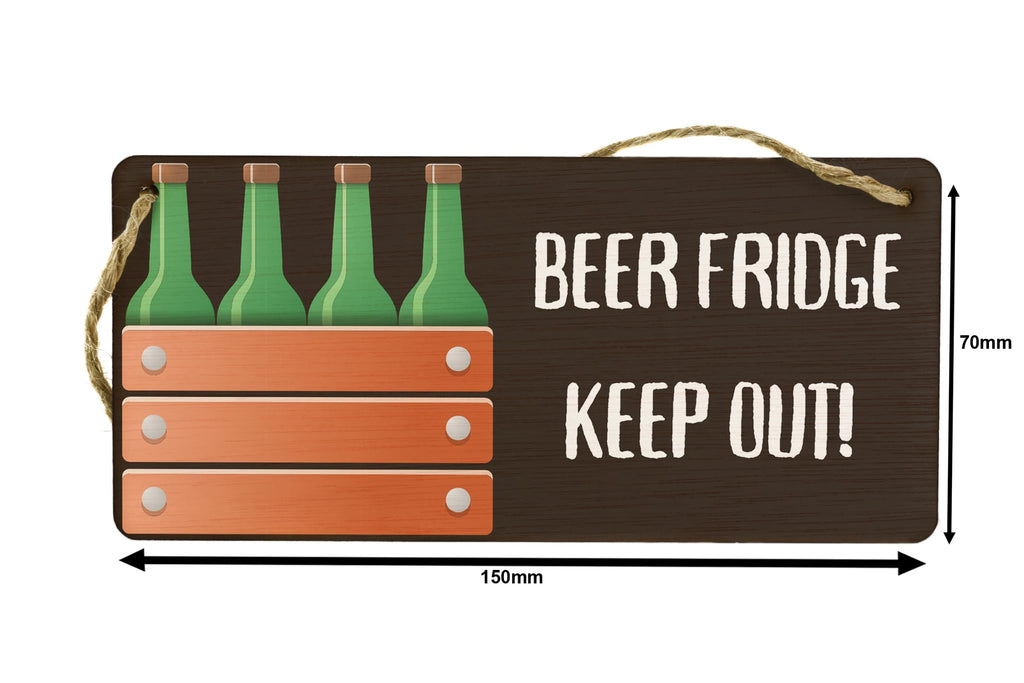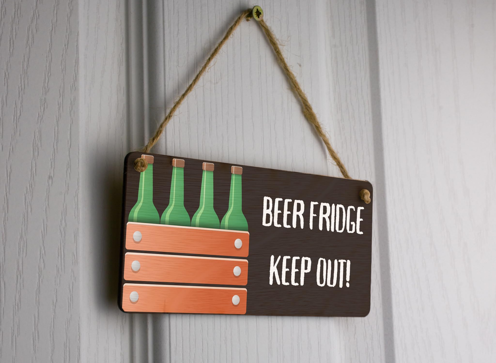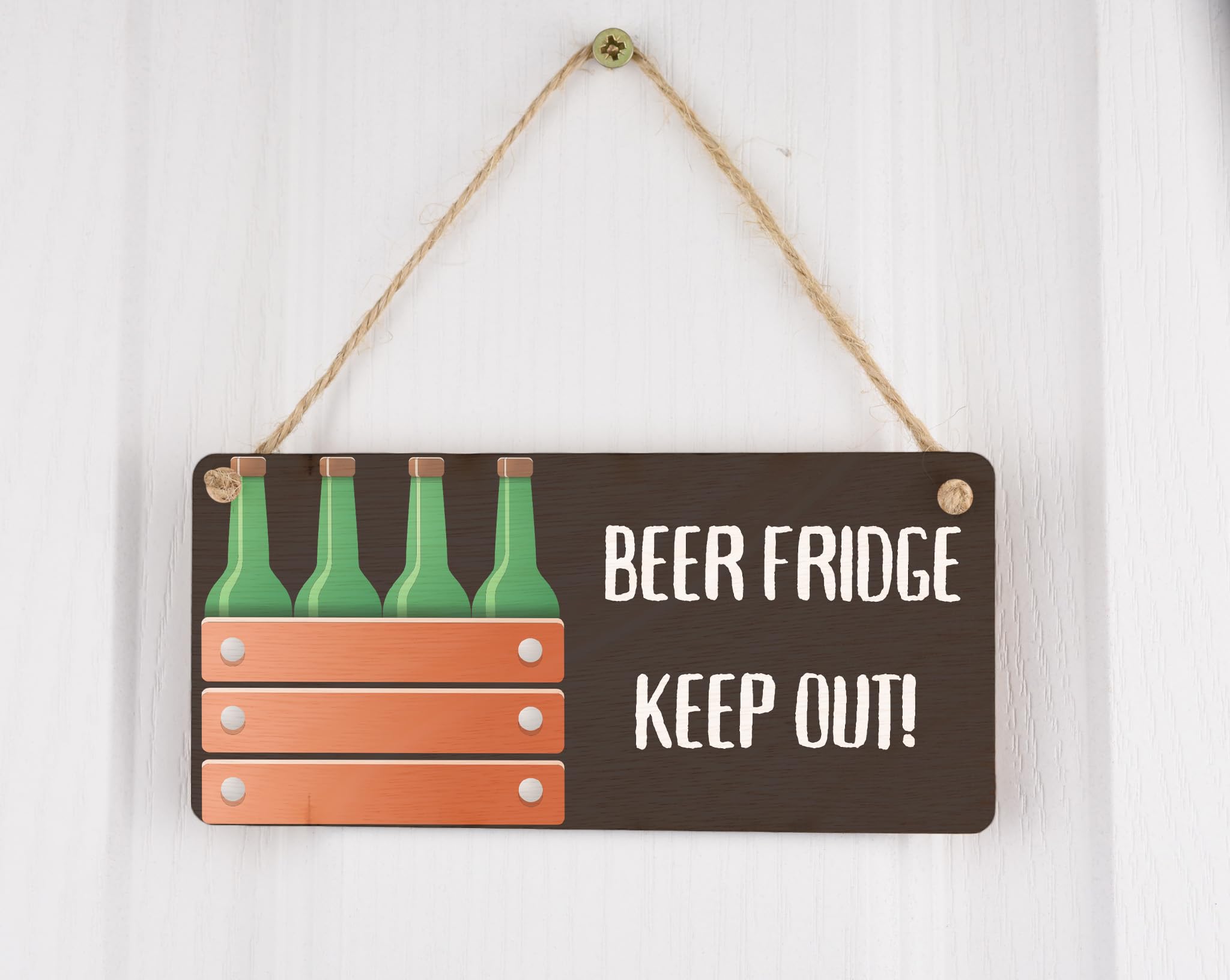 Full Colour Wooden Plywood Sign - Beer Fridge: Keep Out! Hanging Man Cave Sign for Men - Home D?cor and Beer D?cor