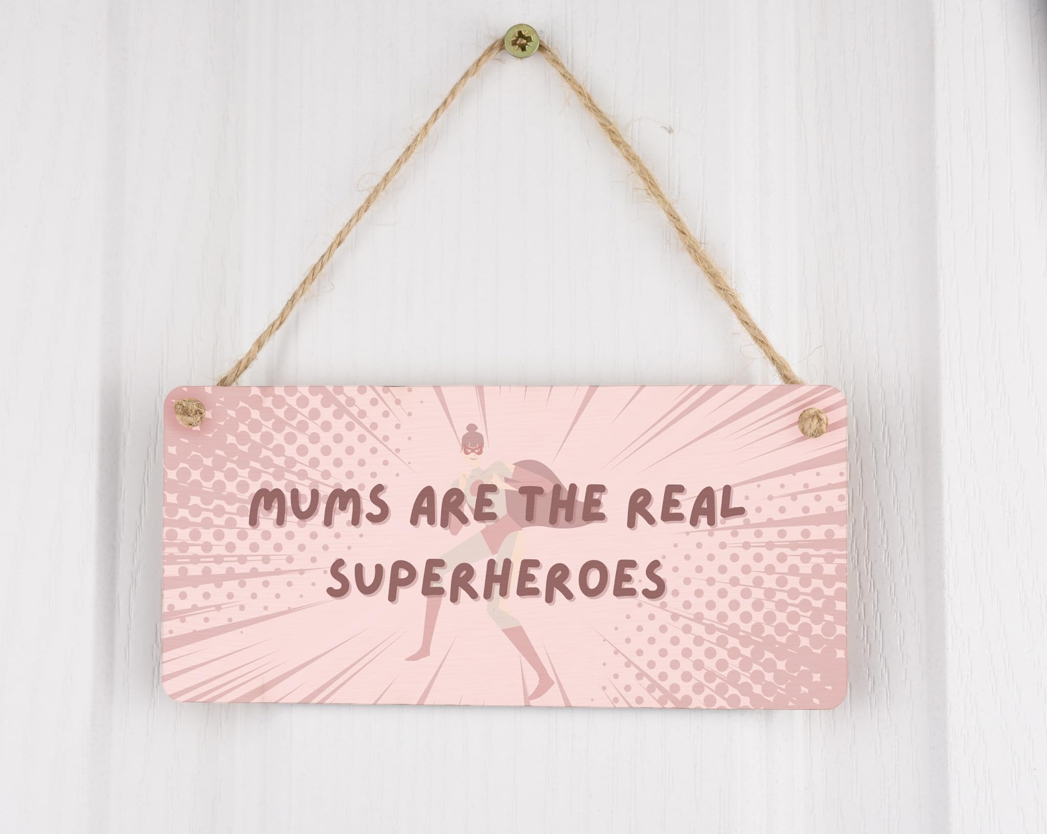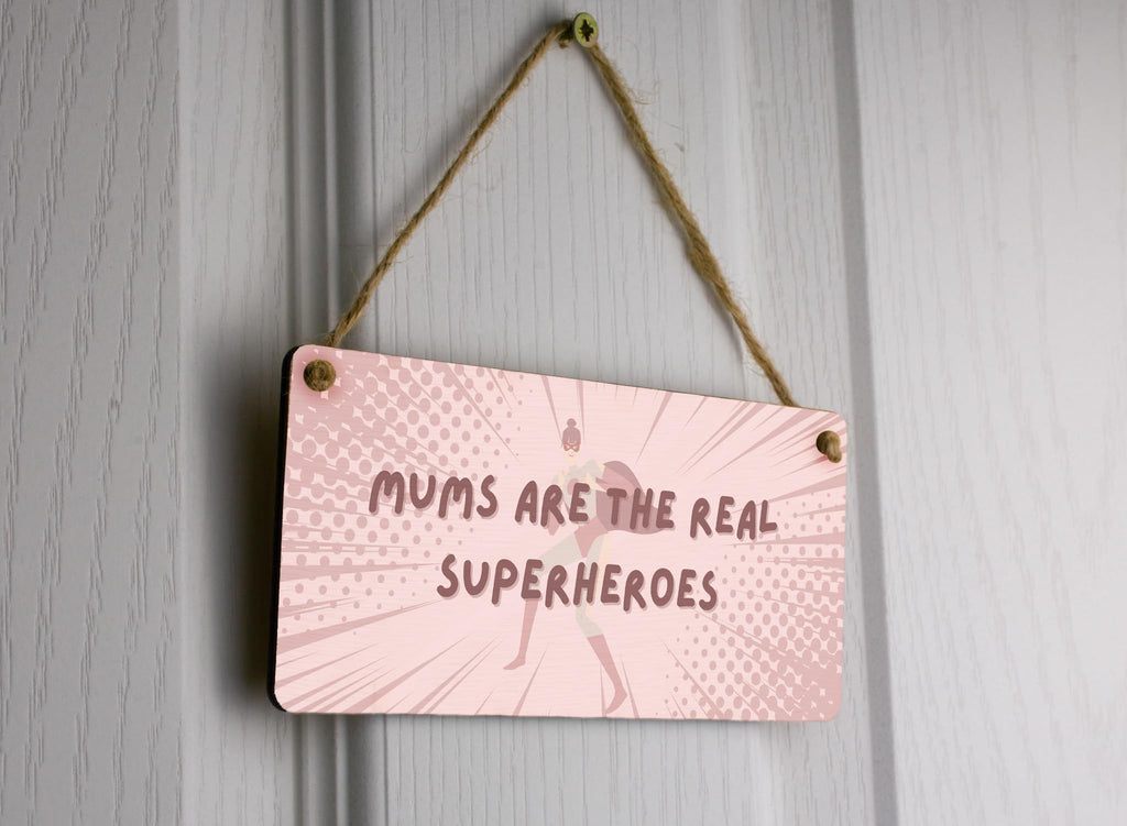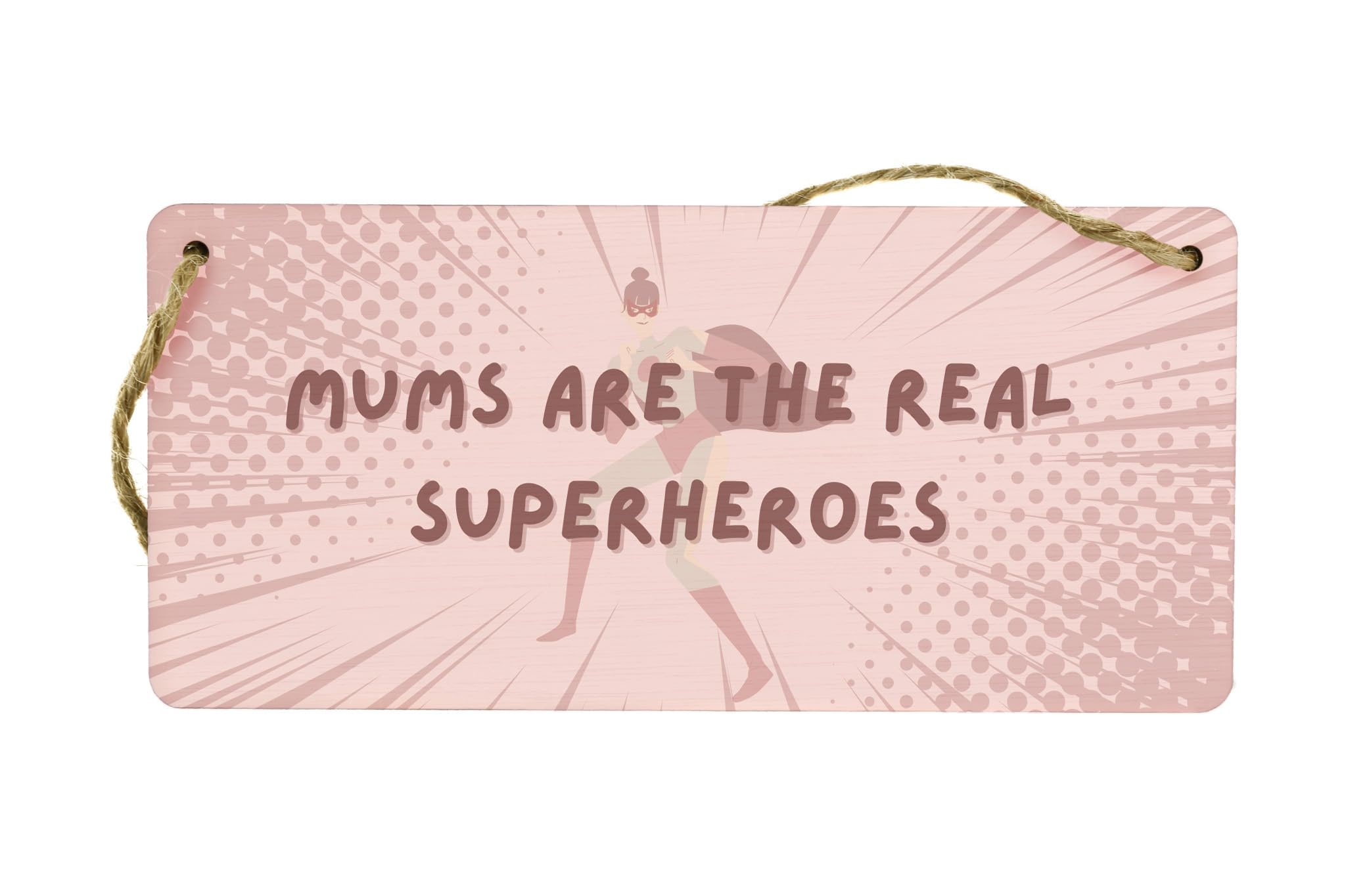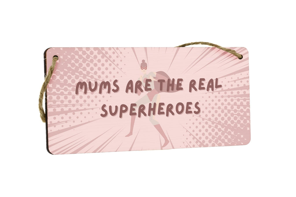 This Full Colour Wooden Plywood Superhero Mum Hanging Sign is the perfect unique home decor and gift for your mom this Mother?s Day. Made from high-quality plywood, this hanging sign features a beautiful full colour design that will brighten up any room. The sign reads 'Mums are the real superheroes' and is a perfect tribute to all the supermums out there. Whether your mom loves superheroes or simply deserves recognition for her superpowers, this wooden sign is a heartfelt way to show your love and appreciation. It makes for a wonderful Mother?s Day gift or a meaningful present for any occasion. Add a touch of personality and warmth to your mom's home with this beautiful wooden sign.