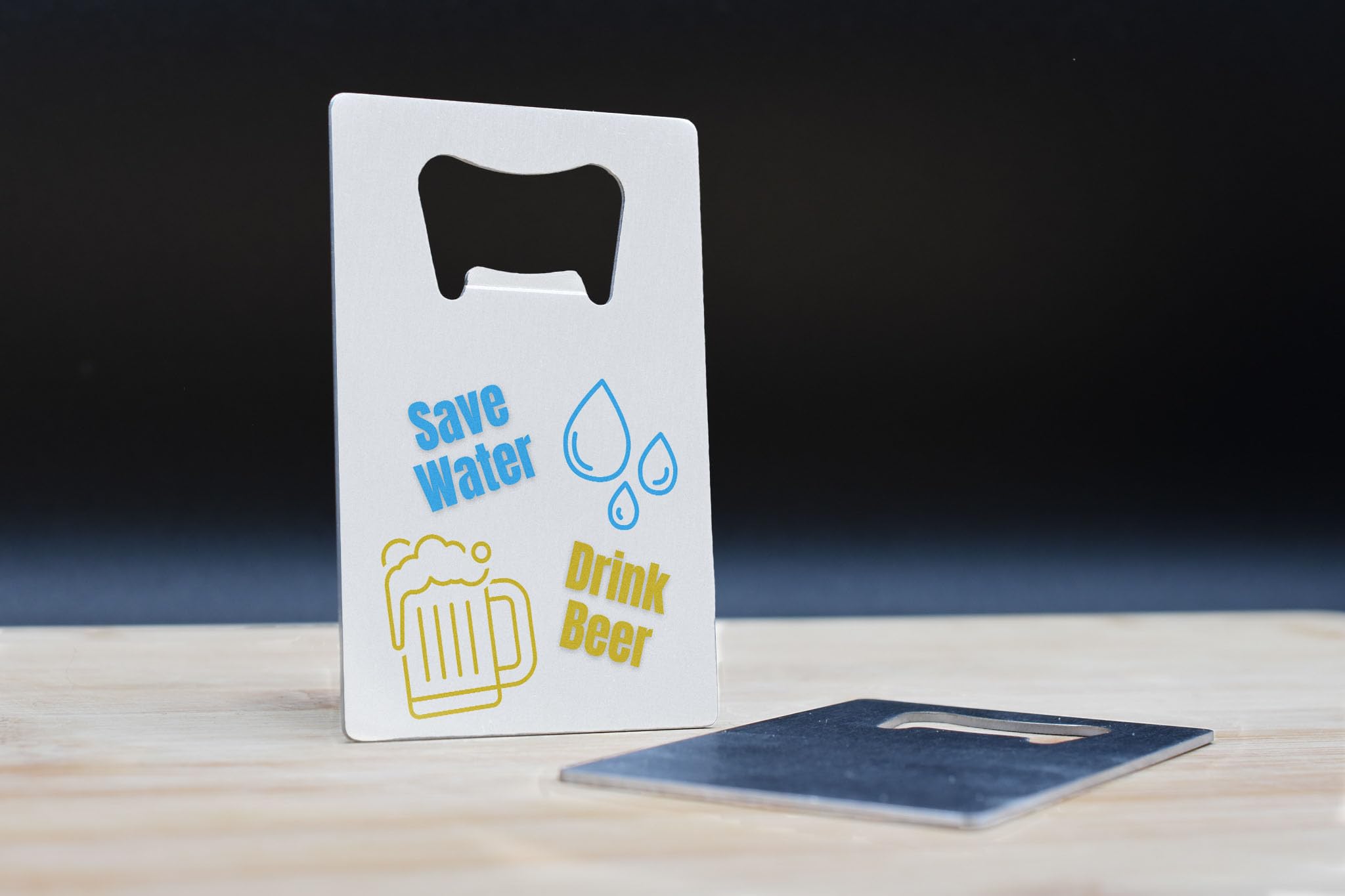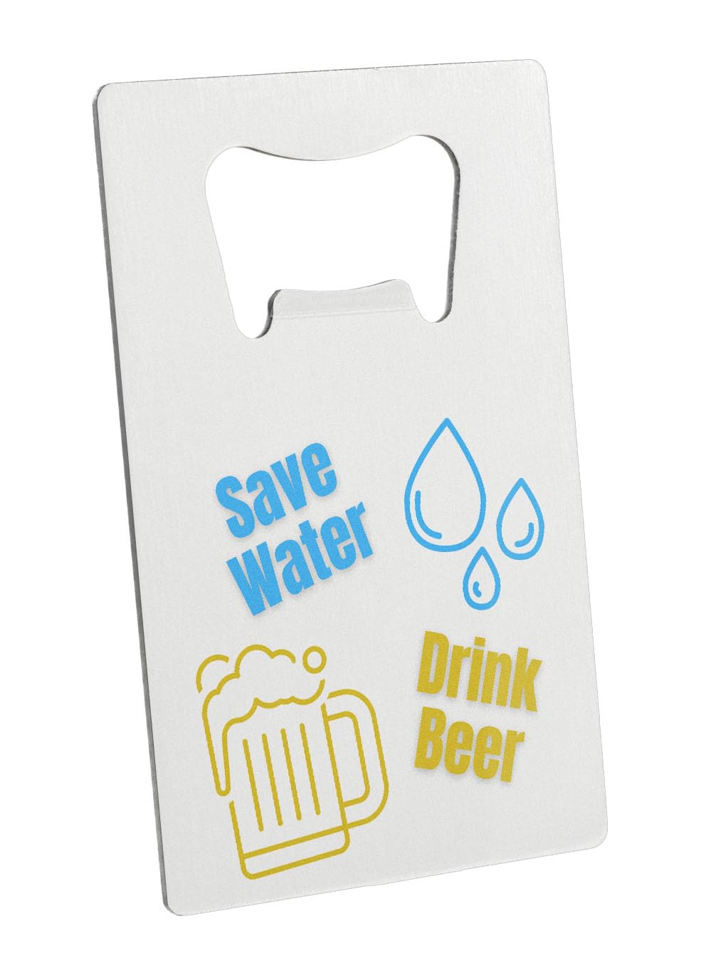 • Eco-friendly joke opener with a humorous 'Save Water, Drink Beer' message