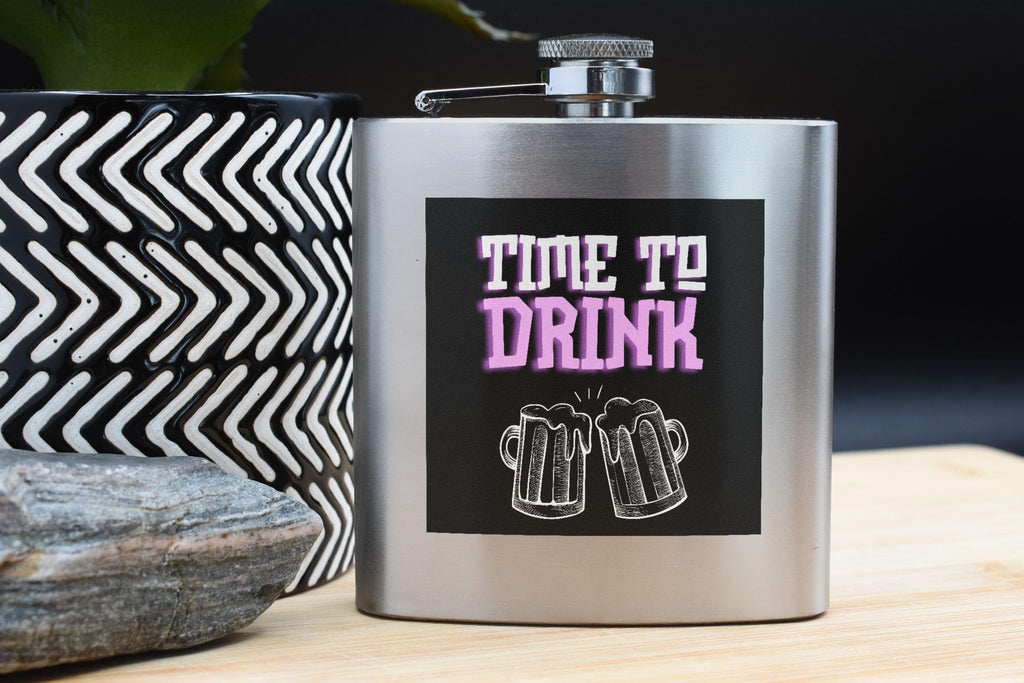 Introducing our Fun Cheers Flask - the perfect beer lover's barware gift for those who love to party on the go! This unique drinking flask is a must-have party accessory for anyone who enjoys a good drink-themed celebration. The stainless steel flask features a fun beer mug design, making it a cool and eye-catching addition to any party or social gathering. With its UV printed design that reads 'time to drink' in full colour, this cheers flask is sure to stand out and bring some fun to your next event. Whether you're at a music festival, BBQ, or just hanging out with friends, this fun and colourful flask is the ideal drinking accessory for those who like to have a good time!