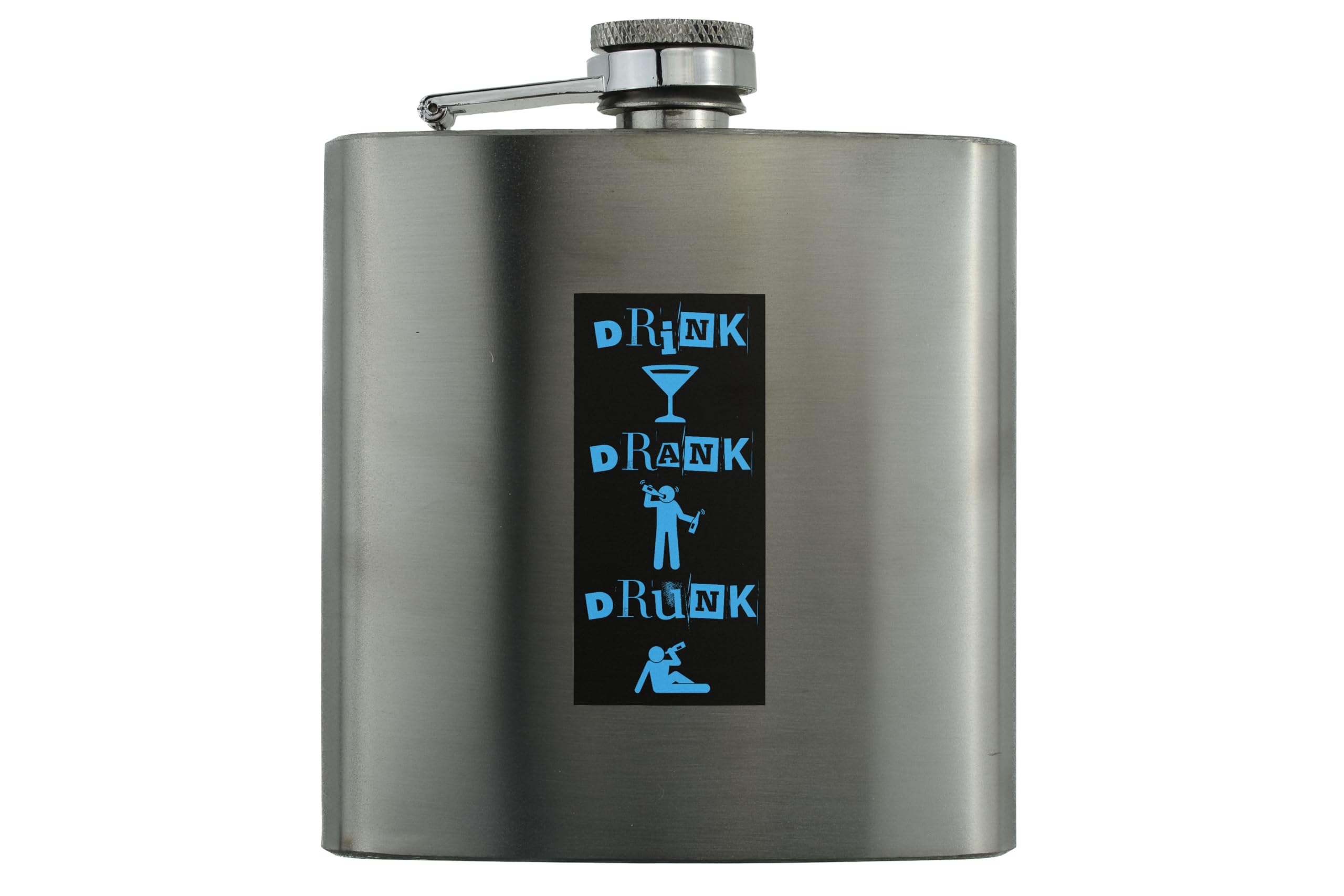 Fun Drink Drank Drunk Stainless Steel Flask - Blue and Black Design (hip-ds23-dddrg)