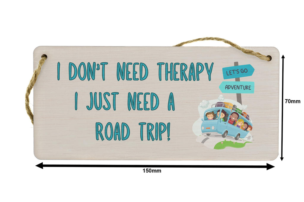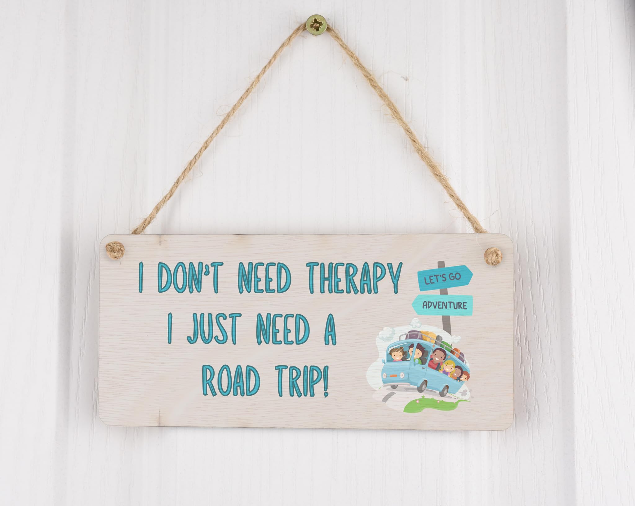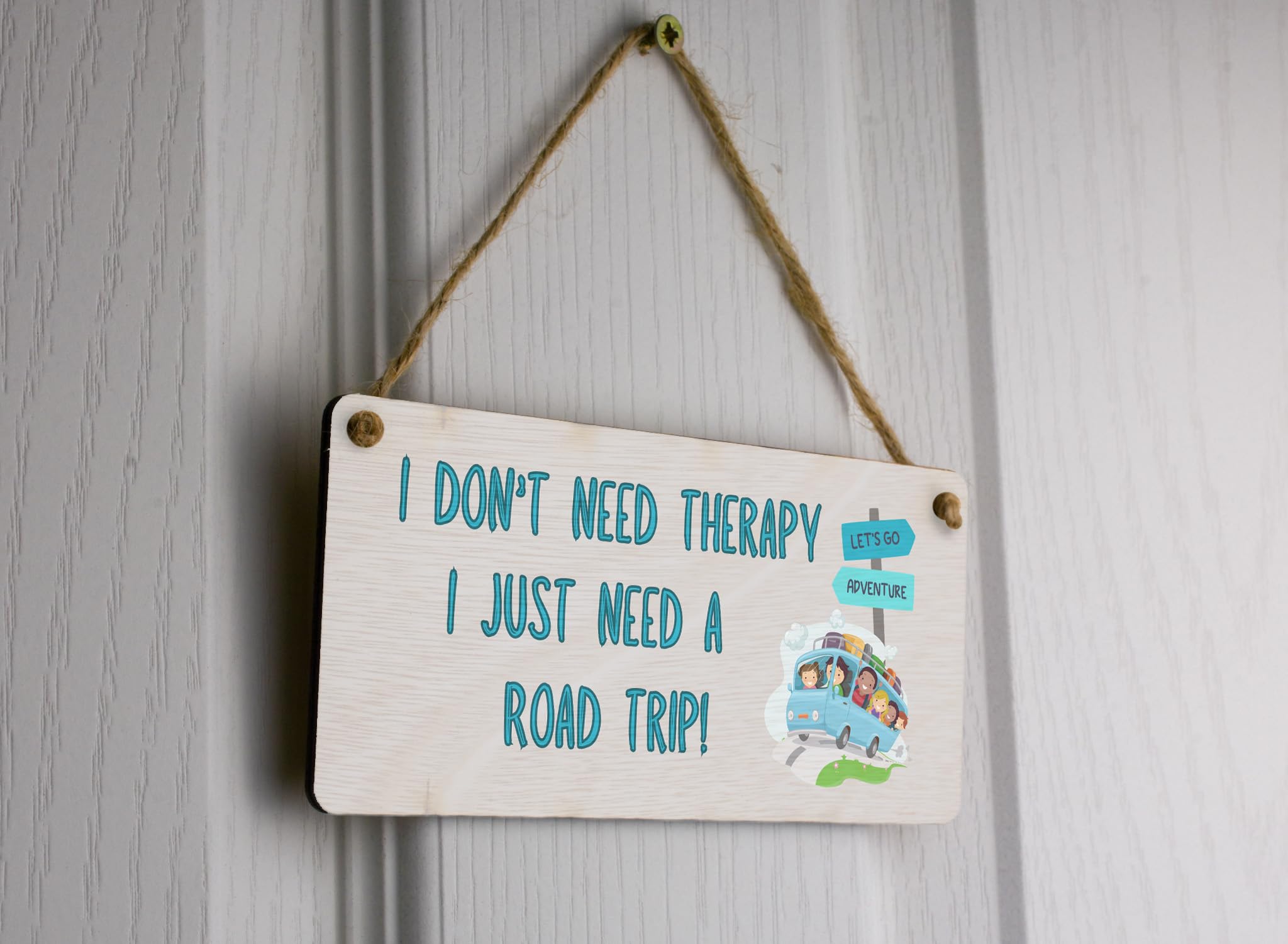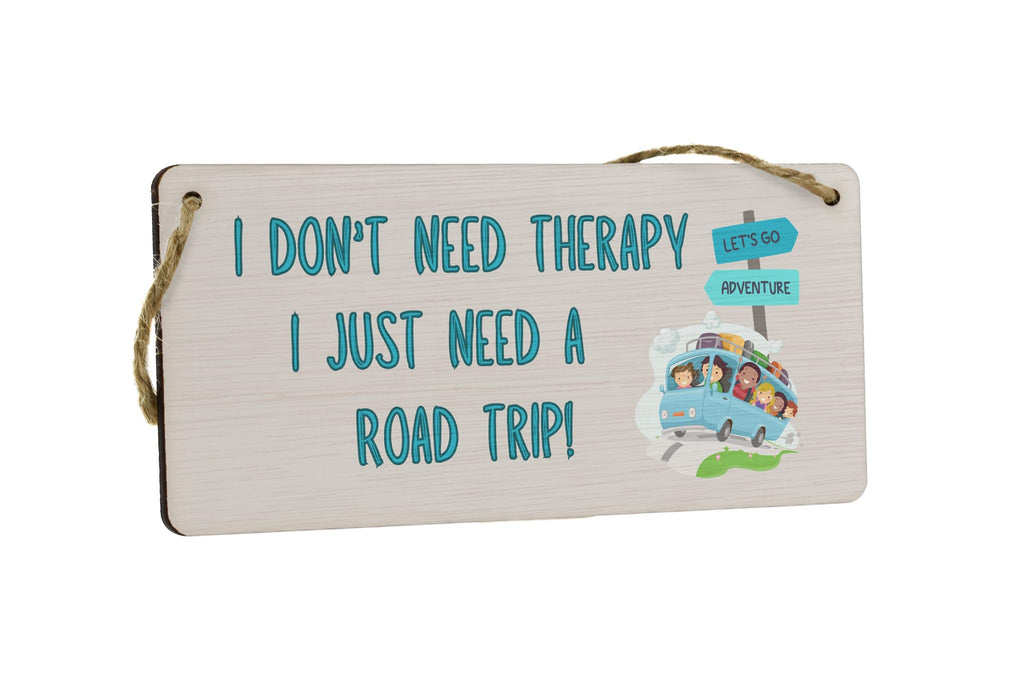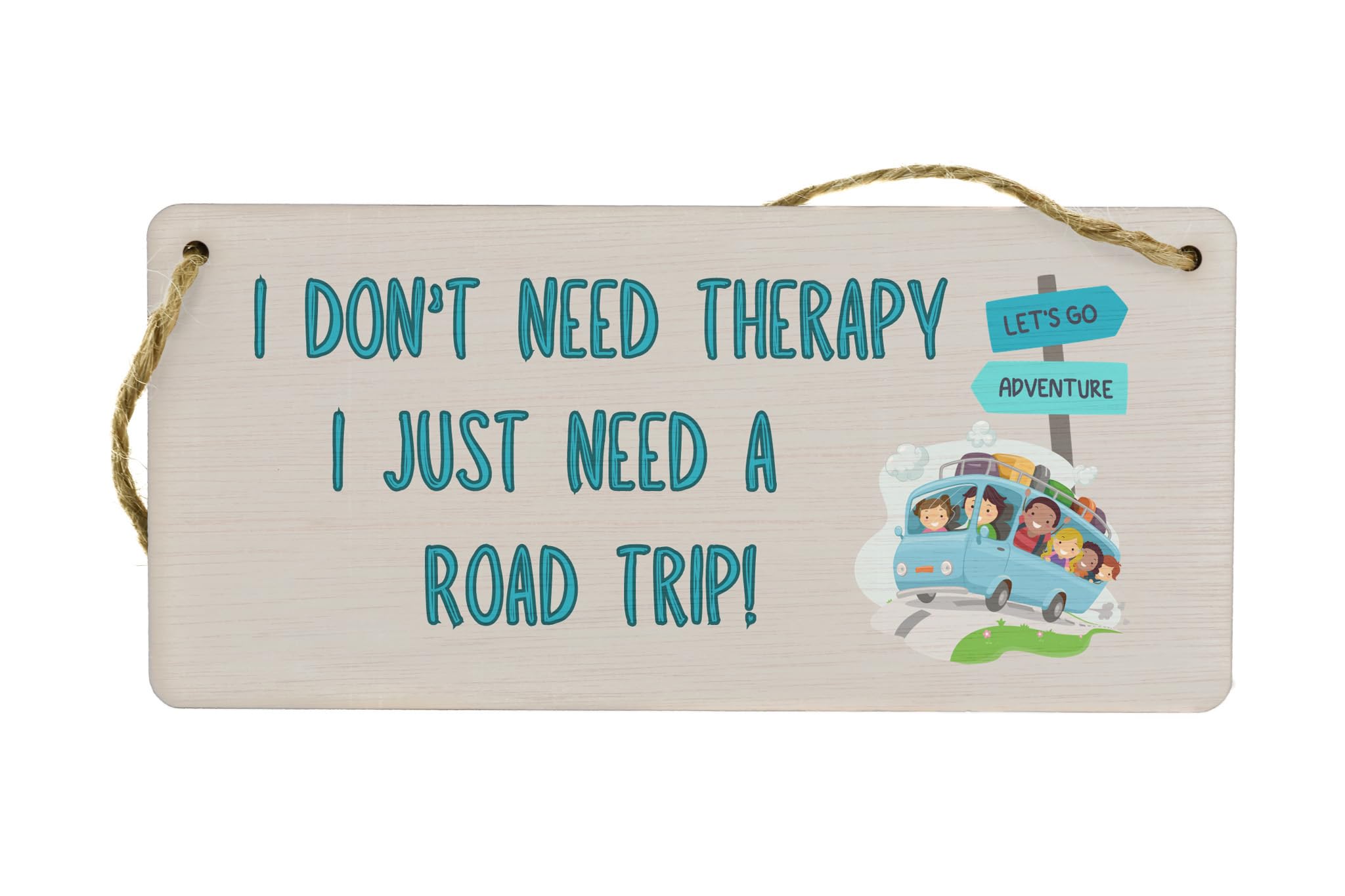 - Fun and funny sign that reads 'I Don't Need Therapy, I Just Need a Road Trip'