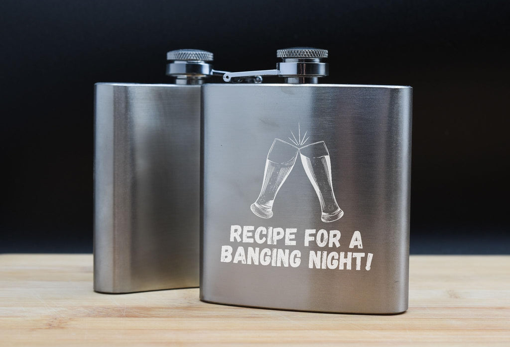 Fun Night Out Stainless Steel Flask with UV Printed Design (hip-ds23-bangingrg)
