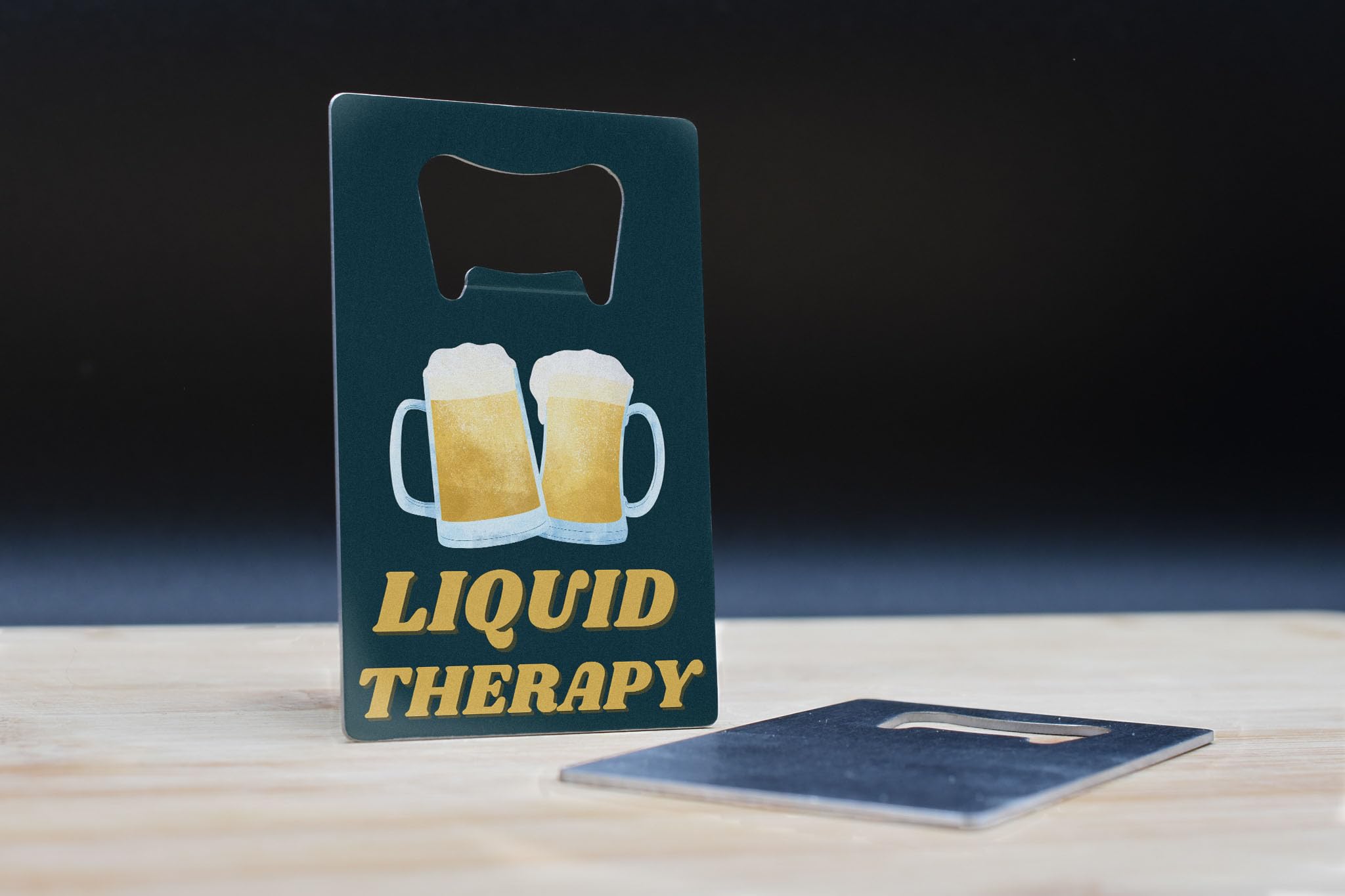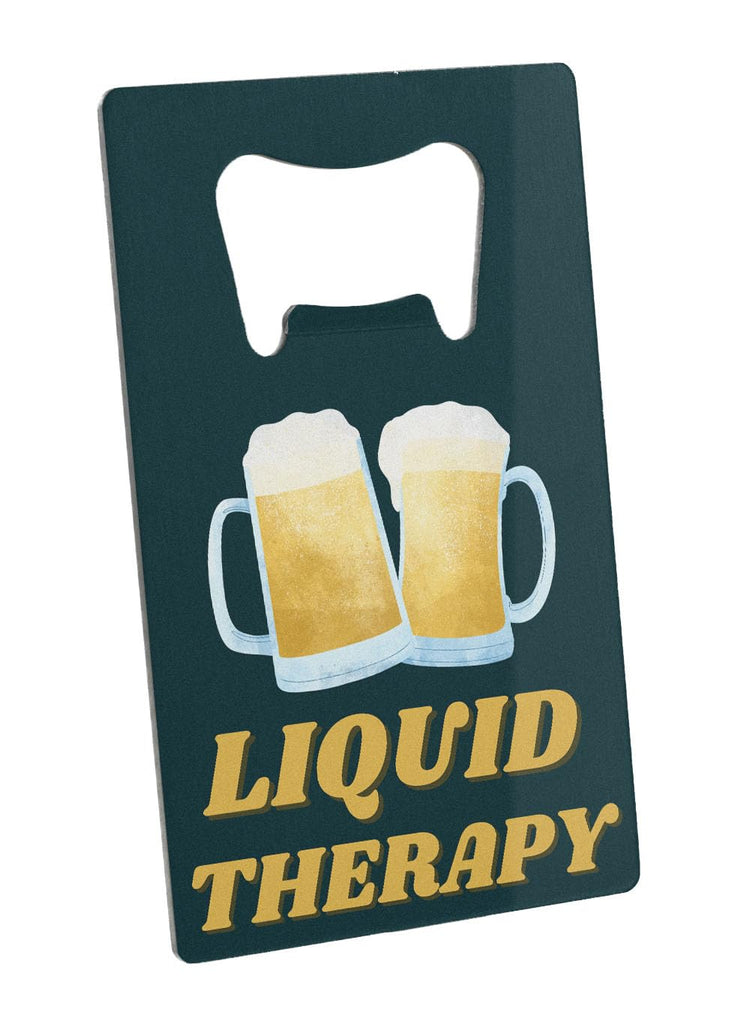 Introducing the Funny Beer Therapy Liquid Therapy Bottle Opener, the ultimate beer lover's tool for cracking open a cold one in style! This novelty bottle opener is the perfect addition to any drinkware accessory collection, made from quality stainless steel for durability and long-lasting use. The compact size and portable design make it a great bar tool gift for any beer enthusiast. Whether you're enjoying a drink at home or at a party, this cool beer gadget is sure to be a hit with its unique 'Liquid Therapy' UV printed design. Treat yourself or surprise a loved one with this fun drinking accessory, ideal for dad or grandad on Father's Day. Prioritise your beverage key opener game with this full-color novelty bottle opener!
