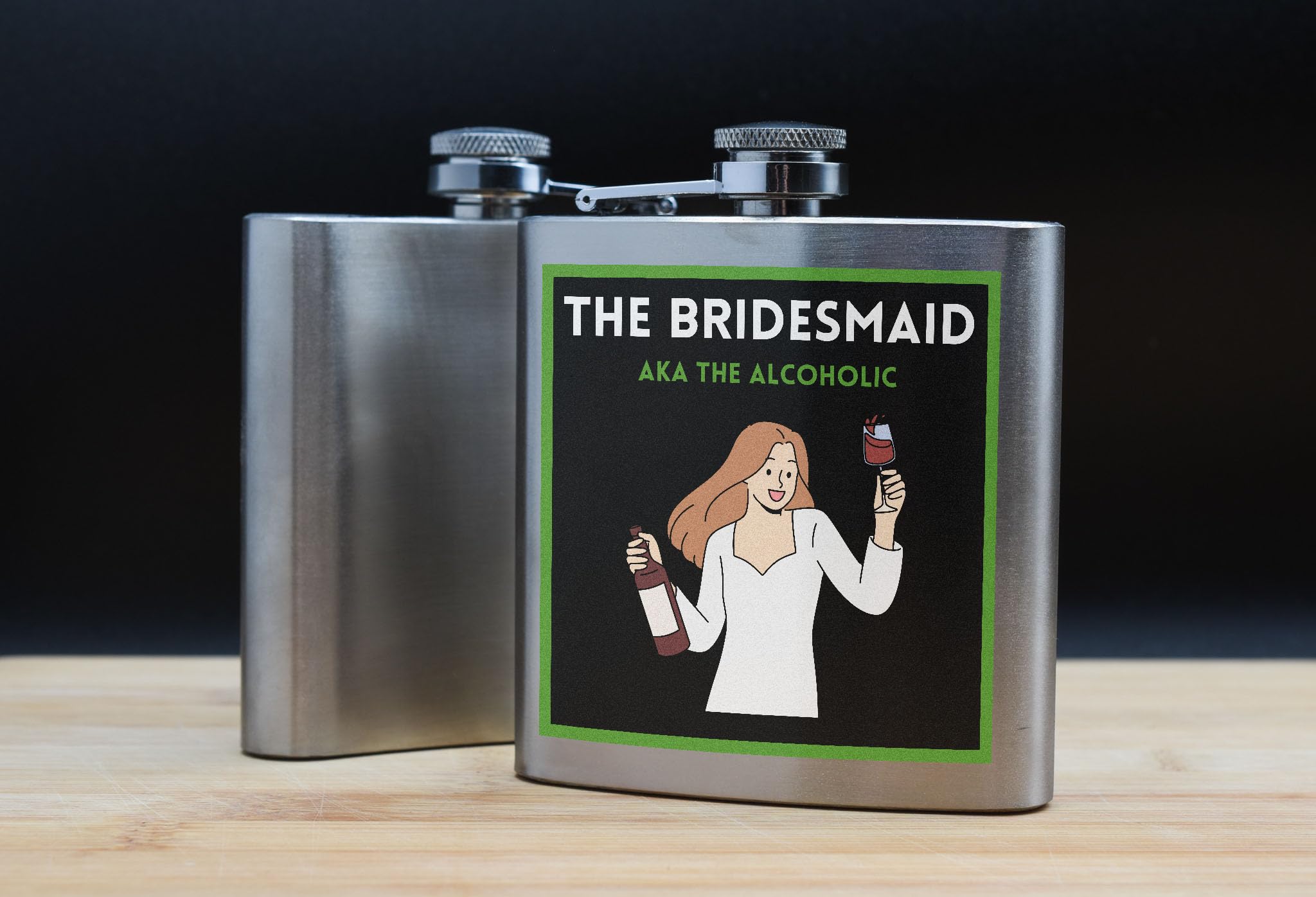 - UV printed message reads 'the bridesmaid aka the alcoholic'
