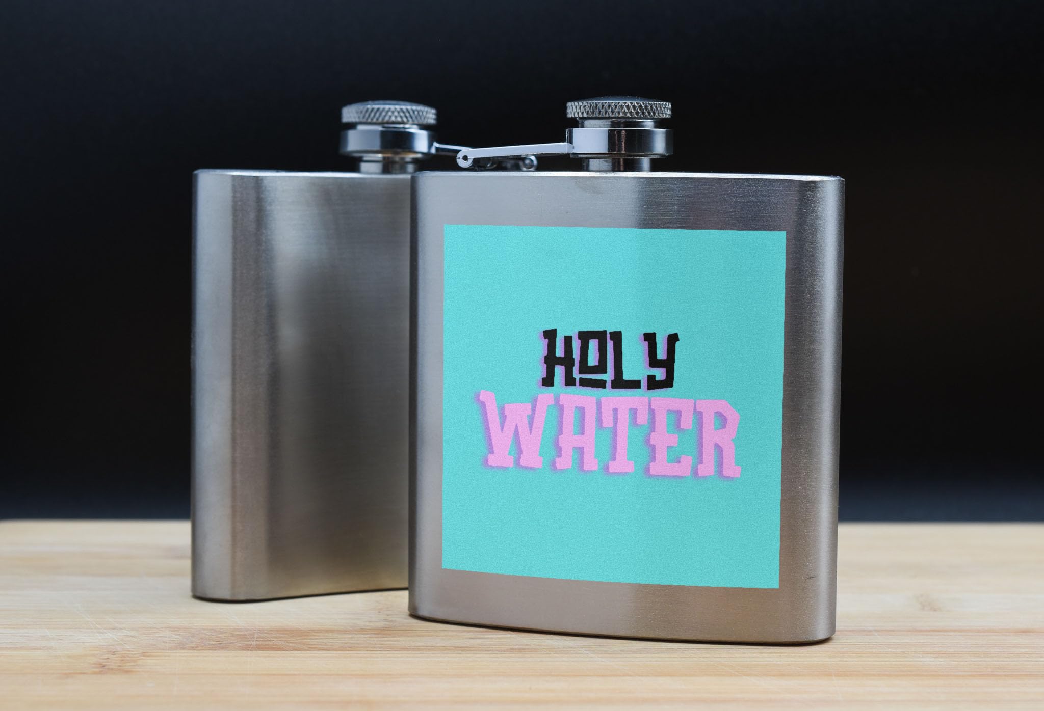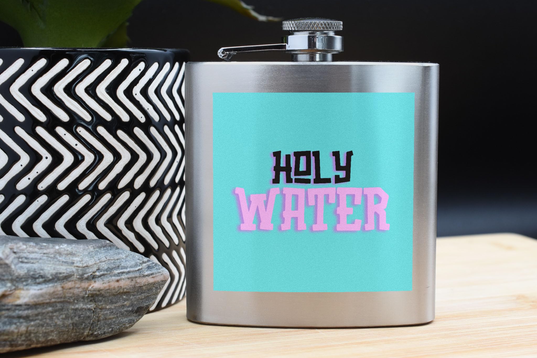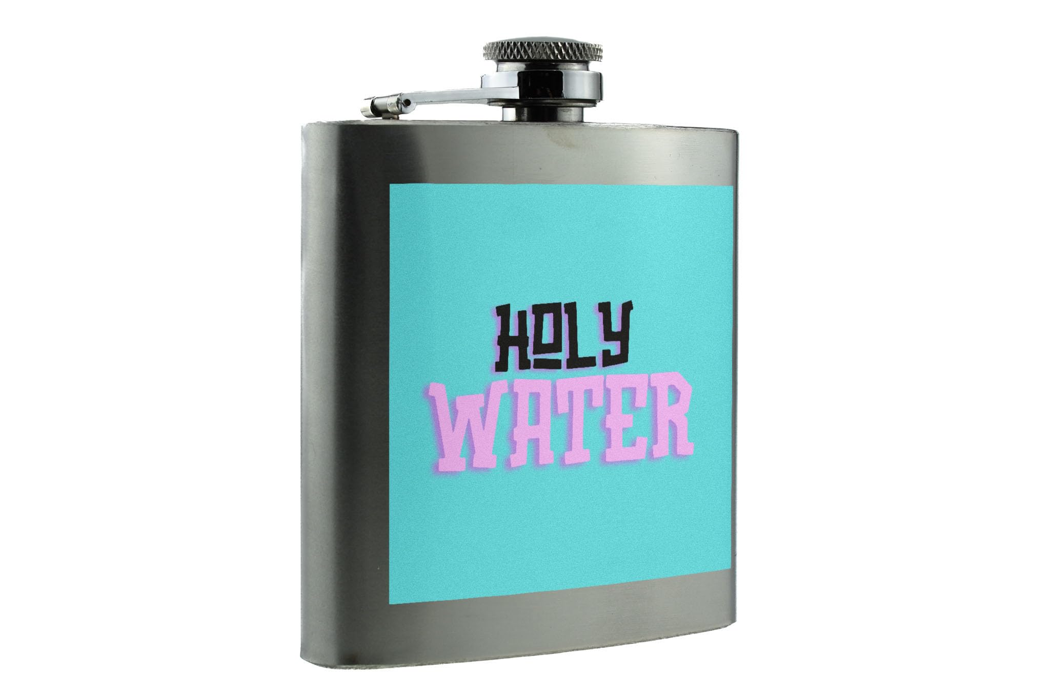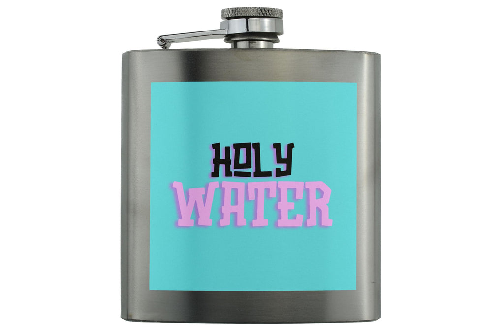 Funny 'Holy Water' Stainless Steel Hip Flask - Light Blue Quirky Design (hip-ds23-holywaterrg)