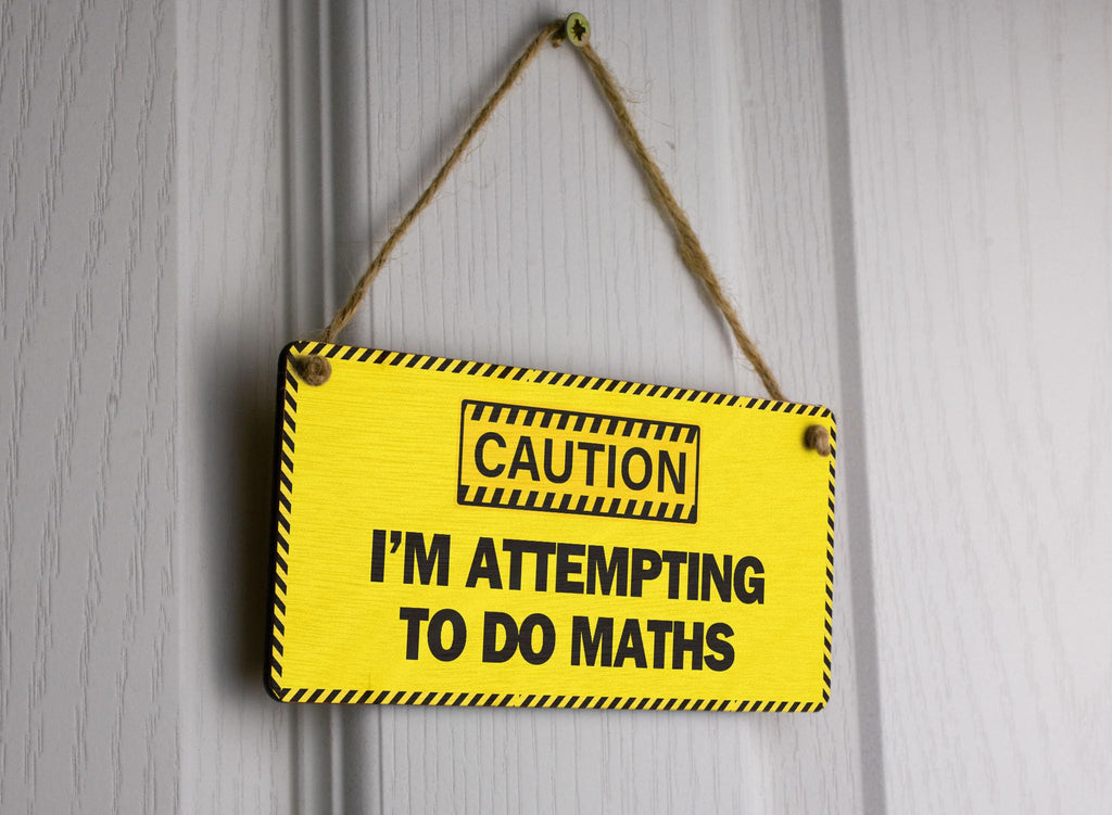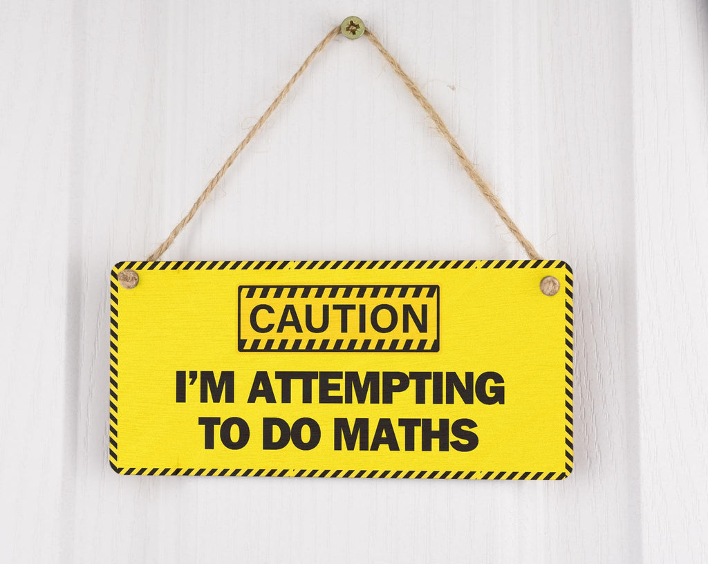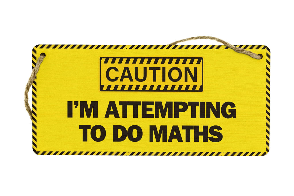 - Handcrafted laser cut plywood sign with UV printed 'caution - I'm attempting to do maths' design