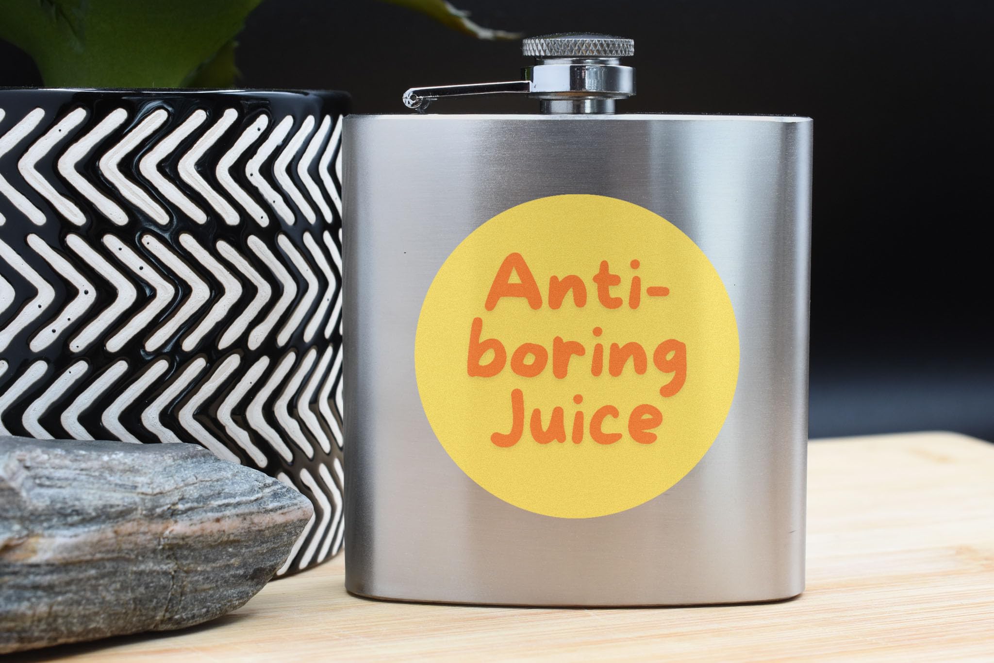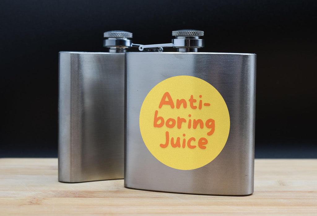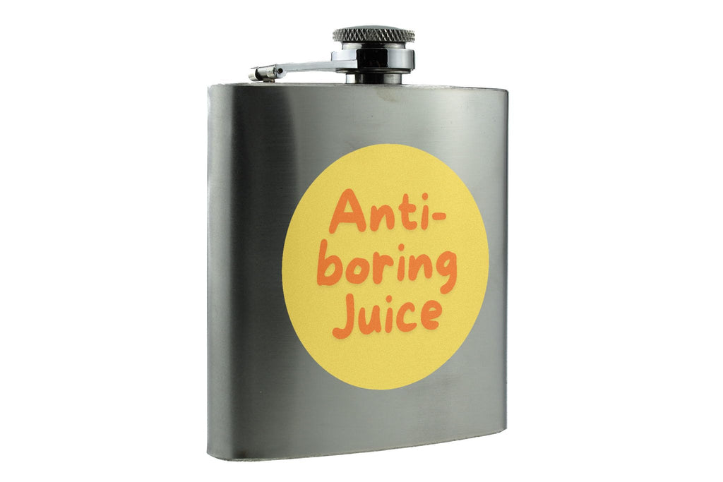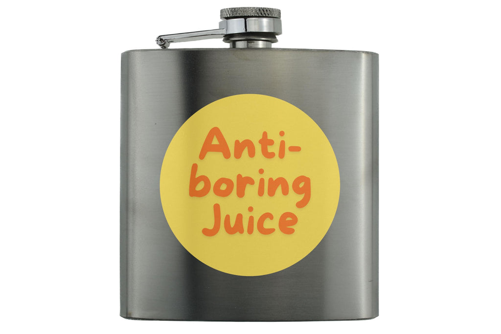 Add a touch of fun and colour to your drinking experience with this Funny Quote Colourful Stainless Steel Hip Flask. This novelty hip flask is perfect for anyone looking for a unique and quirky alcohol flask to liven up their bar accessories collection. The playful design features a bright and cheerful full colour UV printed logo that reads 'anti-boring juice', making it a lighthearted and humorous gift for friends, family, or yourself. Made from quality stainless steel, this flask is durable and long-lasting, perfect for taking your favourite drinks on the go. Whether you're a whiskey connoisseur or a vodka enthusiast, this creative and colourful hip flask is sure to bring a smile to your face every time you take a sip.