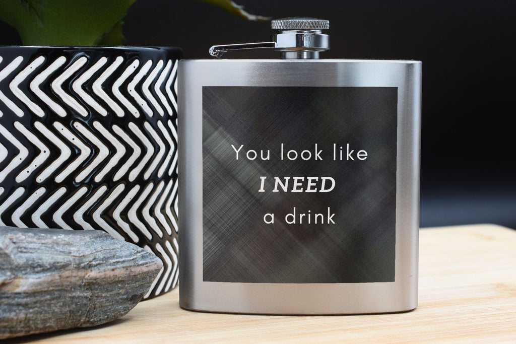 - Funny drink flask with a clever saying 'You Look Like I Need a Drink'