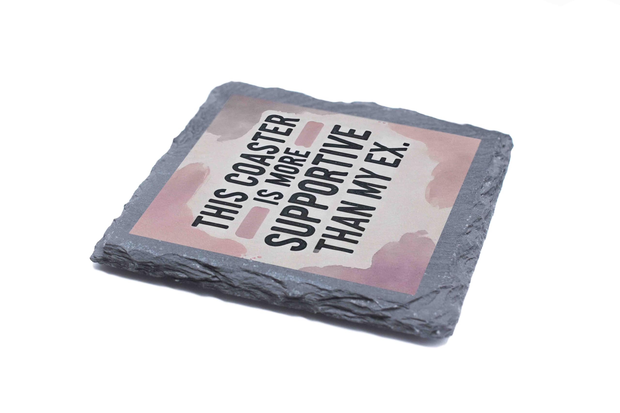 Funny Slate Coaster - This Coaster is More Supportive Than My Ex - Sarcastic Gift (slco-kf25-moresupporthg)