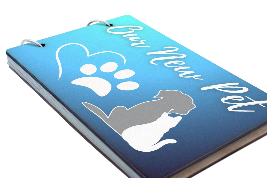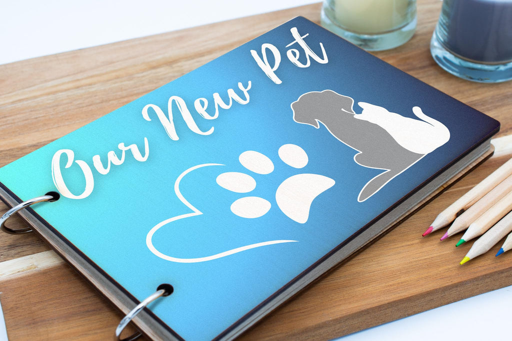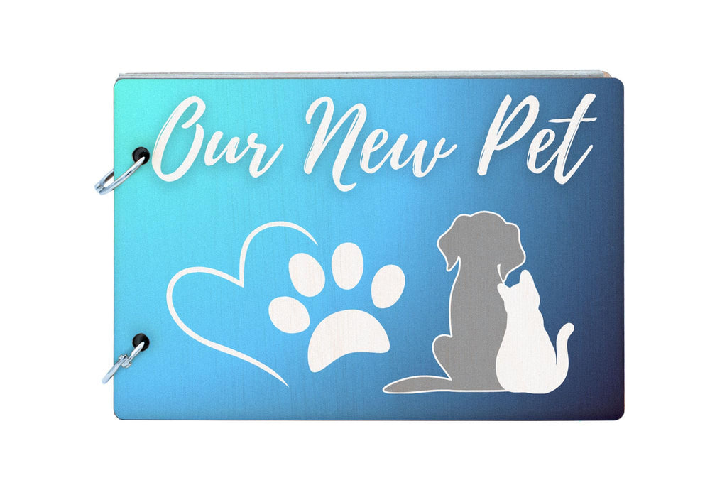 Introducing 'Furry Friend Adventures', the perfect pet memories book to document your new pet's journey from their animal adoption to all their furry friend adventures. This new pet record book features 25 recycled pages, a charming wooden cover, and a full colour front cover showcasing a calming blue gradient with the silhouettes of pets adorning it. Capture all your puppy milestones or kitten scrapbook moments in this animal keepsake, which serves as a pet timeline and a pet photo album. Share your pet love book with family and friends and prioritise preserving your pet history with this beautifully crafted furry friend album. Whether it's your pet's first walk, their favourite toy, or special moments together, this pet journey book is the perfect way to cherish your pet's memories and create lasting mementos of your pet adventures.