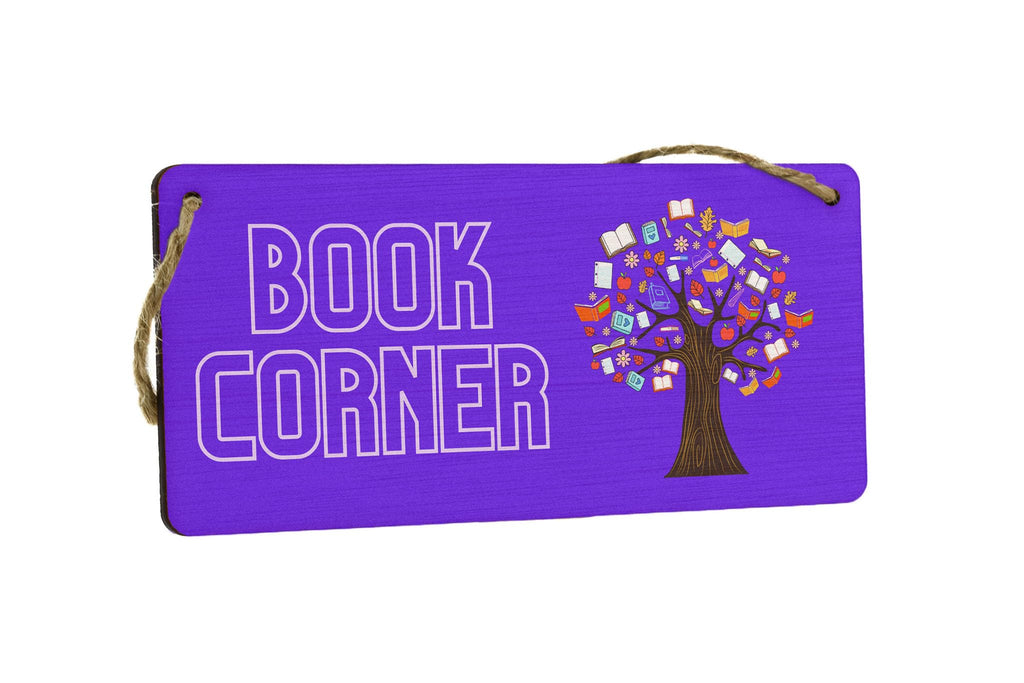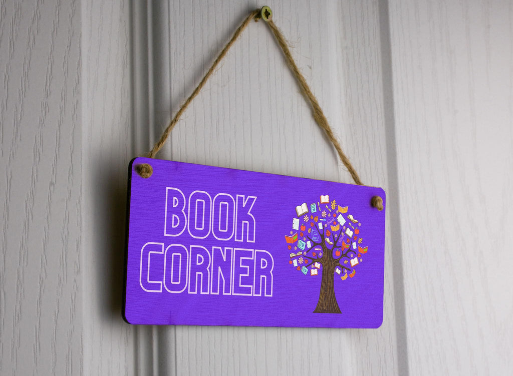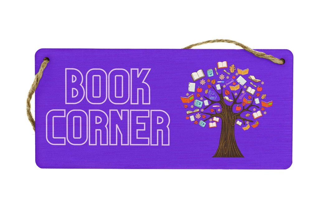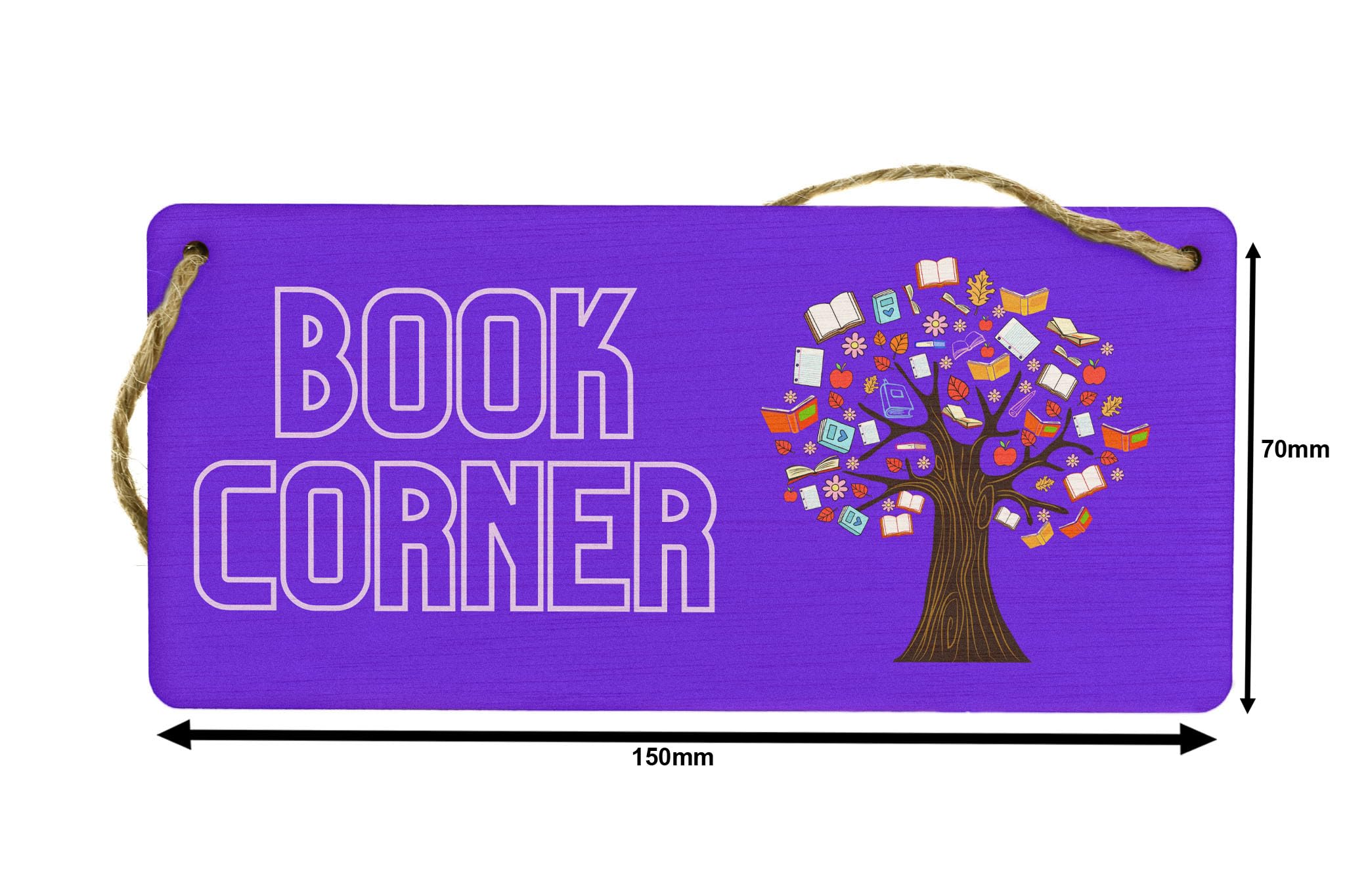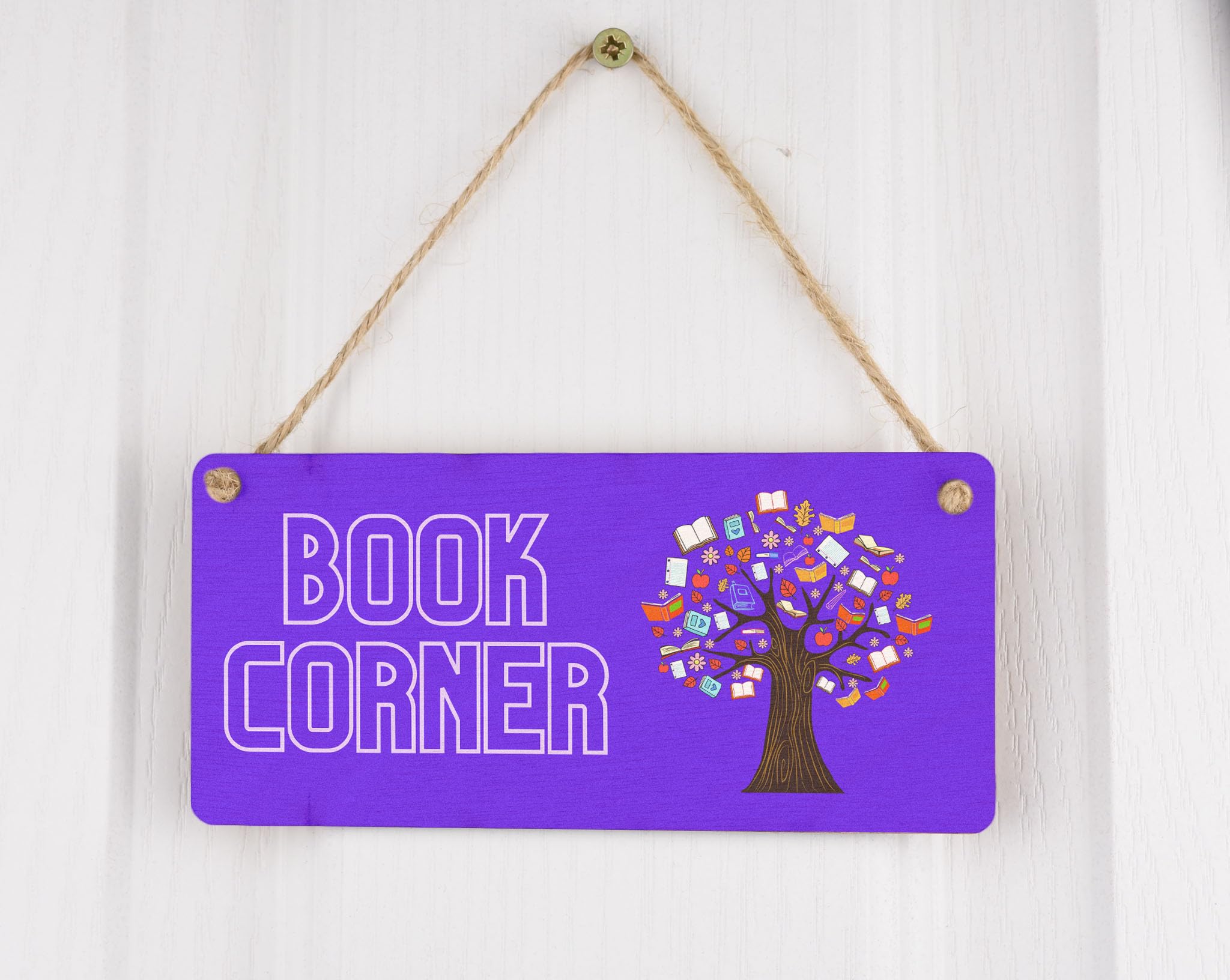 Enhance your library or school's book corner with this charming Book Corner - Plywood Hanging Sign. Designed specifically for kids' rooms or reading nooks, this sign features a vibrant purple background with white outline writing and an adorable tree image with books as leaves. Made from quality plywood, this sign is durable and long-lasting, ensuring it will add a touch of whimsy to your space for years to come. Whether you're a teacher, librarian, or a parent looking to create a cosy reading nook at home, this sign is the perfect addition to any book corner. It also doubles as a fantastic gift option for any book lover.