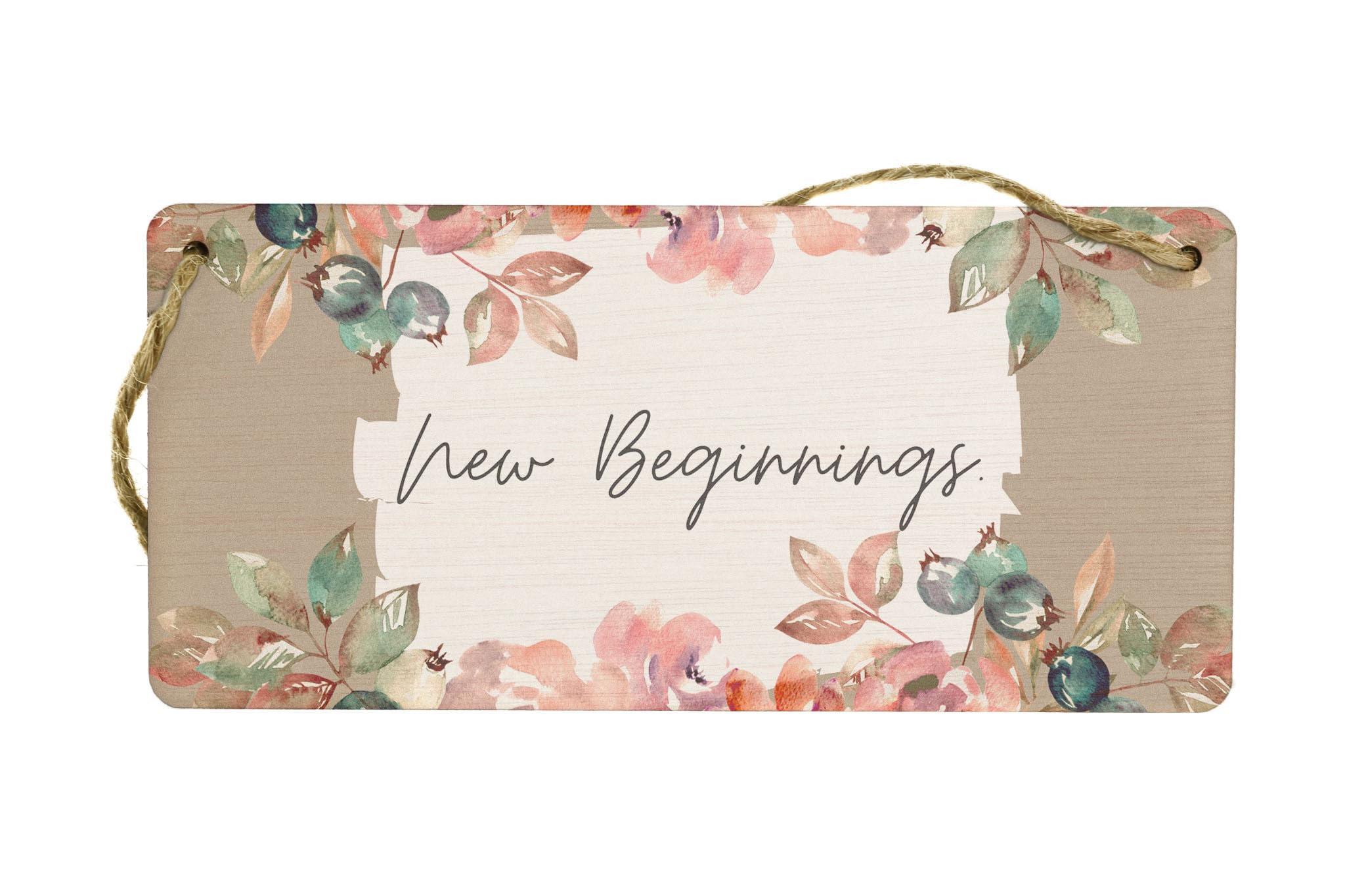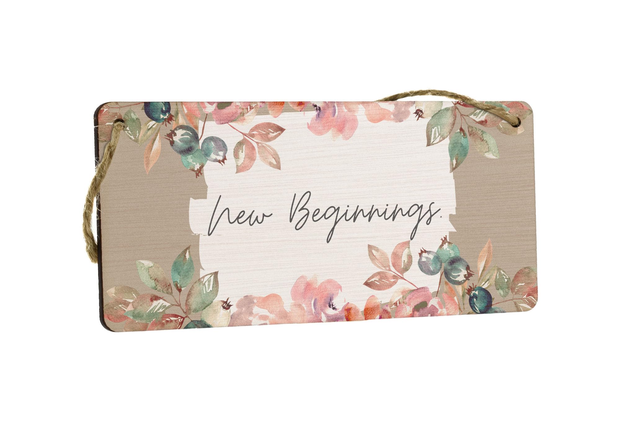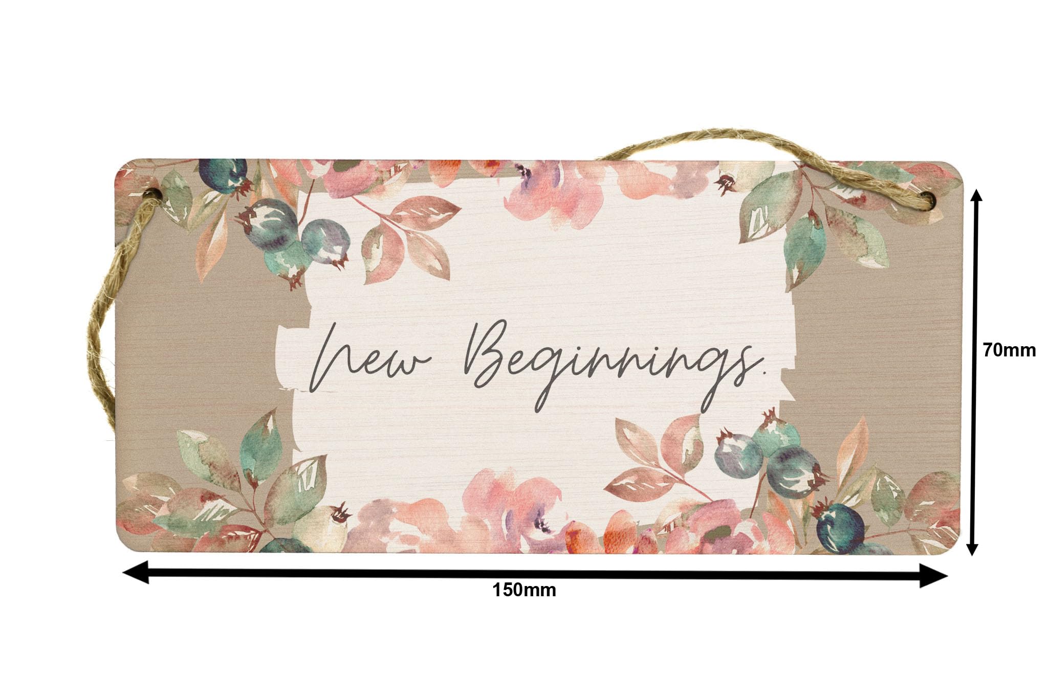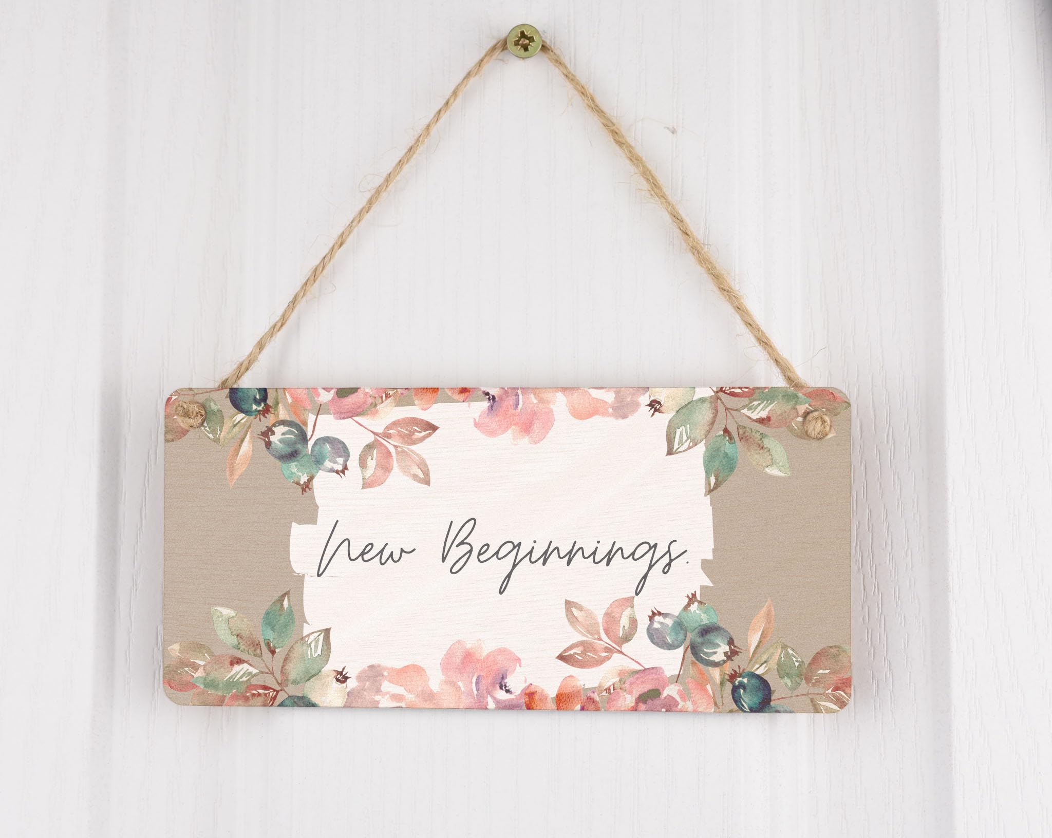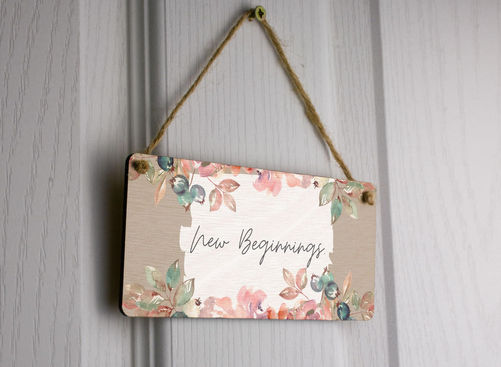 Enhance the beauty of your home with this stunning New Beginnings - Plywood Hanging Home Sign. This exquisite sign is not only a great addition to your home decor, but also makes a thoughtful gift for family and friends. Crafted from quality plywood, this hanging sign is durable and built to last. With its charming design and heartfelt message, it is perfect for expressing love and appreciation to your loved ones. The sign features a beautiful white and brown background with a delicate flower border, adding a touch of elegance to any space. The black writing on the sign adds a striking contrast, making the message 'New Beginnings' stand out. Whether you hang it on the door, in the living room, or in a room, this sign is sure to create a warm and inviting atmosphere. Celebrate the joy of a new home or simply add a personal touch to your living space with this stunning sign.