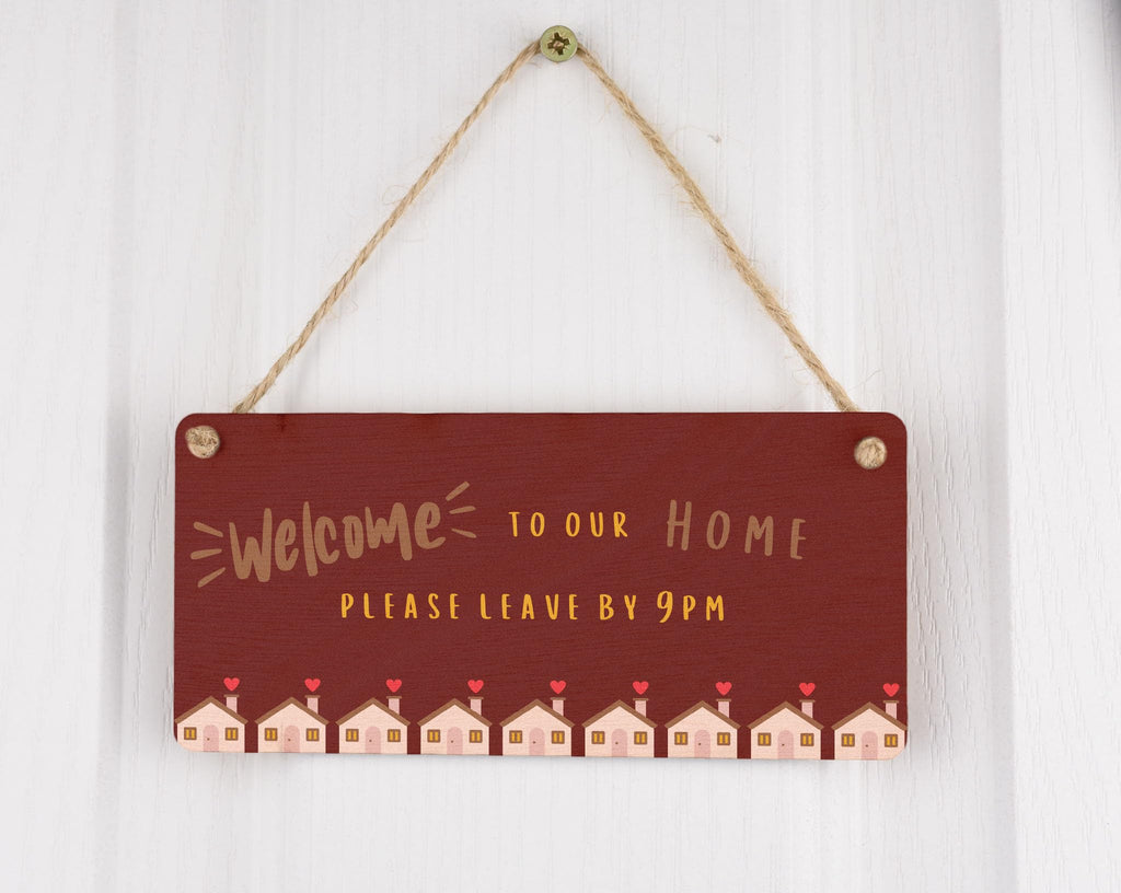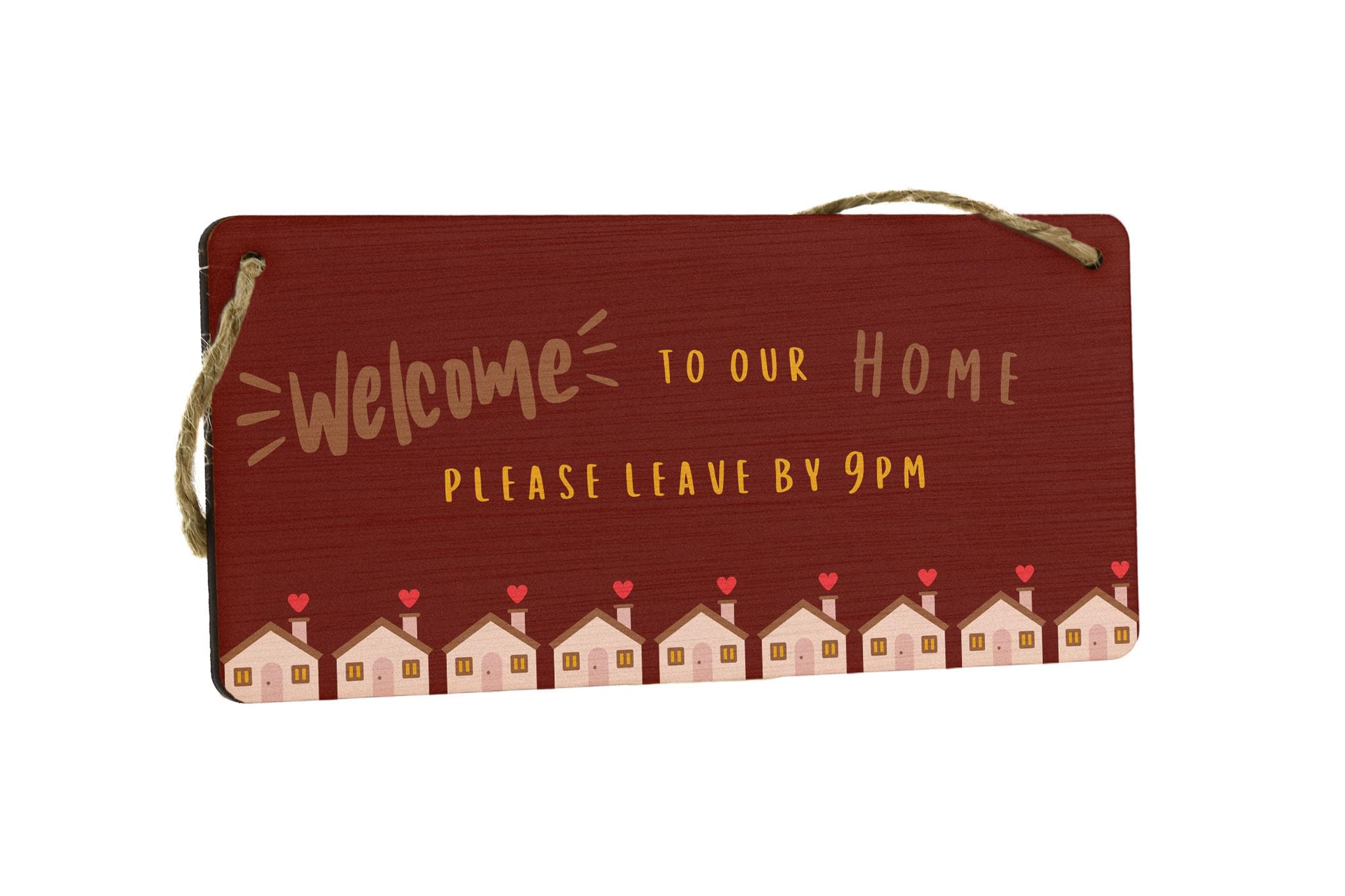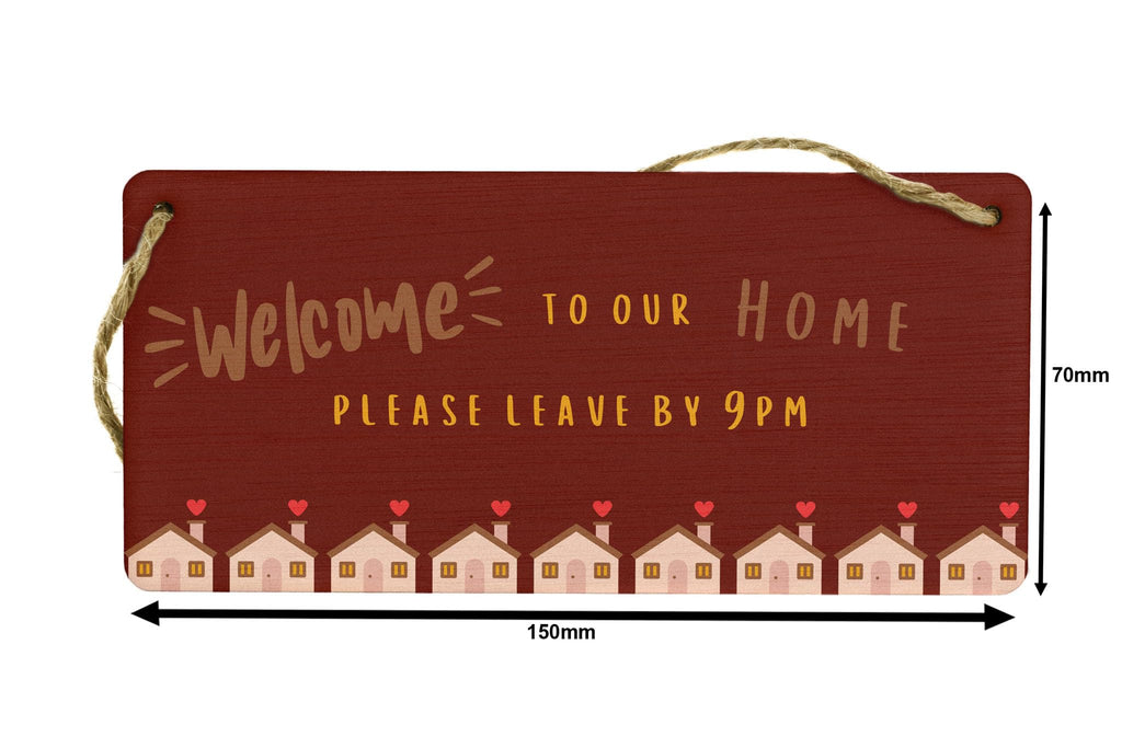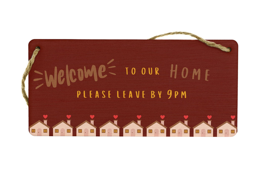 Generic Welcome to Our Home, Please Leave by 9pm - Plywood Hanging Sign (smslgn-ds23-welredhouse)