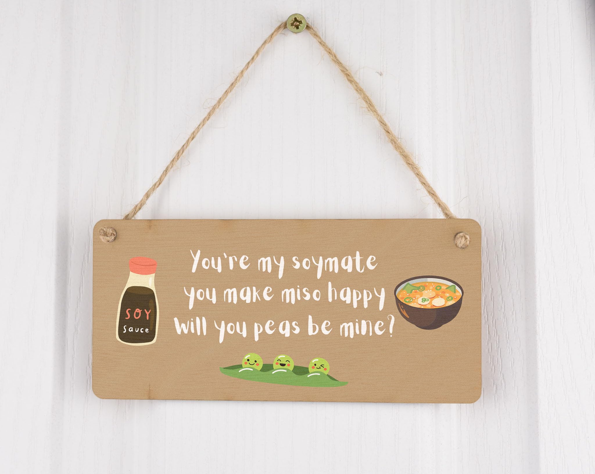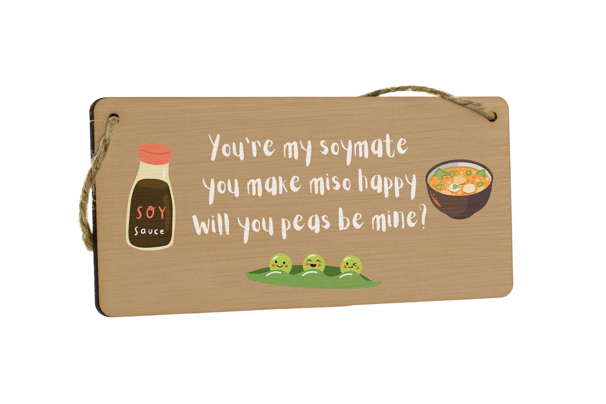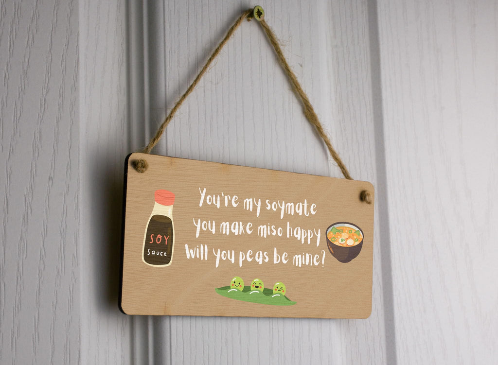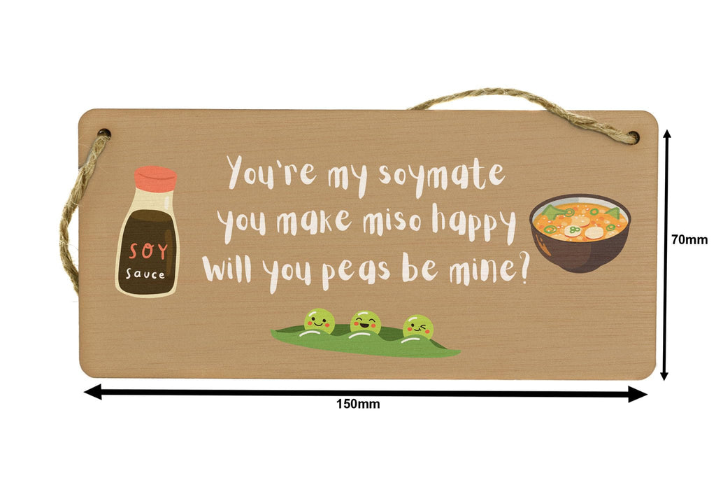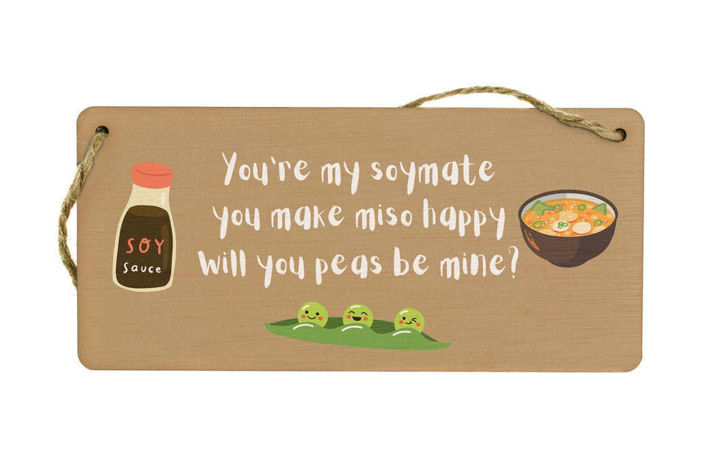 Generic You're My Soymate, You Make Miso Happy, Will You Peas Be Mine? - Funny Plywood Hanging Room Sign (smlsgn-ds23-misosoy)