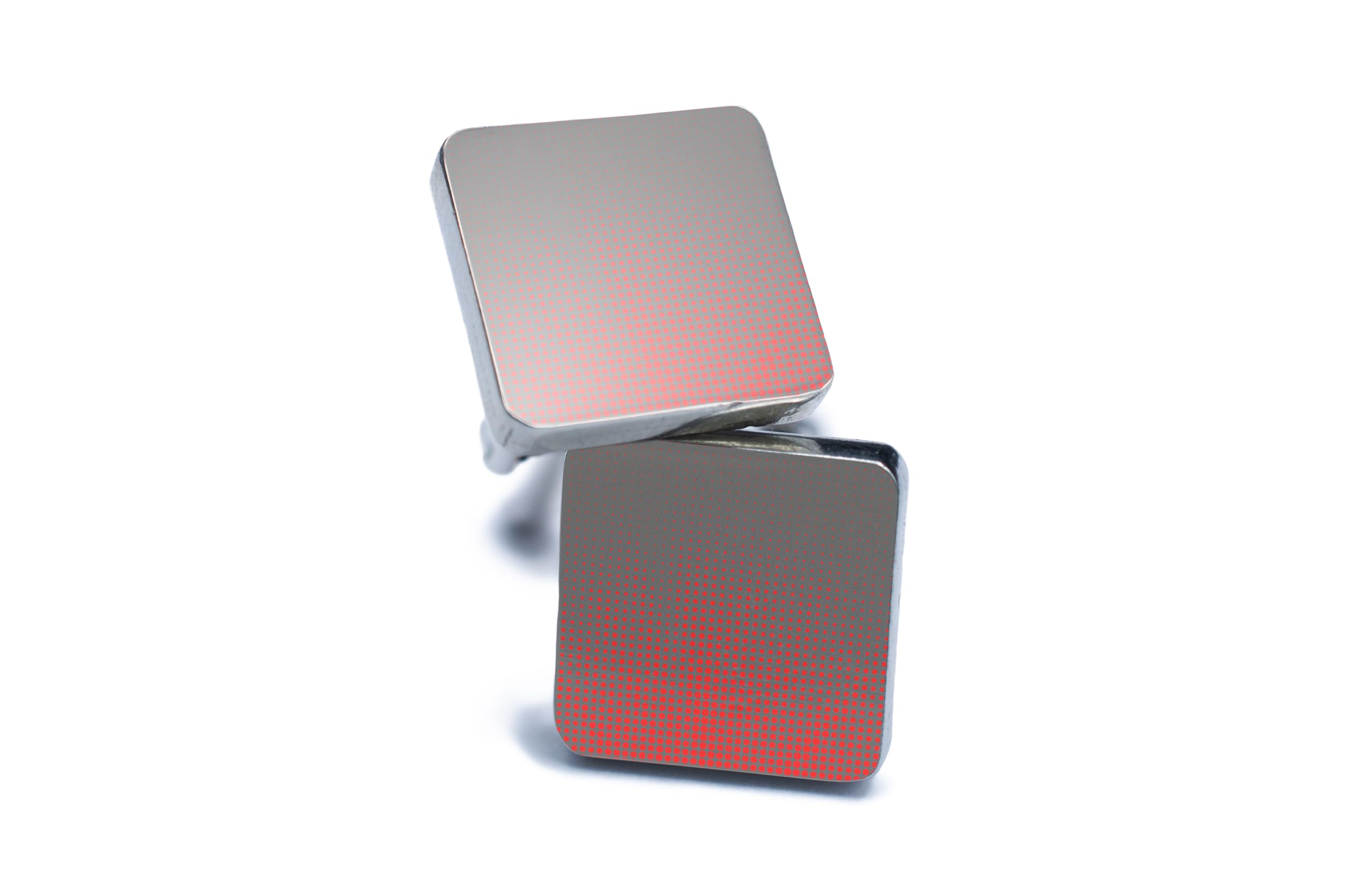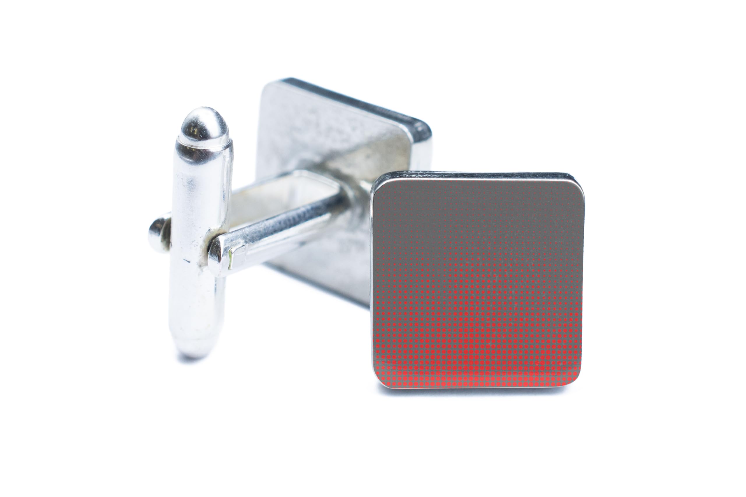Introducing our handcrafted tin cufflinks featuring a unique geometric gradient fade design with UV printed patterns. These stylish cufflinks are a perfect combination of minimalist and artistic design, making them a statement jewelry piece for any modern man's wardrobe. The red dot design adds a touch of novelty to your attire, while the contemporary style ensures you stand out from the crowd. Made from quality tin and pewter, these cufflinks are durable and long-lasting, perfect for everyday wear. Add a pop of colour and personality to your suits with these eye-catching cufflinks, designed to elevate your casual fashion ensemble. Whether you're attending a wedding, business meeting, or simply want to add a touch of flair to your outfit, these handcrafted cufflinks are a must-have accessory for any fashion-forward man.