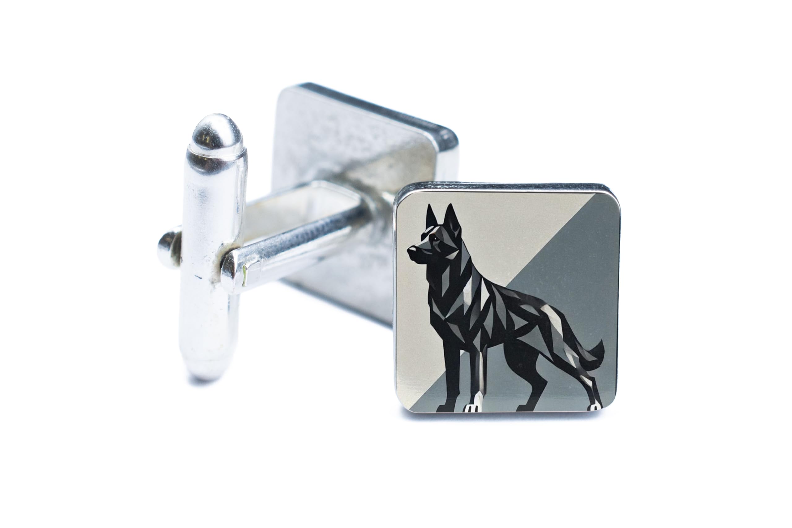 German Shepherd Cufflinks ? Sleek Geometric Design for Dog Lovers (cuff-ds24-shepherdrg)