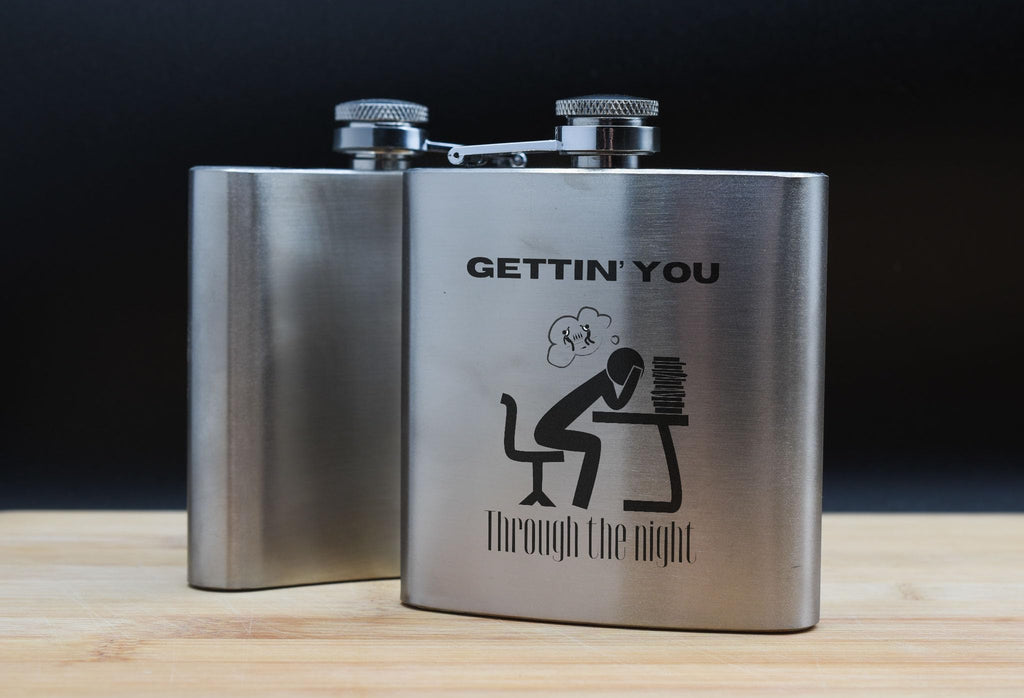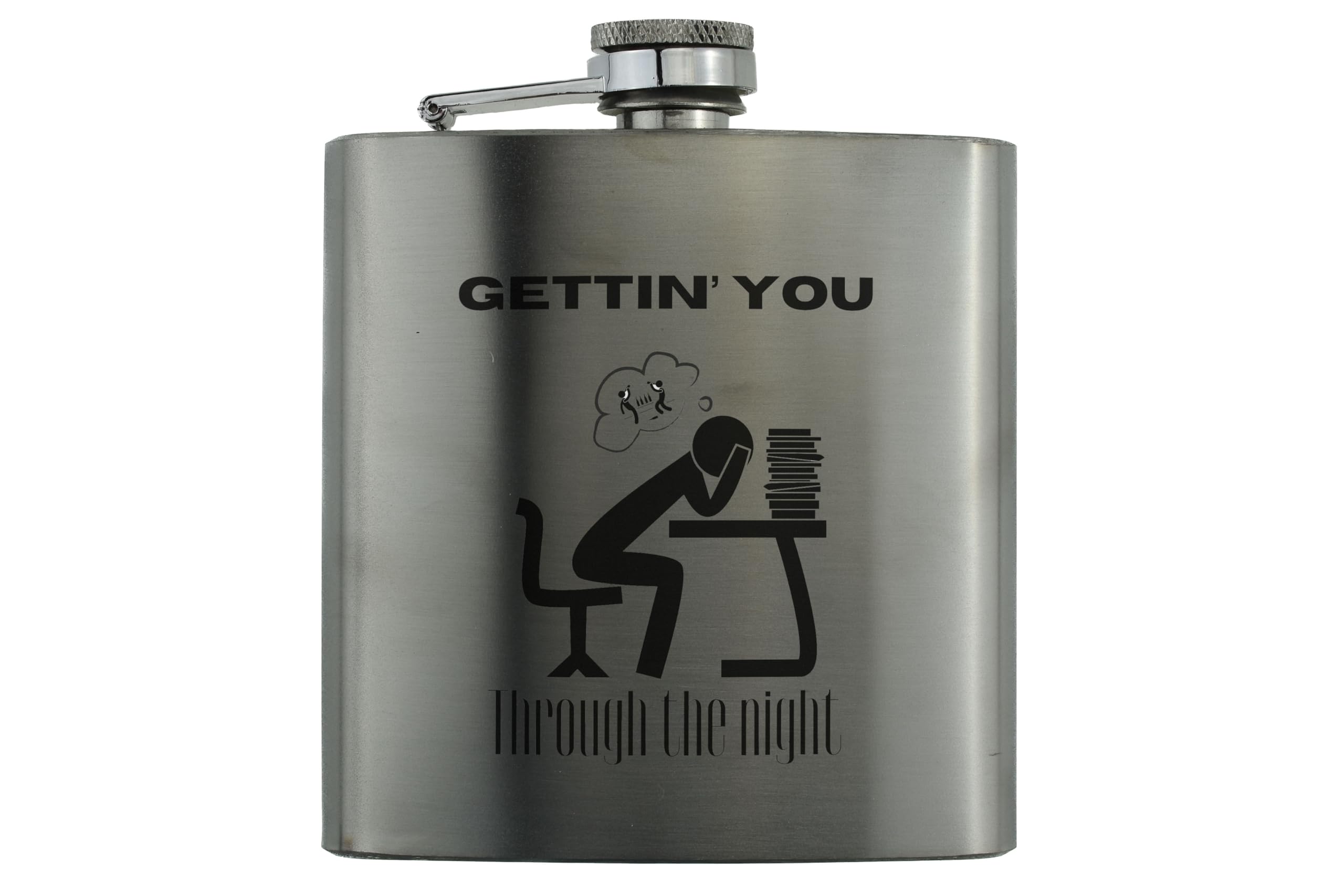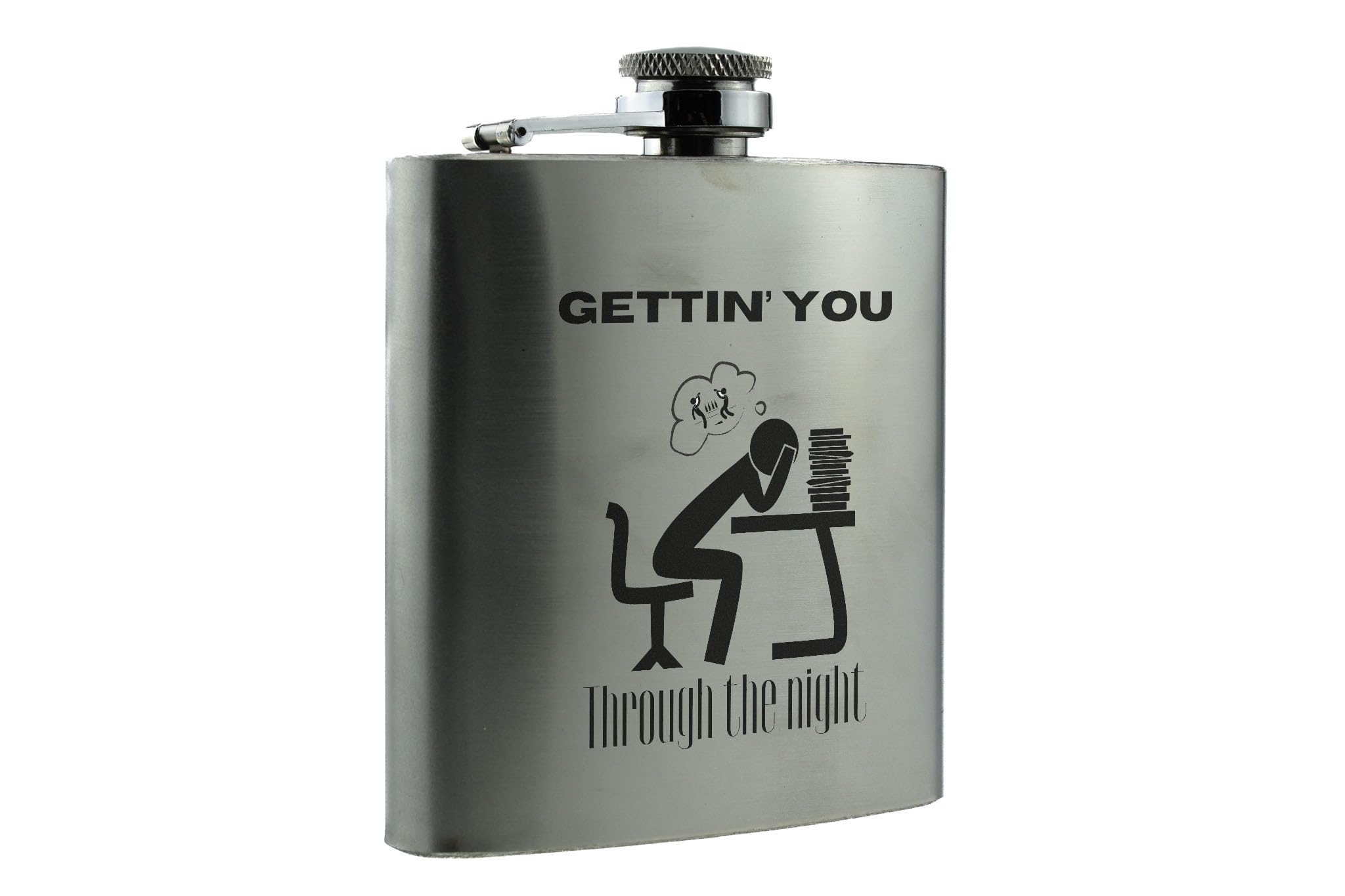 Gettin' You Through The Night - Funny Novelty Stainless Steel Hip Flask (hip-ha23-gettinyou)