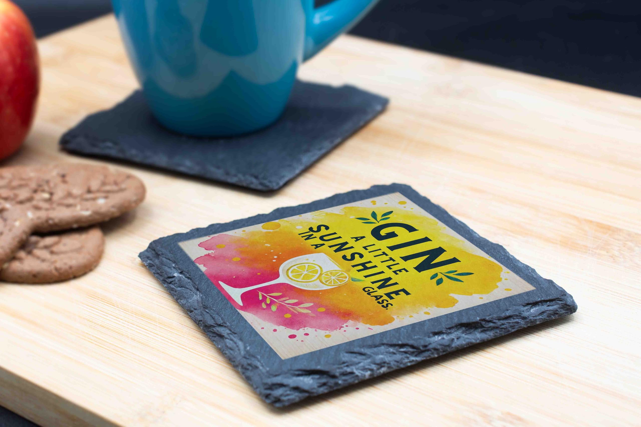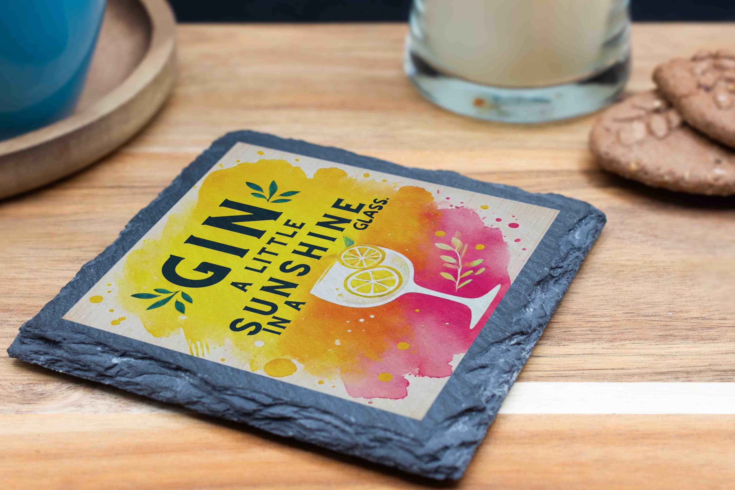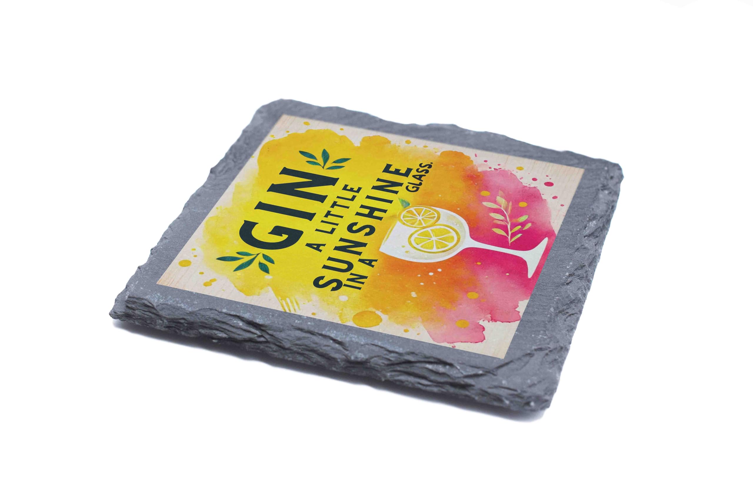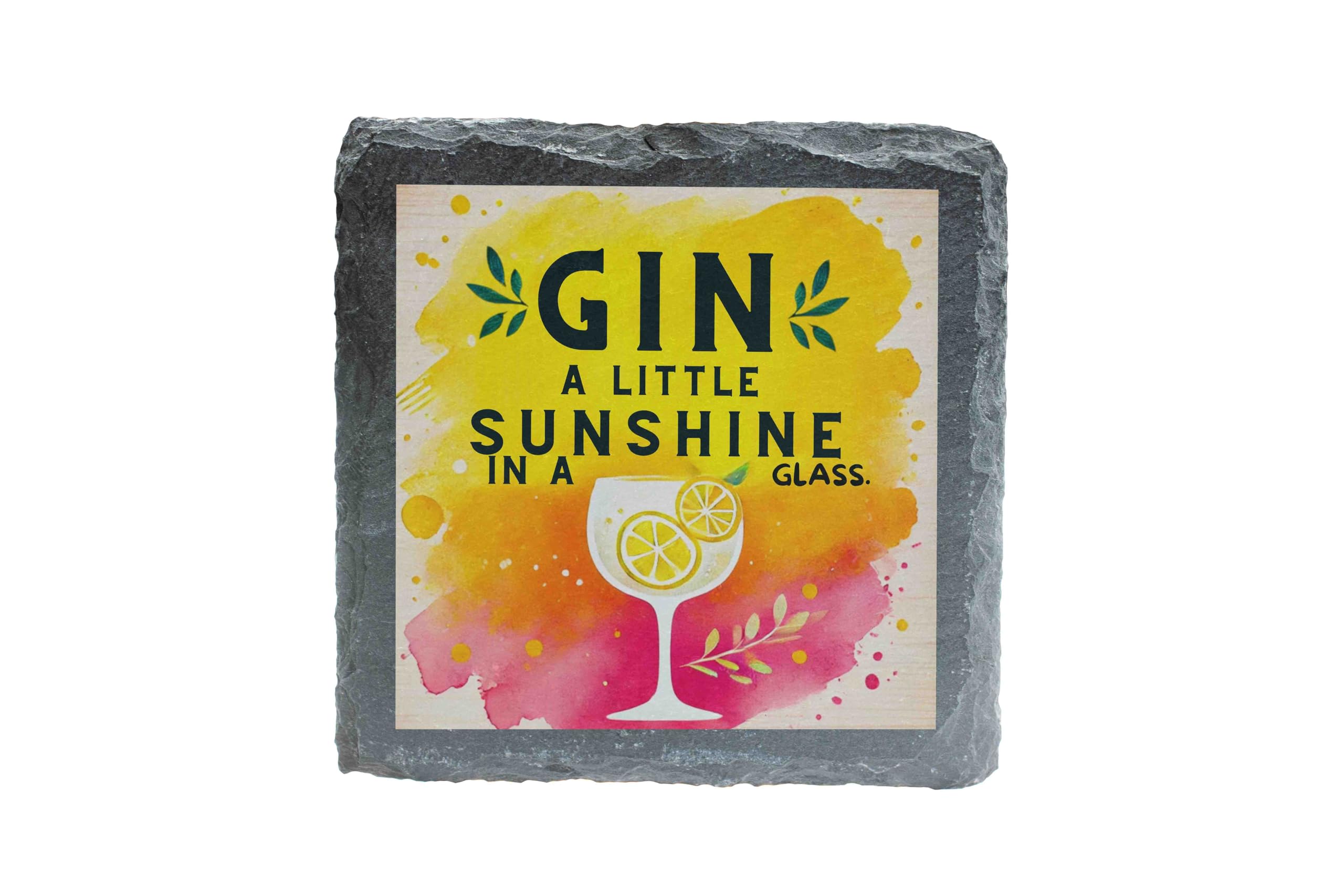 GIN: A Little Sunshine in a Glass Slate Coaster (slco-kf25-suninaglasshg)