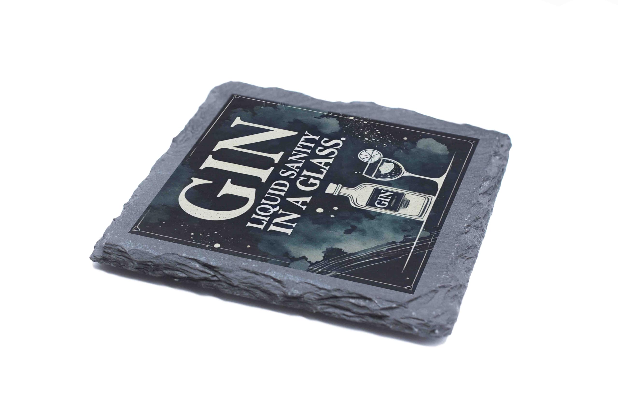 Add a splash of humor to your gatherings with the "Gin - Liquid Sanity in a Glass" Slate Coaster. Perfect for gin lovers, this charming coaster combines practicality with personality. Made from high-quality natural slate, it protects your surfaces while showcasing a stylish and funny design. Whether you're hosting a cocktail party, enjoying a quiet evening drink, or looking for a unique gift, this coaster is a delightful addition to any home. Bring a smile to the gin lover in your life with this one-of-a-kind piece!