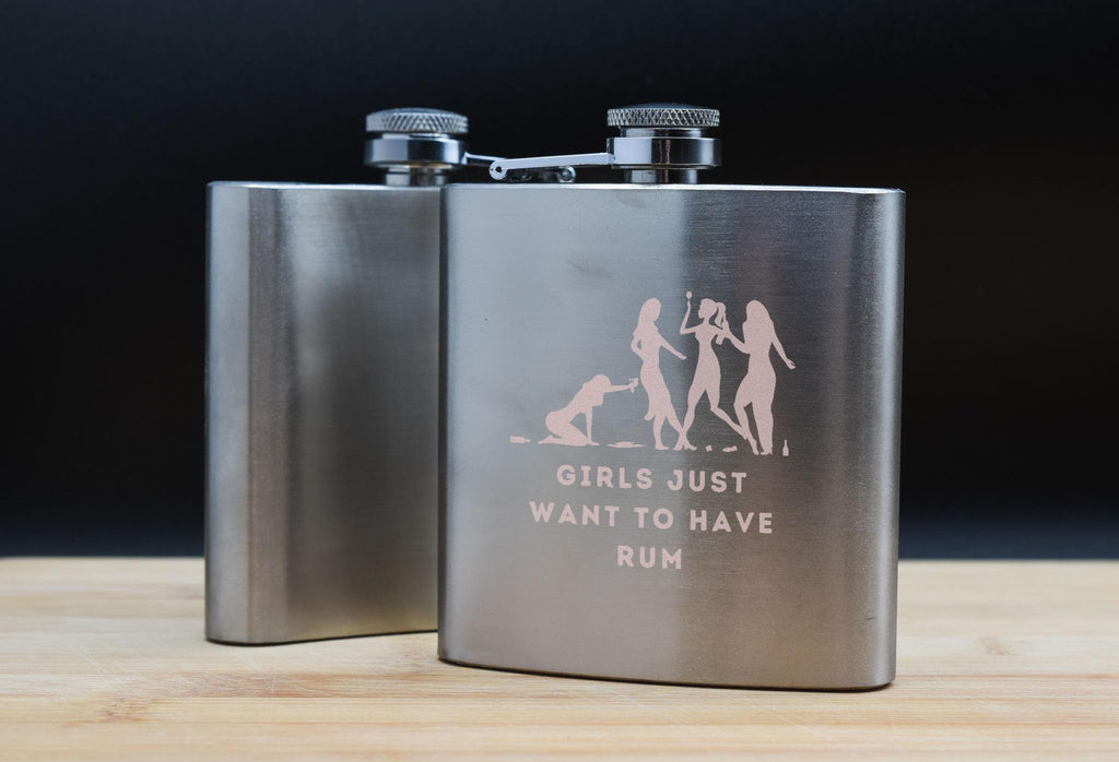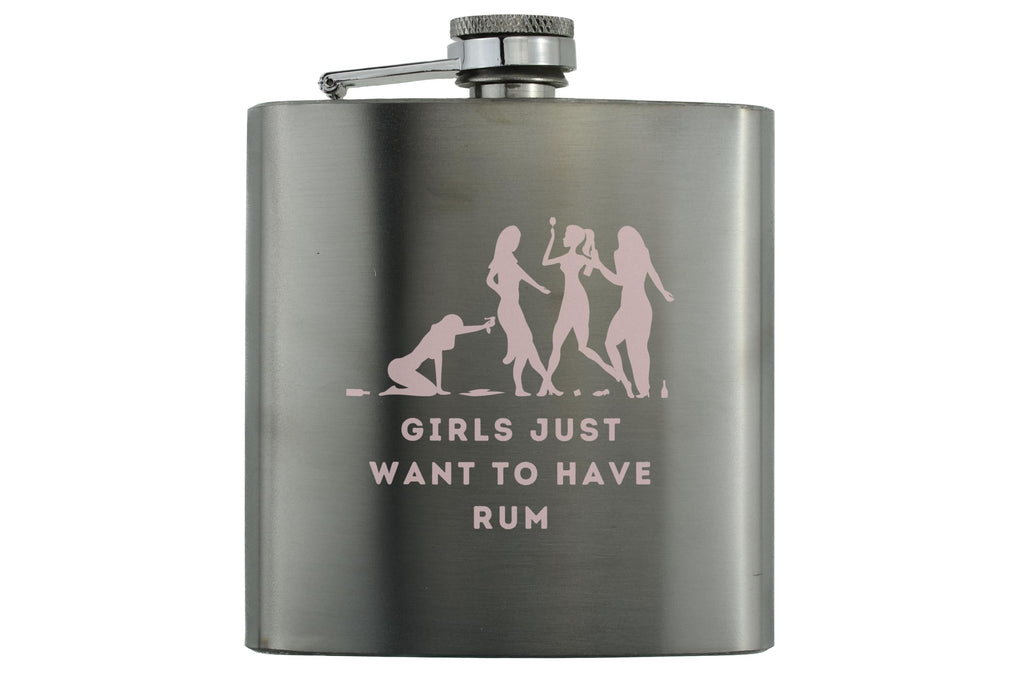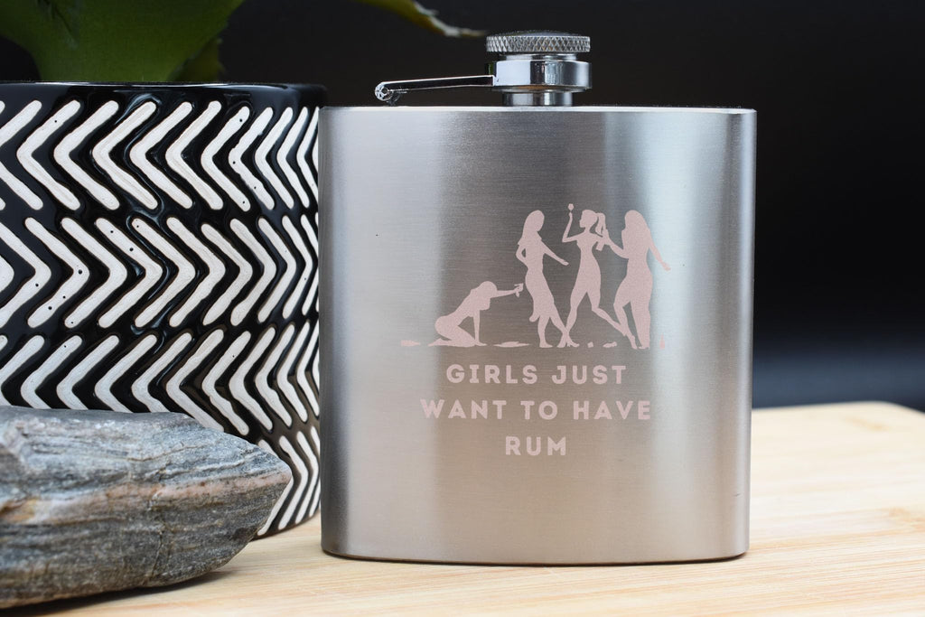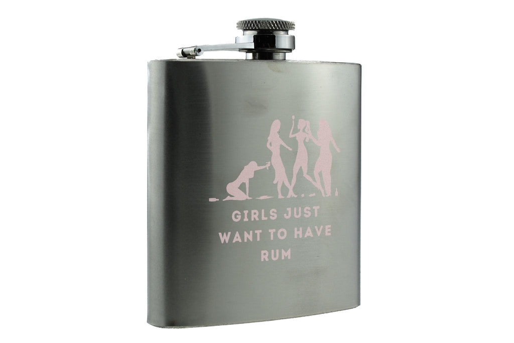 The 'Girls Just Want to Have Rum Stainless Steel Flask' is the perfect accessory for any girls night out or bachelorette party. This fun and stylish flask is a must-have for rum lovers and party girls alike. The UV printed design features a dusty pink colour scheme and the phrase 'Girls just want to have rum' in full colour. Celebrate with your friends in style with this humorous drinking flask, guaranteed to be a hit at any celebration.