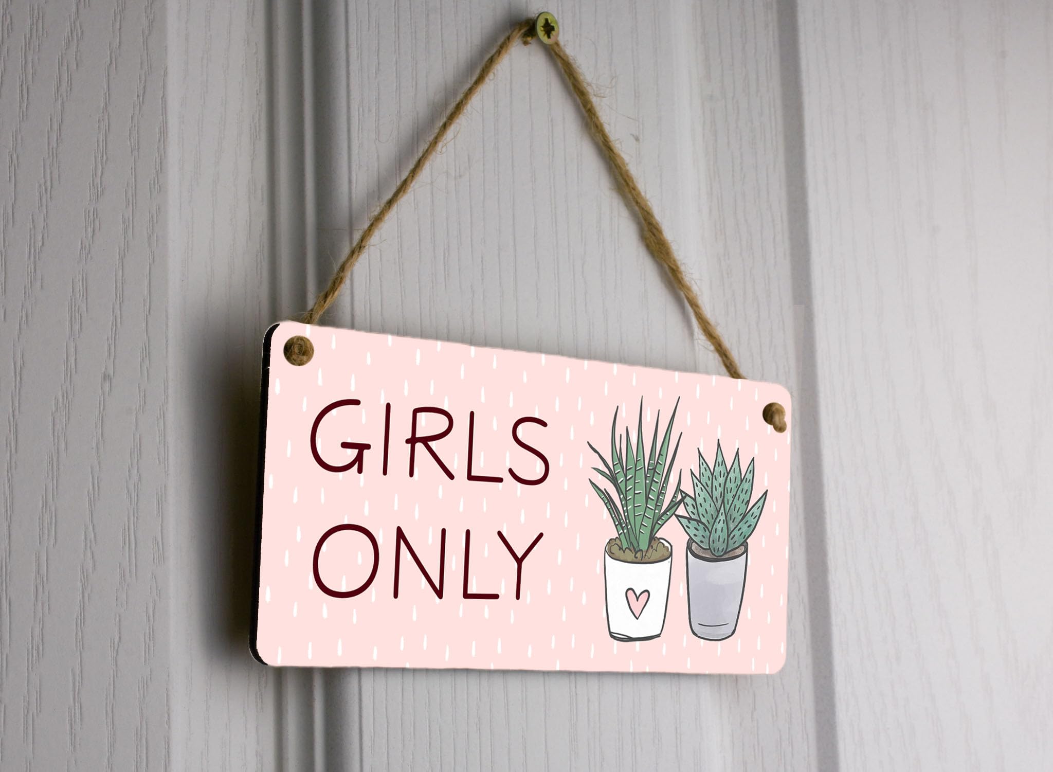Transform your daughter's bedroom into a Girls Only Paradise with this modern plant design plywood hanging sign. Made with high-quality plywood, this sign features a vibrant, full color design that will add a touch of elegance to any room. The sign reads 'Girls Only' and is a perfect gift for daughters of all ages. Hang it on the wall or door to create a special place just for your daughter. This sign is not only a fun and stylish decor piece but also a clear message to all boys that they are not allowed in her personal space. Give your daughter a gift she will cherish for years to come with this beautiful and unique plywood hanging sign.