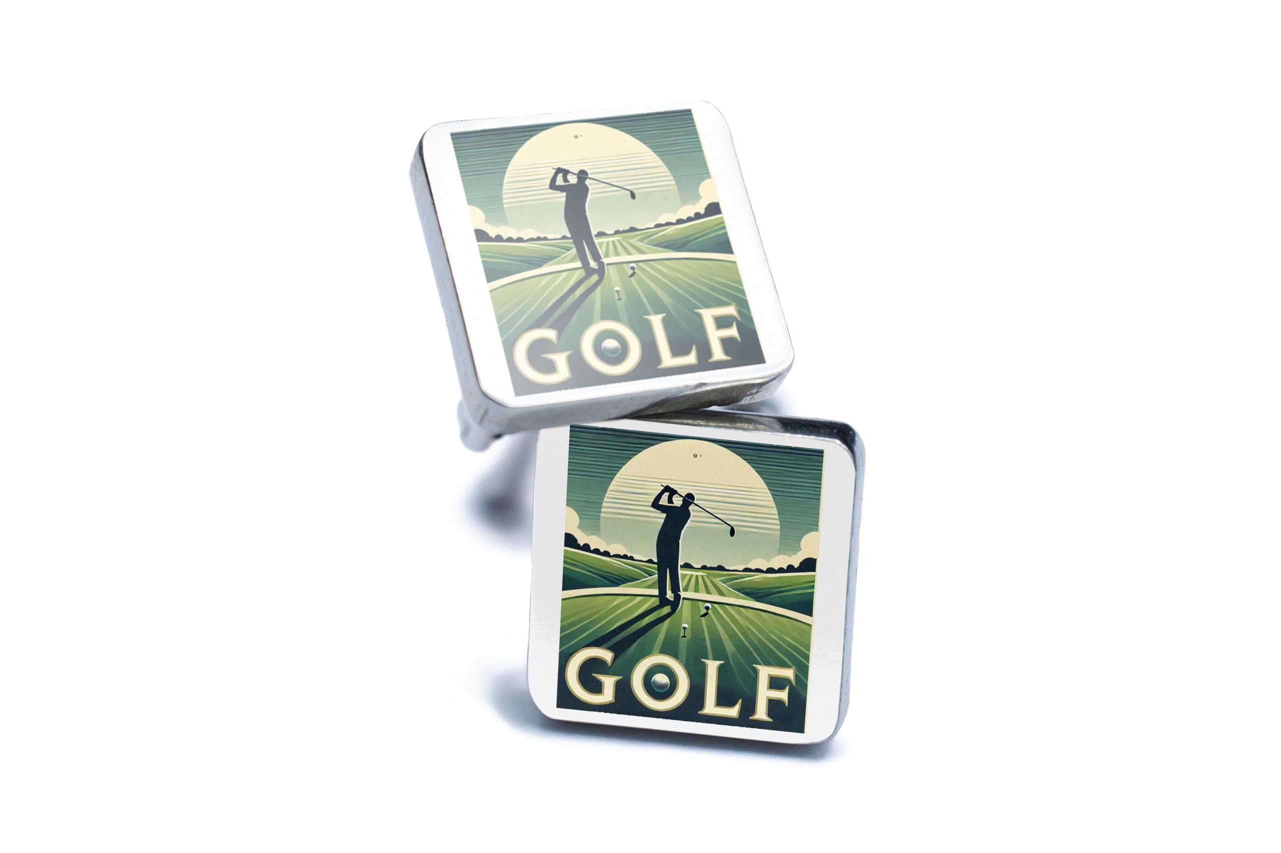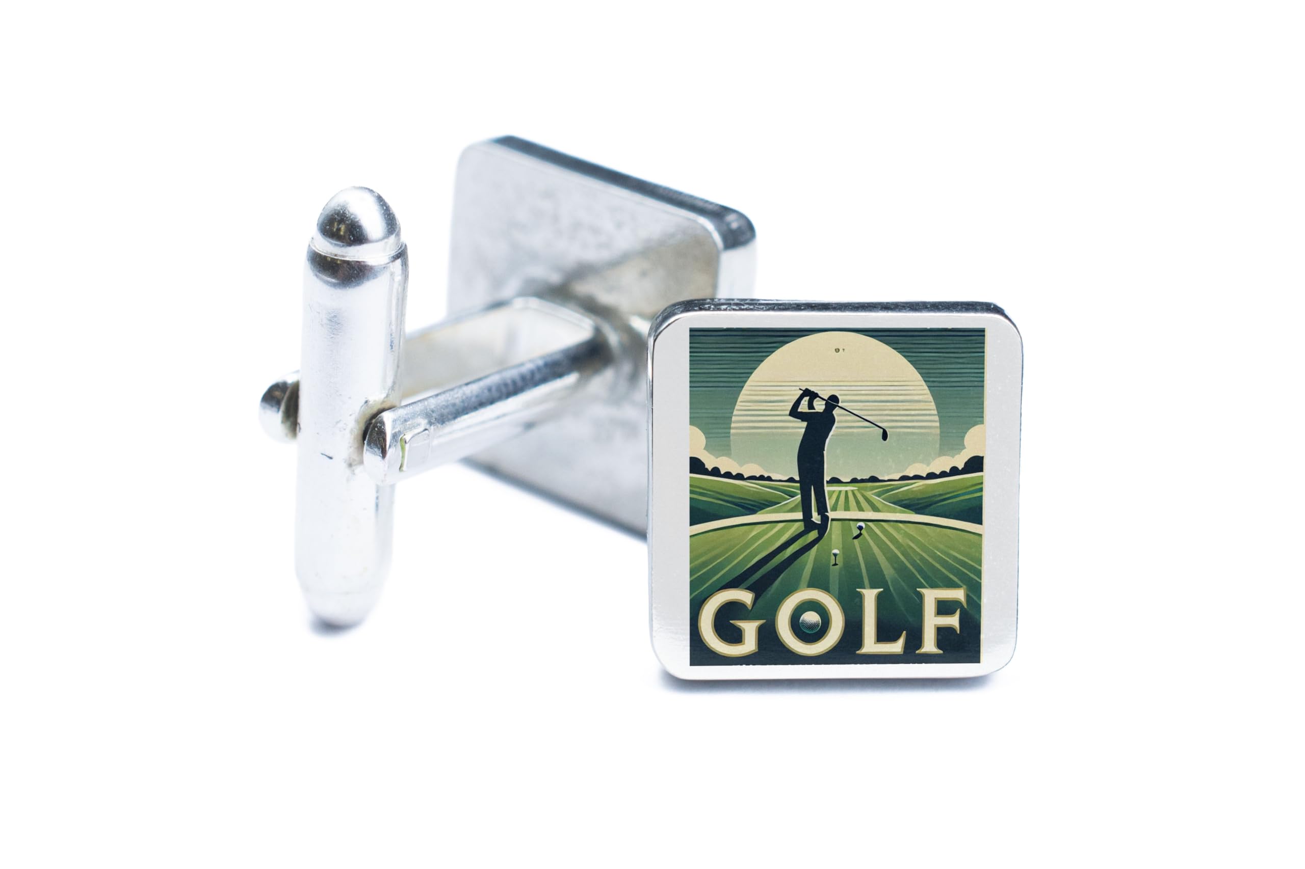 Celebrate your love for golf with these Golf Enthusiast Cufflinks. The cufflinks showcase a golfer mid-swing, framed by a stunning landscape, making them a must-have accessory for golf fans. Whether you're attending a formal event or simply want to express your passion for the sport, these cufflinks add a unique and stylish touch to your outfit. Made with high-quality materials, these cufflinks are built to last, ensuring they remain a treasured part of your collection for years to come. They come in a gift-ready box, making them a perfect present for birthdays, Father?s Day, or any special occasion. Stand out and show your love for golf with these one-of-a-kind cufflinks!