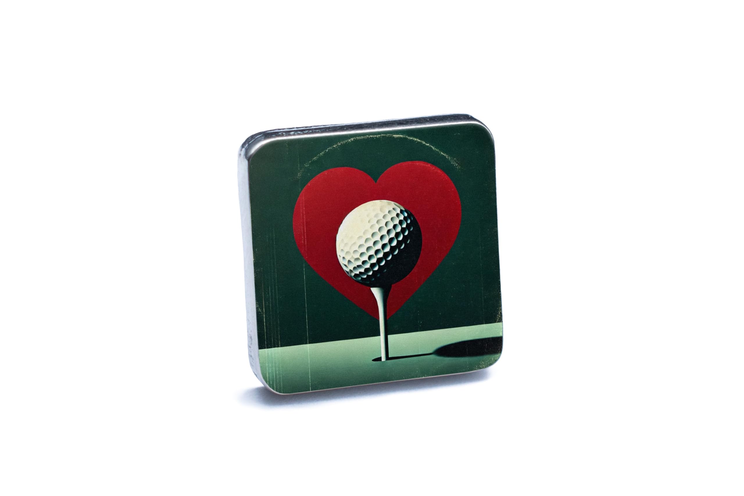 - Elegant Golf-Inspired Design: Features a golf ball and tee within a heart shape, perfect for showing love for the game.
