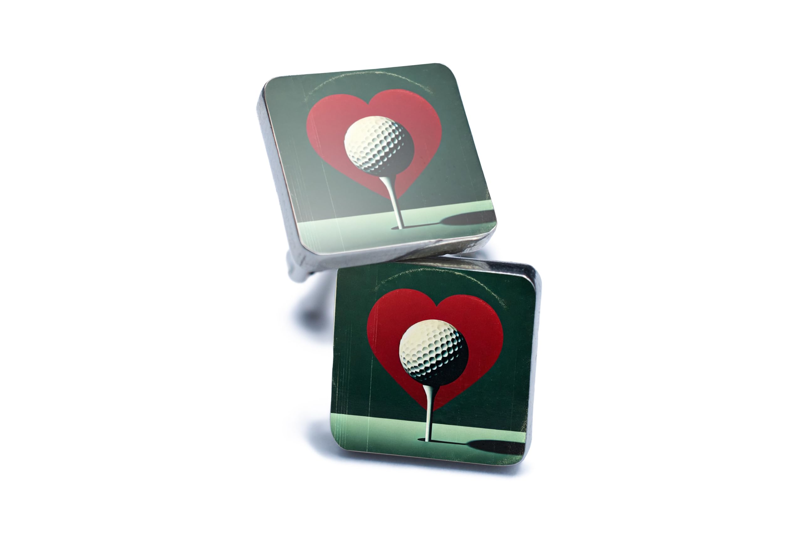 Celebrate your passion for golf with these Golf Lover Cufflinks. Featuring a golf ball and tee against a bold red heart design, these cufflinks are the ultimate accessory for golf enthusiasts. Whether you're hitting the green or heading to a formal event, they let you express your love for the game in style. Crafted with high-quality materials, these cufflinks are designed to be both stylish and durable. Perfect for gifting on special occasions, they come packaged in an elegant gift box, ready to surprise the golfer in your life. Add a unique and meaningful accessory to your wardrobe with these stunning cufflinks that perfectly capture the spirit of golf!