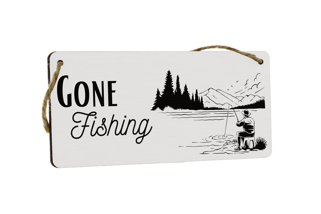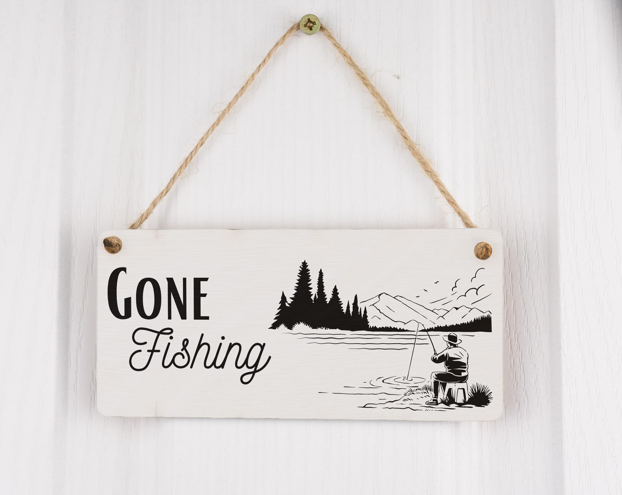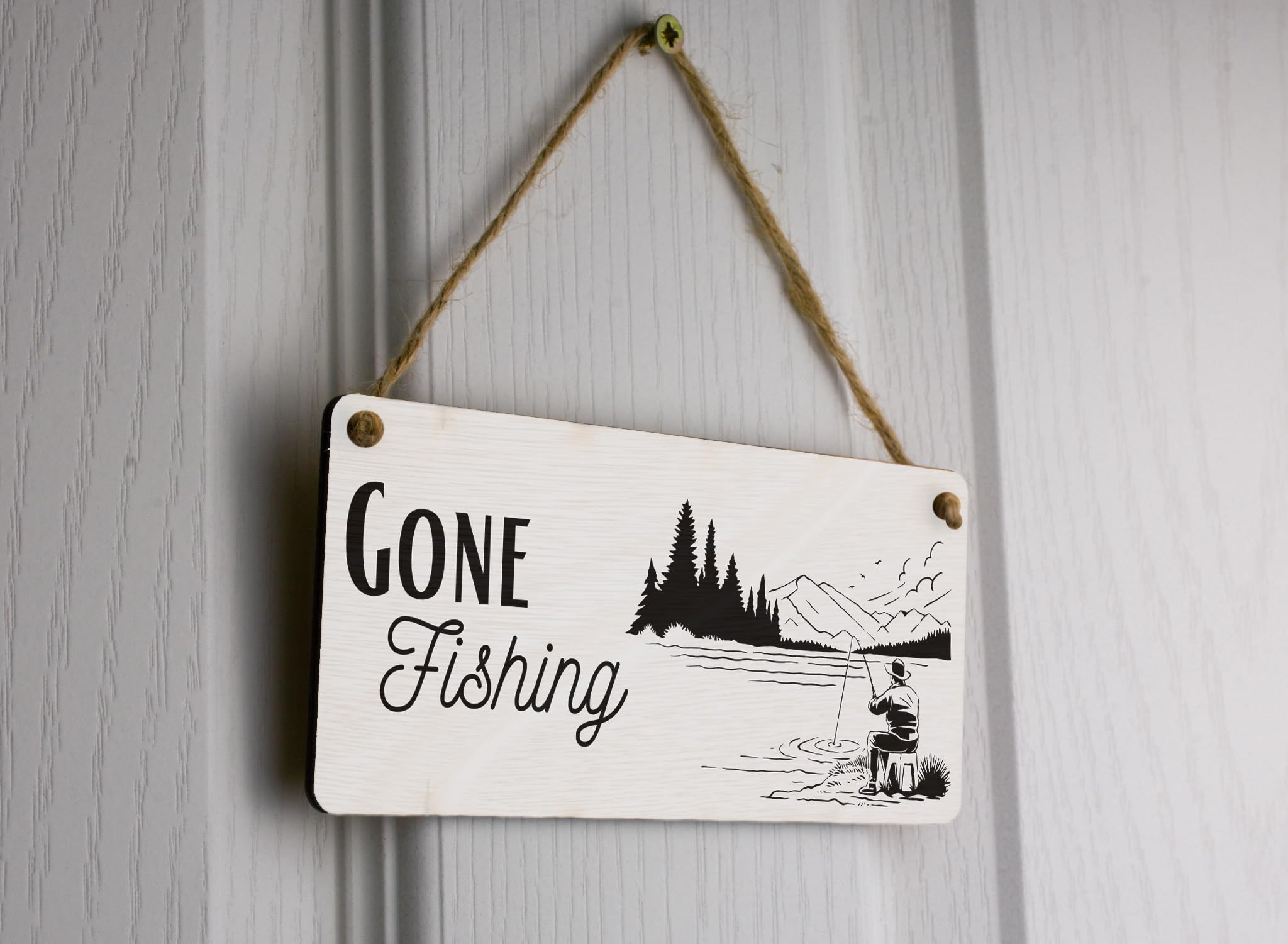 Gone Fishing Plywood Hanging Sign - Modern Design Idea for Dad and Grandad