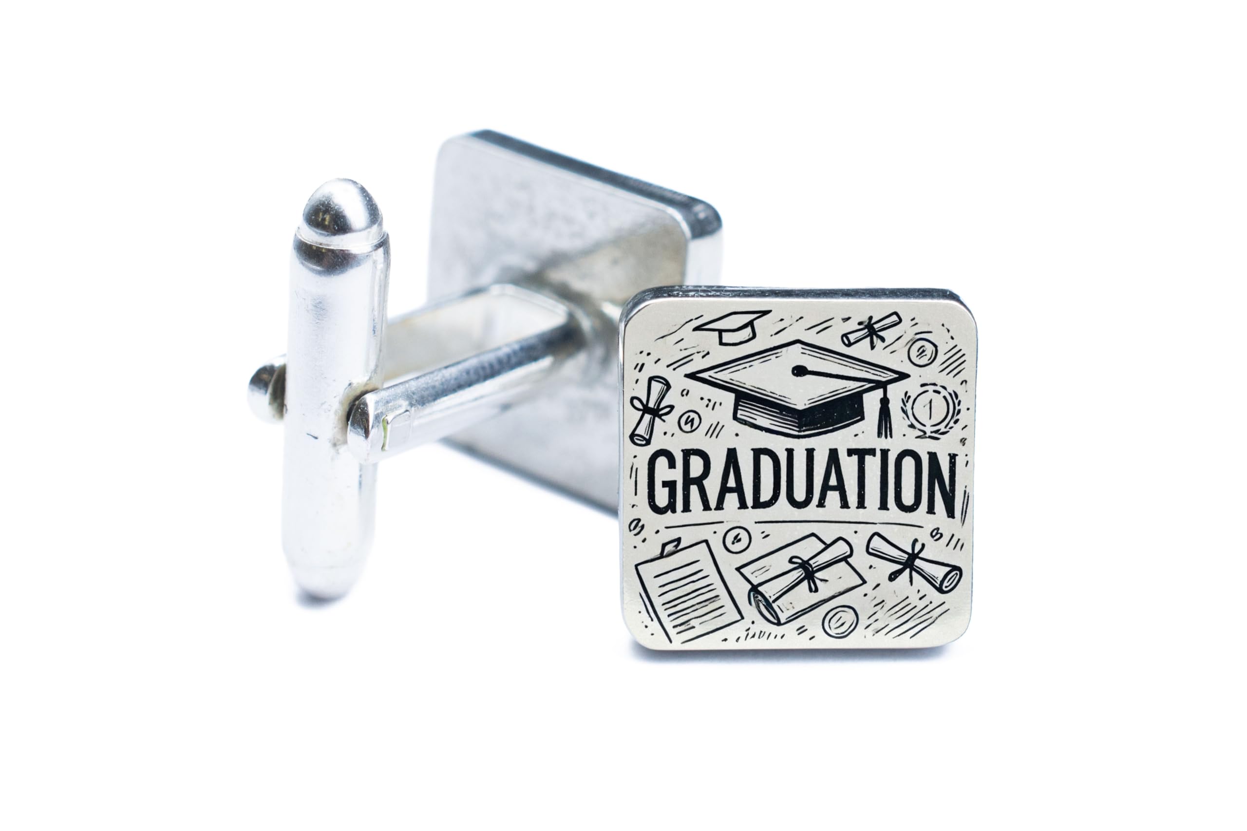 Commemorate the significant achievement of graduation with these Graduation Themed Cufflinks. Featuring a detailed design of a graduation cap, diploma, and academic motifs, these cufflinks are a stylish way to celebrate academic success. Whether you're a graduate, proud parent, or educator, these cufflinks make a thoughtful and elegant accessory for graduation ceremonies and celebrations. Made from premium materials with a polished finish, they?re designed to last and serve as a cherished keepsake. Presented in a beautiful gift box, these cufflinks are perfect for gifting to loved ones or as a personal memento of a proud accomplishment. Celebrate success in style with these unique and meaningful cufflinks.
