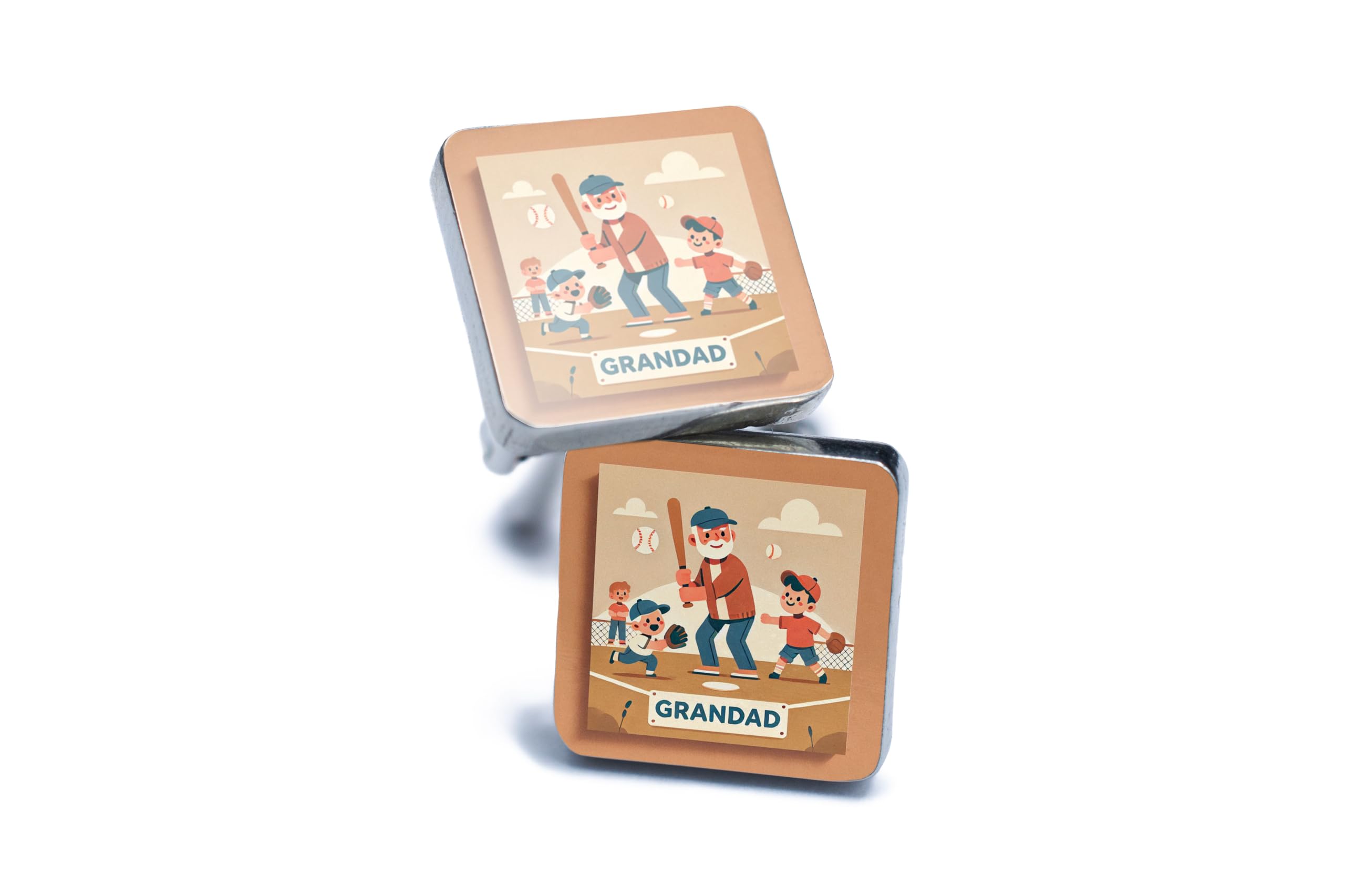 Celebrate the joy of family and cherished memories with these "Grandad Baseball" cufflinks. Designed with a heartwarming illustration of a grandad playing baseball with his grandchildren, these cufflinks are a beautiful way to honor the special moments shared across generations. Made with durable materials and a high-gloss finish, these cufflinks are both practical and meaningful. Whether worn on Father?s Day, a grandad?s birthday, or a family gathering, they will always remind him of the love and laughter shared with his family. Perfect for formal and semi-casual outfits, these cufflinks make a thoughtful and sentimental gift that any grandad would treasure.