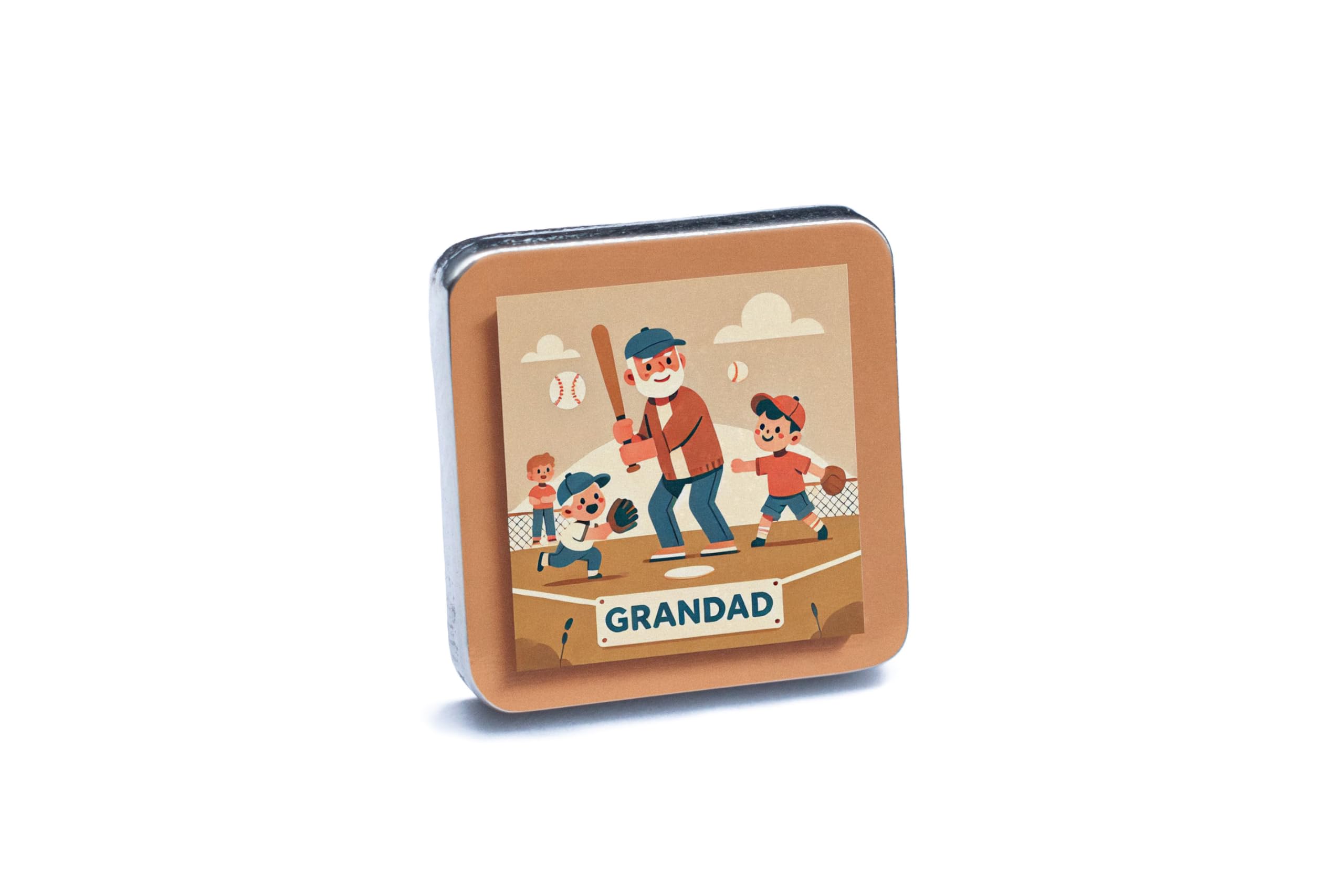 • Heartwarming Design: Features a playful illustration of a grandad enjoying a baseball game with grandchildren.