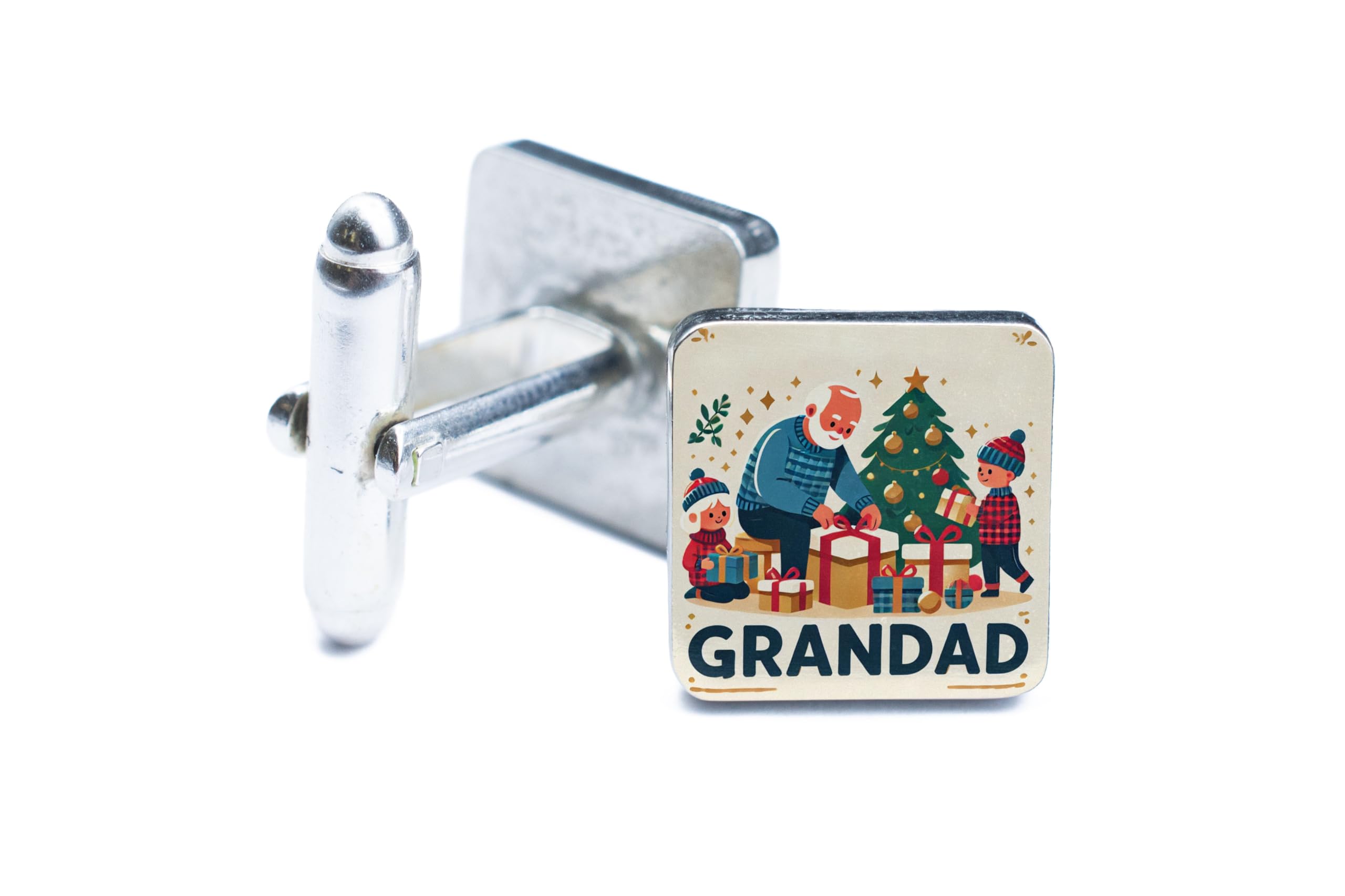 Celebrate Christmas with a Gift Full of Love Make this holiday season extra special for your grandad with these festive and heartwarming cufflinks. Featuring a delightful design of a grandad sharing the joy of unwrapping gifts with his grandchildren under a beautifully decorated Christmas tree, these cufflinks capture the true spirit of family and love during the holidays. Crafted for Elegance and Comfort These cufflinks are made from high-quality materials, ensuring durability and a polished, sophisticated finish. The secure fastening mechanism guarantees they stay in place while offering ease of wear, making them perfect for holiday gatherings, formal events, or everyday use. A Thoughtful Gift for the Best Grandad Looking for the perfect gift this Christmas? These cufflinks are more than just an accessory?they?re a heartfelt token of appreciation that your grandad will treasure forever. Whether he wears them during holiday celebrations or keeps them as a keepsake, they?ll always remind him of your love. Bring a smile to your grandad's face this holiday season with these beautifully designed cufflinks that celebrate family, love, and the magic of Christmas.