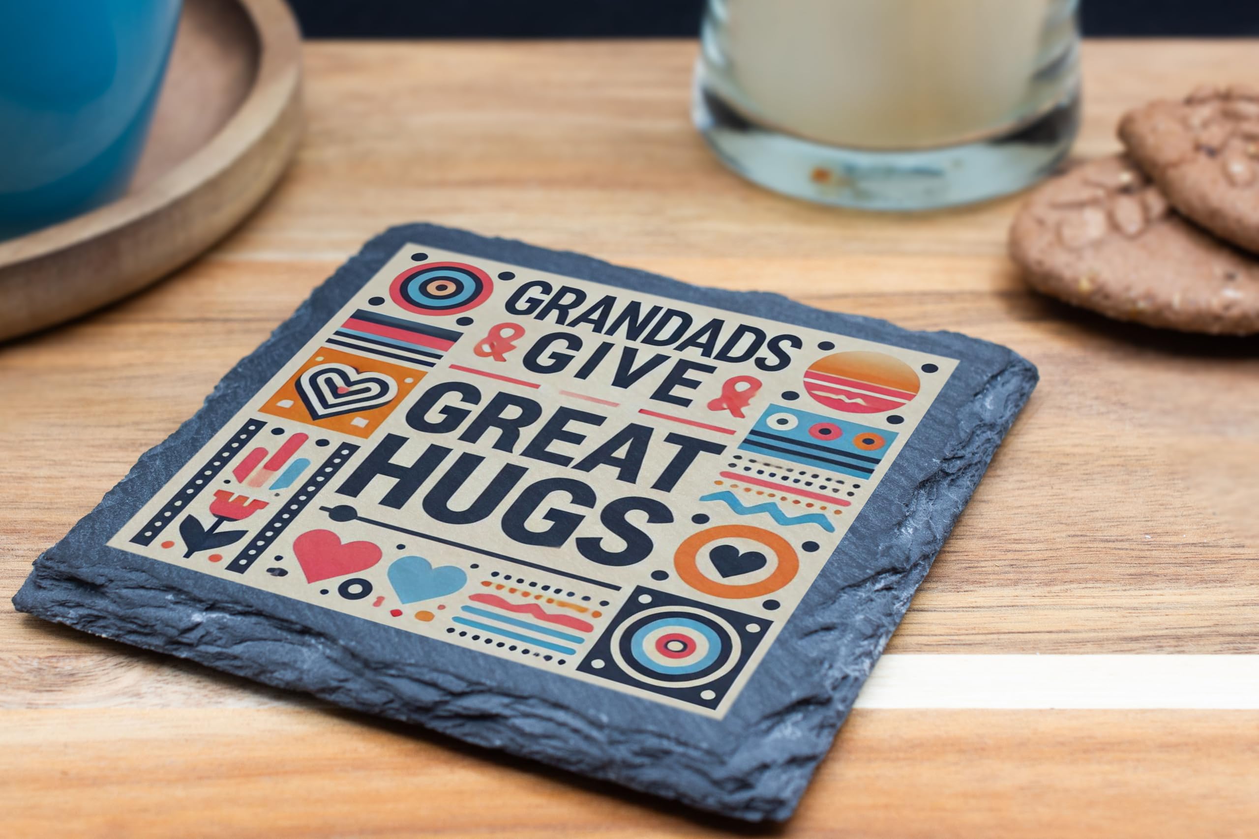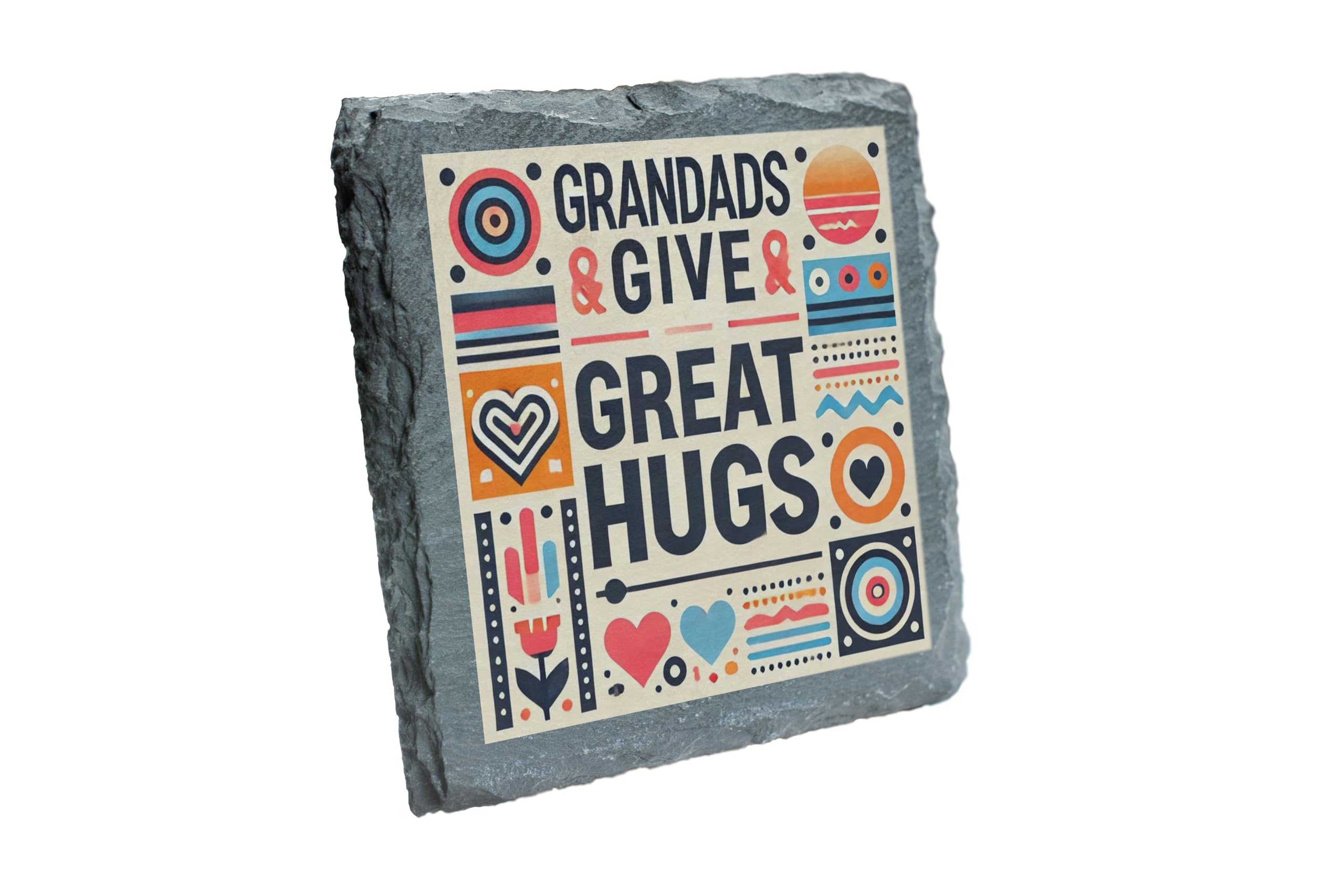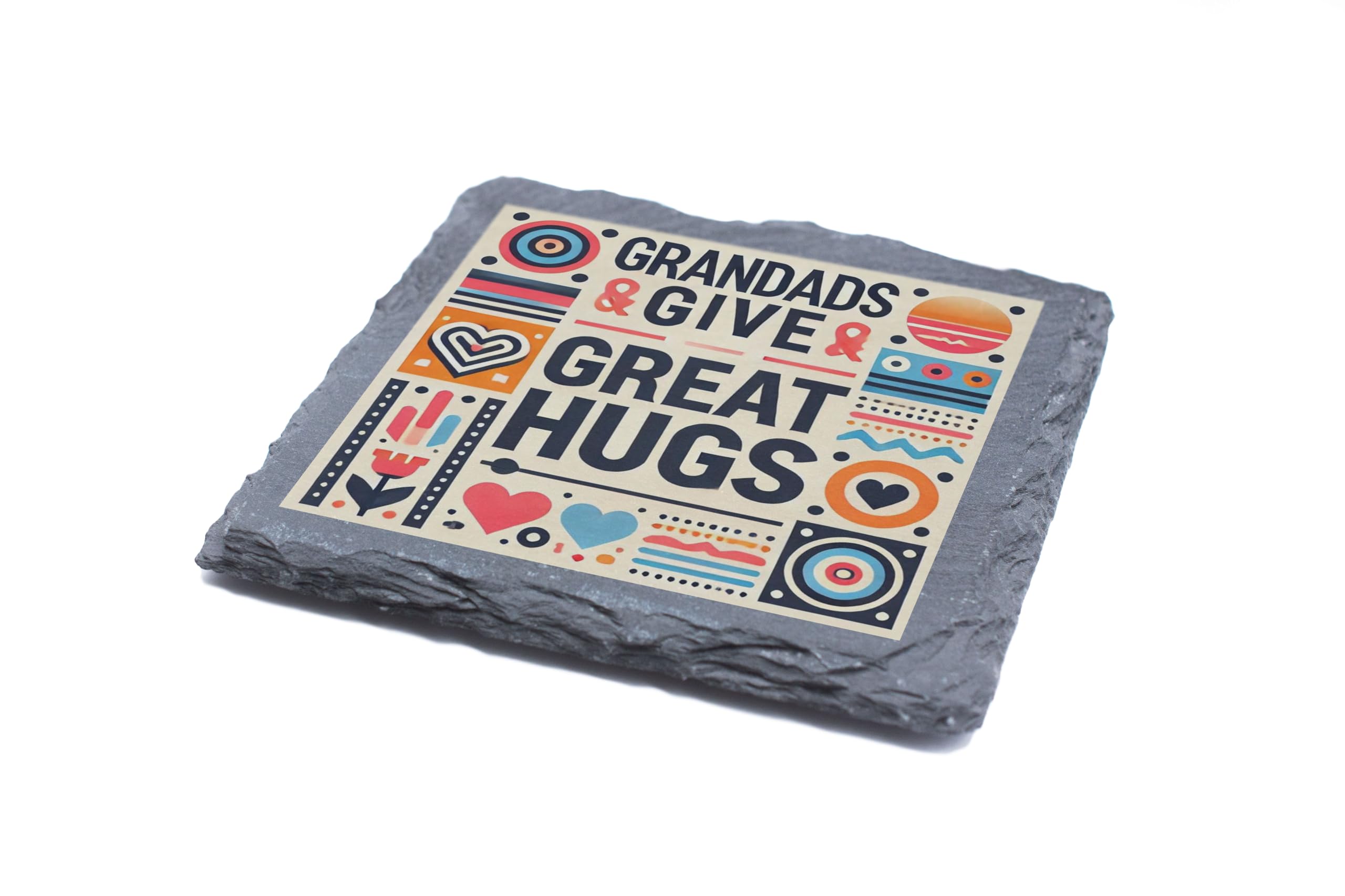 Grandads Give Great Hugs Slate Coaster - Colorful & Heartwarming Design (slco-ds24-greathugsrg)