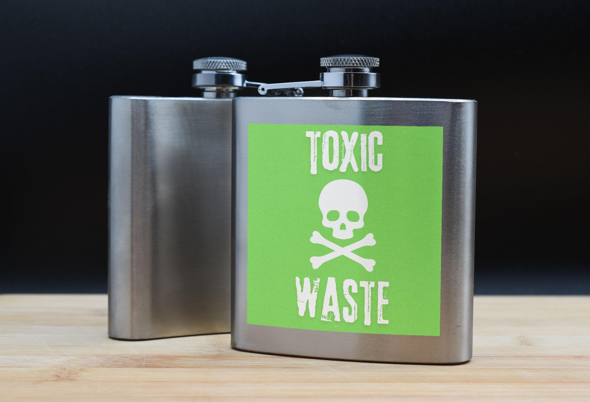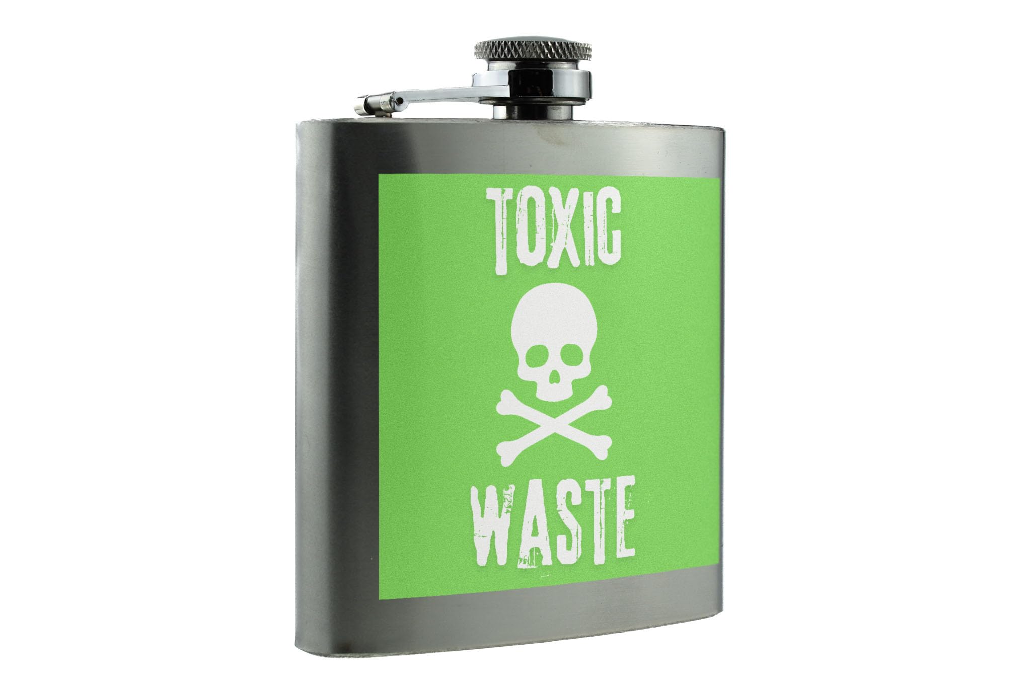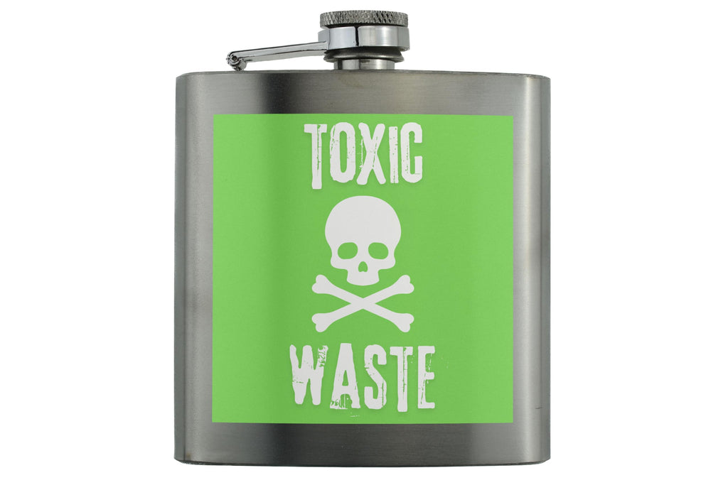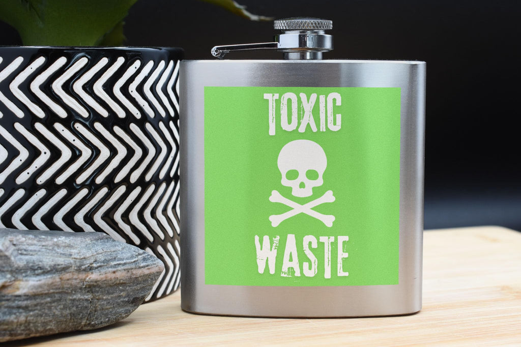 Get the party started with our Green Skull and Crossbones Hazard Symbol Flask! This quirky and edgy drink container is perfect for those who want to add a bit of attitude to their drinking accessories. Made from quality stainless steel, this novelty flask features a bold graphic design of a skull and crossbones, with the words 'toxic waste' printed in UV full colour on the front. The eye-catching design is sure to turn heads and spark conversations at any event. Whether you're heading out for a night on the town or looking for a unique gift for a friend, this travel-sized flask is a must-have.