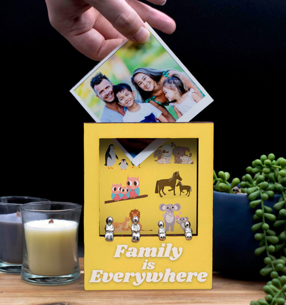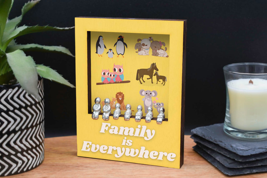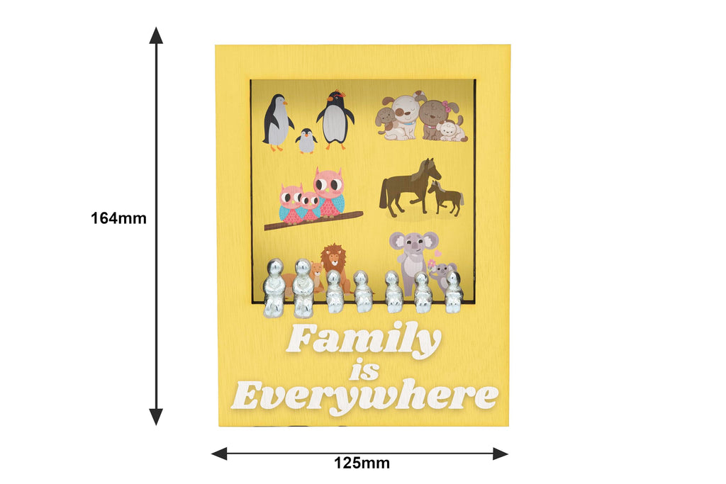 This beautifully handcrafted family decor piece is the perfect addition to any home. The Animal-Themed Laser Cut Plywood Frame with Tin Figurines features a charming 'Family is Everywhere' design that will warm the hearts of animal lovers and families alike. The colourful animal art on the UV printed frame is sure to bring a smile to your face every time you see it. The handmade tin figurines included add a whimsical touch to this unique display. This novelty handcrafted frame is a wonderful gift for any occasion, from birthdays to holidays. Show your love for your family with this one-of-a-kind piece of art.