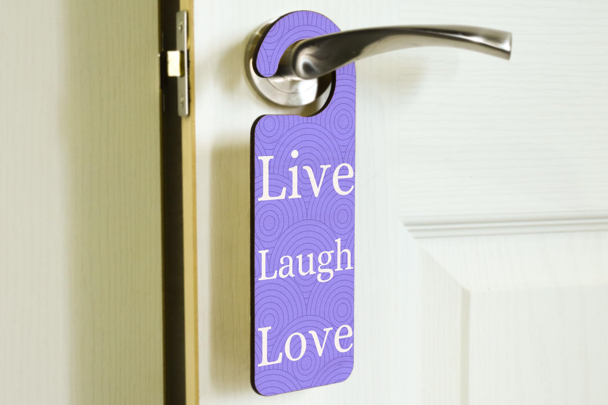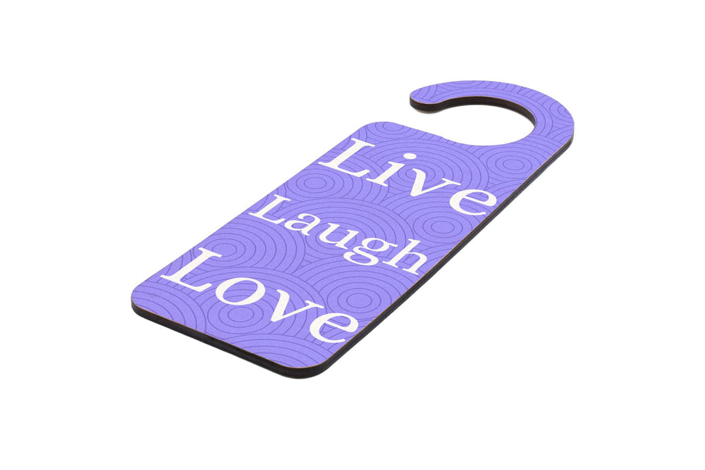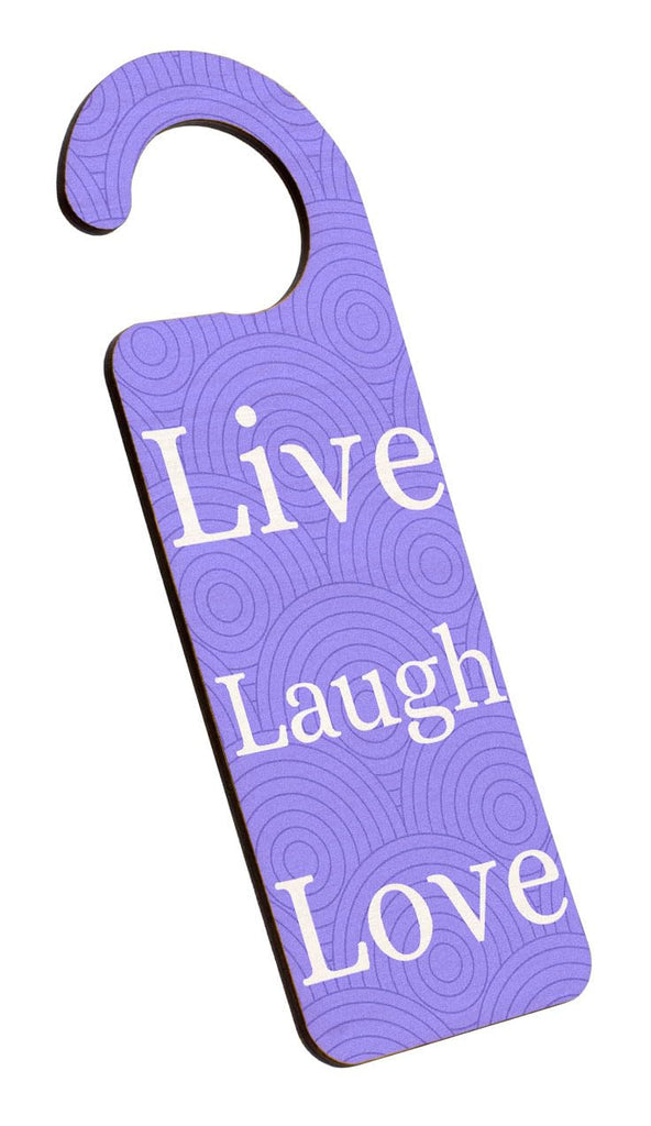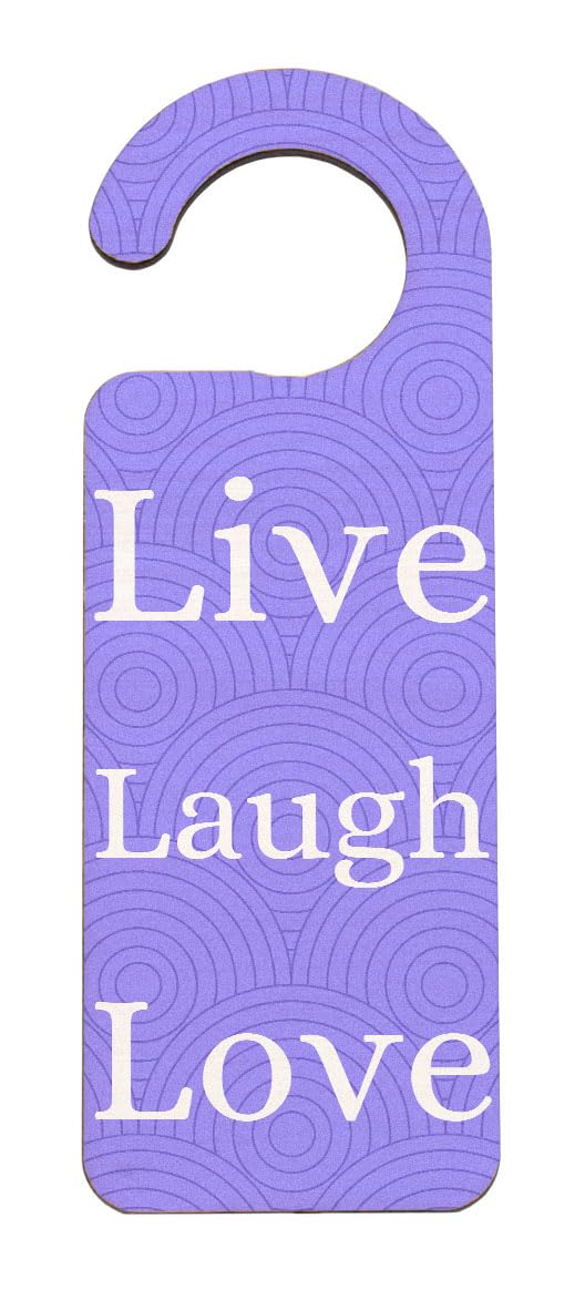 Add a touch of positivity and style to your living space with our handcrafted inspirational quote wall hanging. This decorative sign features uplifting words that read 'Live Laugh Love', perfect for adding a heartwarming message to your room decor. The full colour door hanger showcases a subtle purple design, making it a stylish accessory for any bedroom or living area. Made from handcrafted laser cut plywood, this motivational sign is a beautiful addition to your home decor collection.