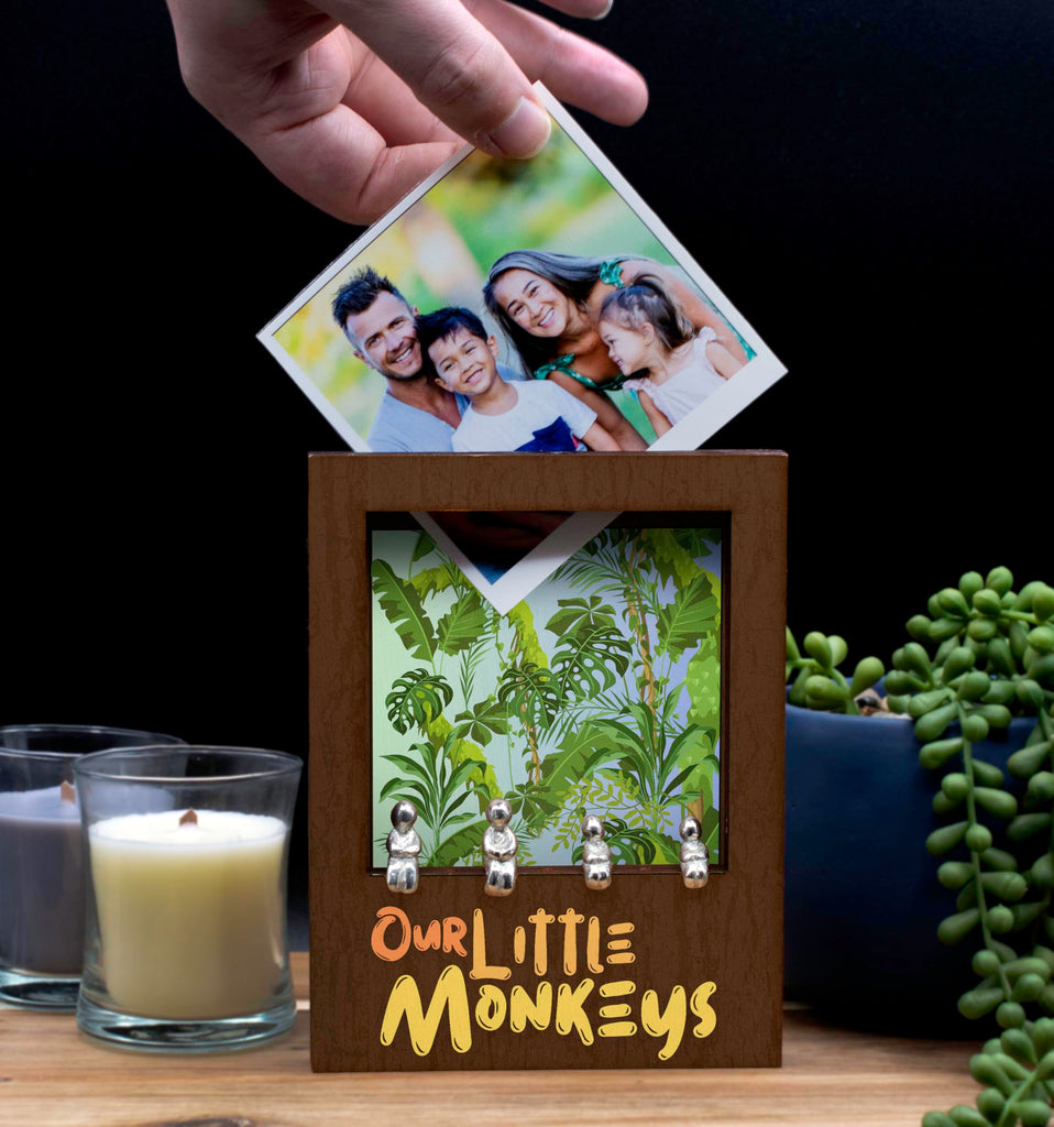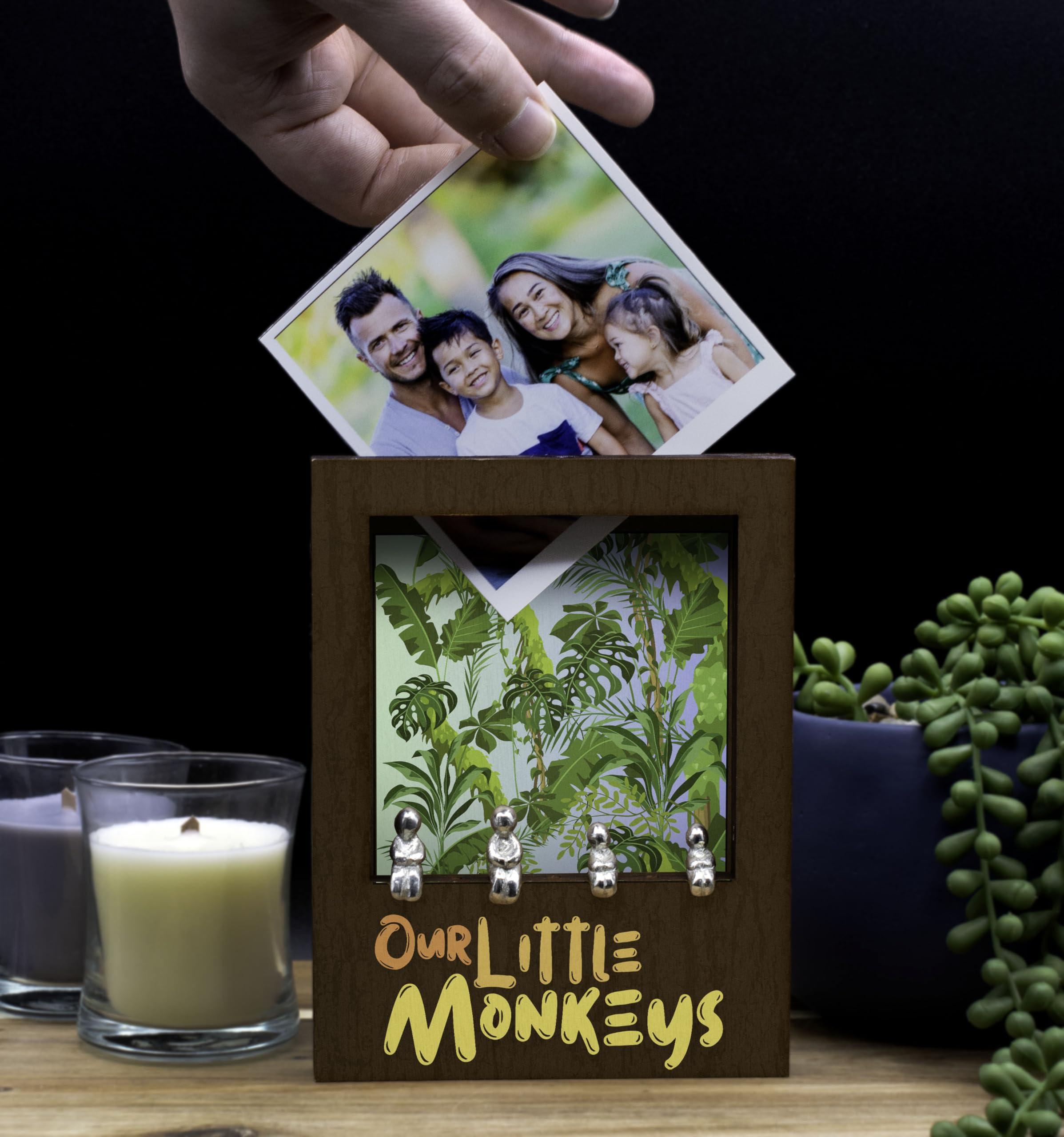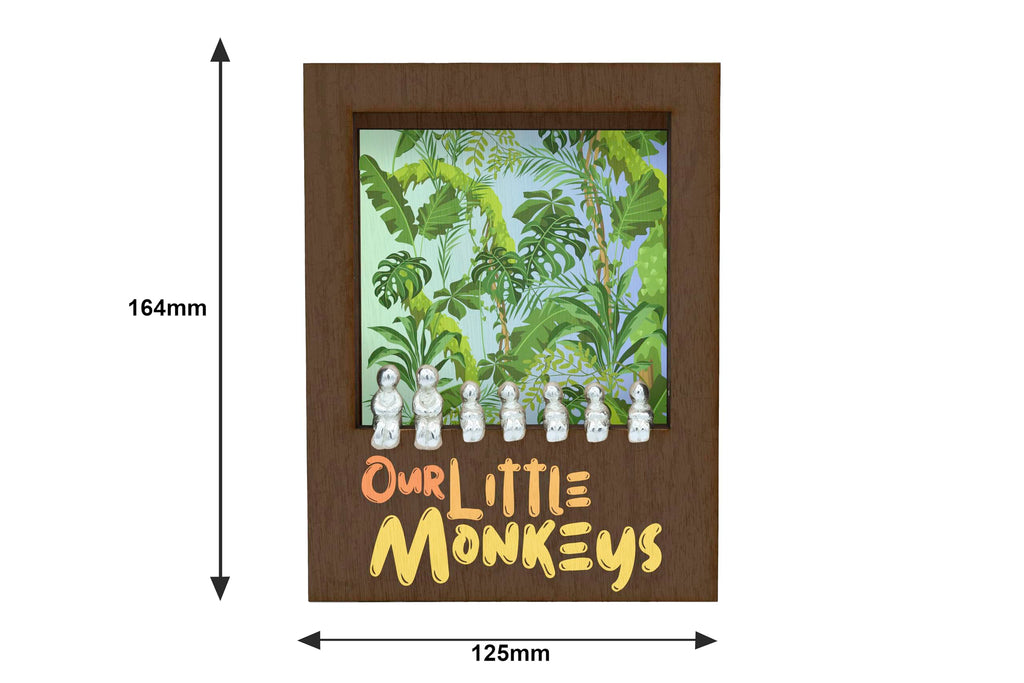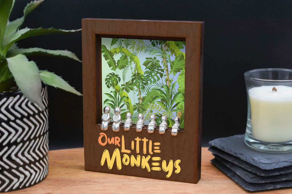 Add a touch of whimsical charm to your home with our Handcrafted Jungle Family Photo Frame with Tin Figurines. This novelty ornament features a playful design that is perfect for family-themed decor. The wooden frame is intricately sculpted and adorned with tin figurines, creating a jungle motif that will delight both children and adults alike. The fun and colourful display is sure to brighten up any room, making it a fantastic tabletop decoration. Each piece is handmade with artistic craftsmanship, ensuring that it is a sentimental keepsake for years to come. Bring a smile to your face with this unique and charming piece that showcases animal-themed charm in a truly original way.