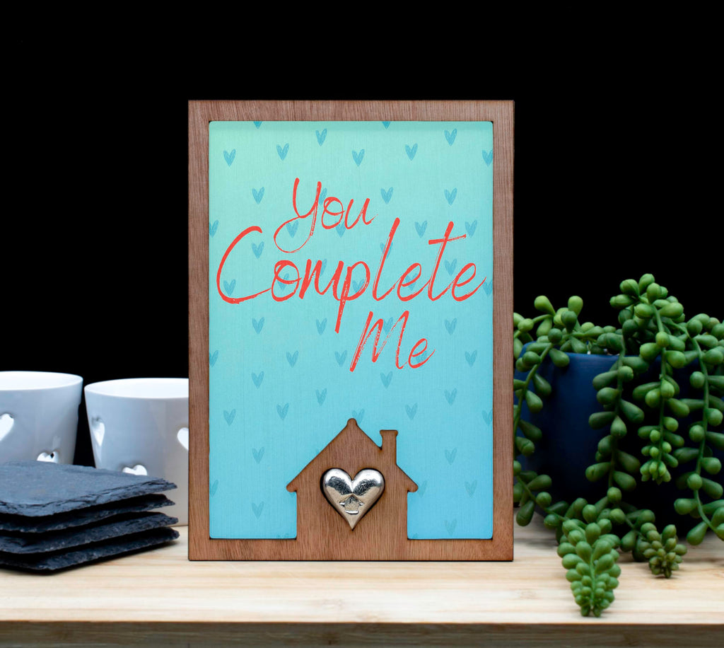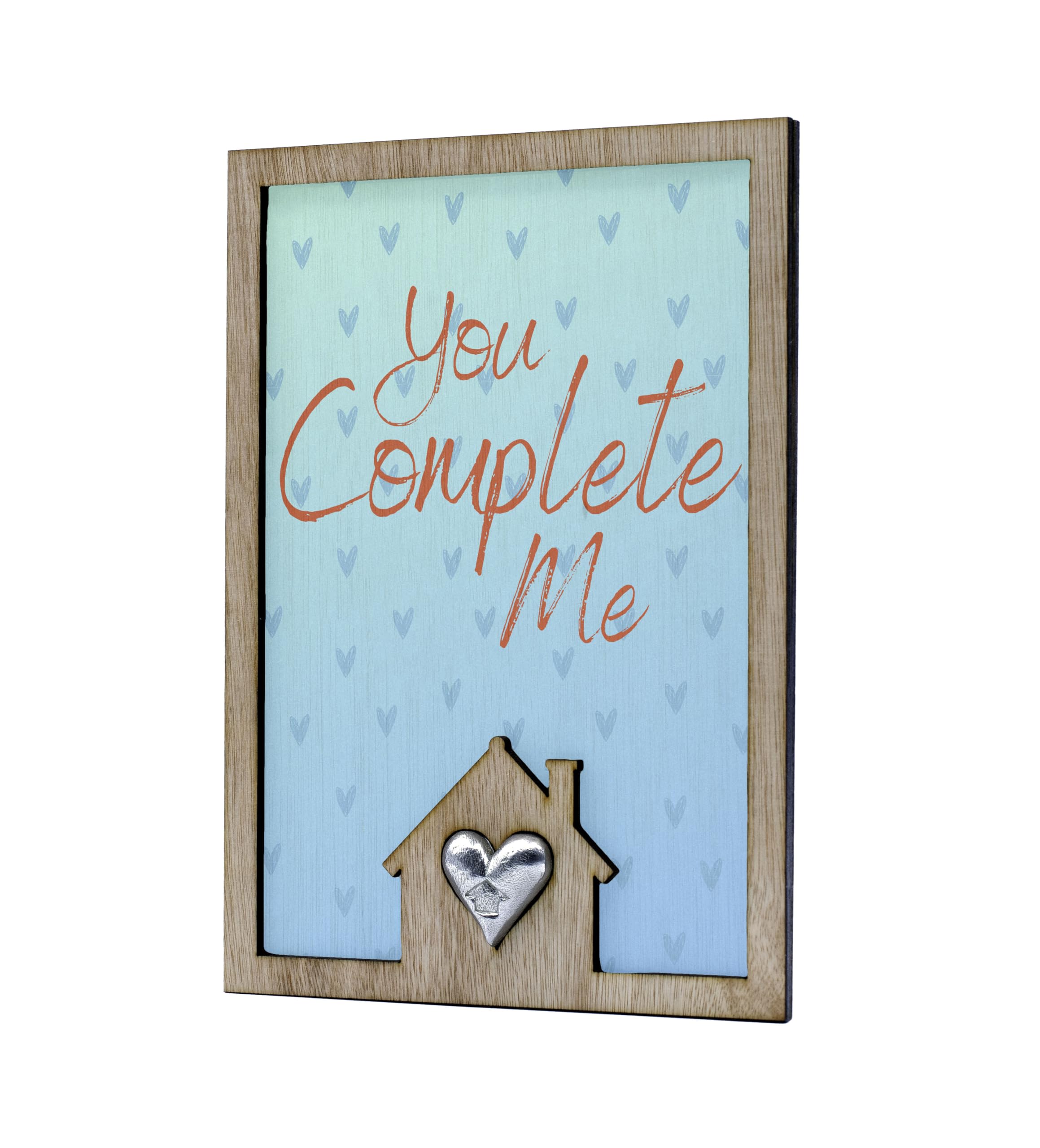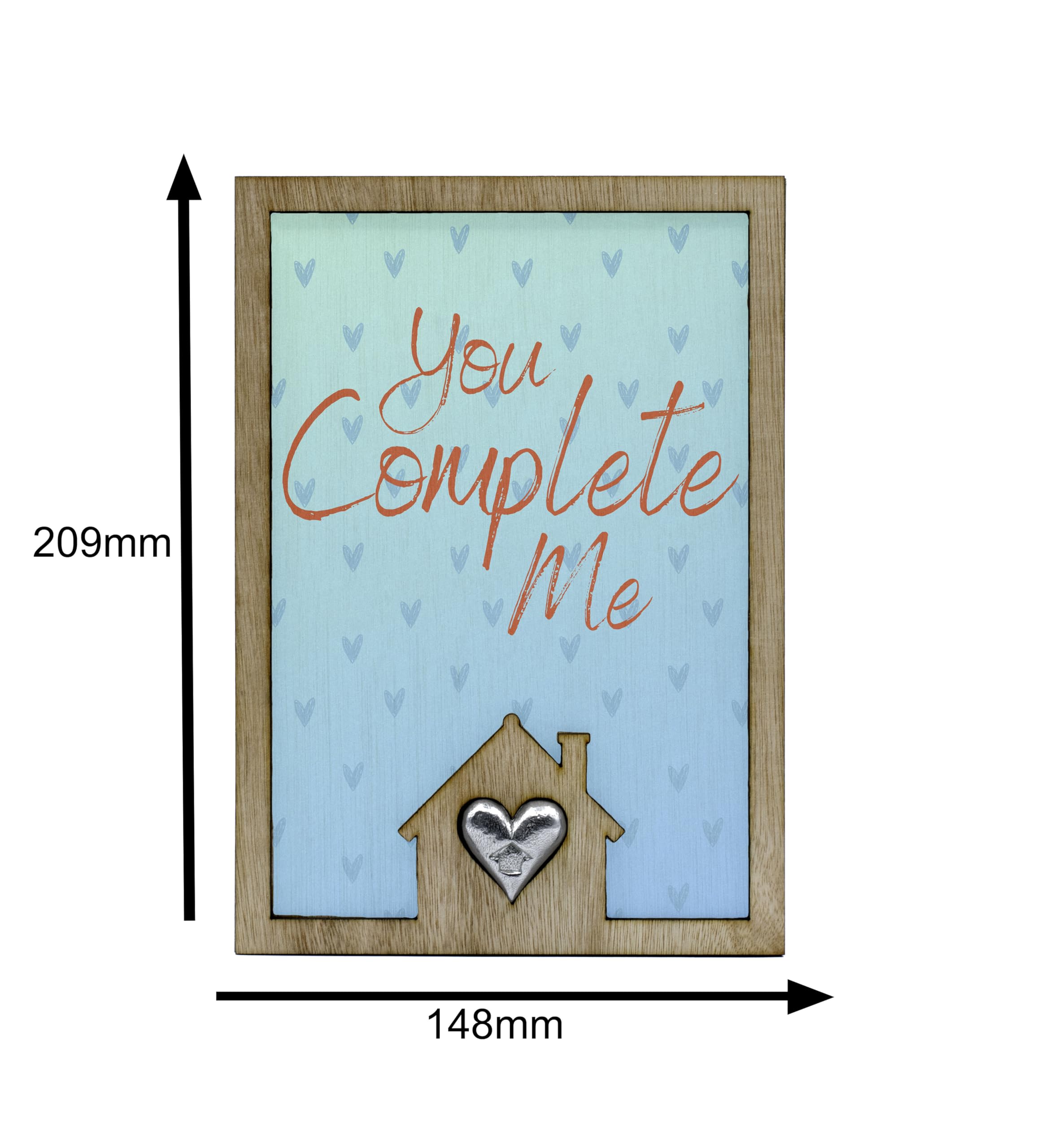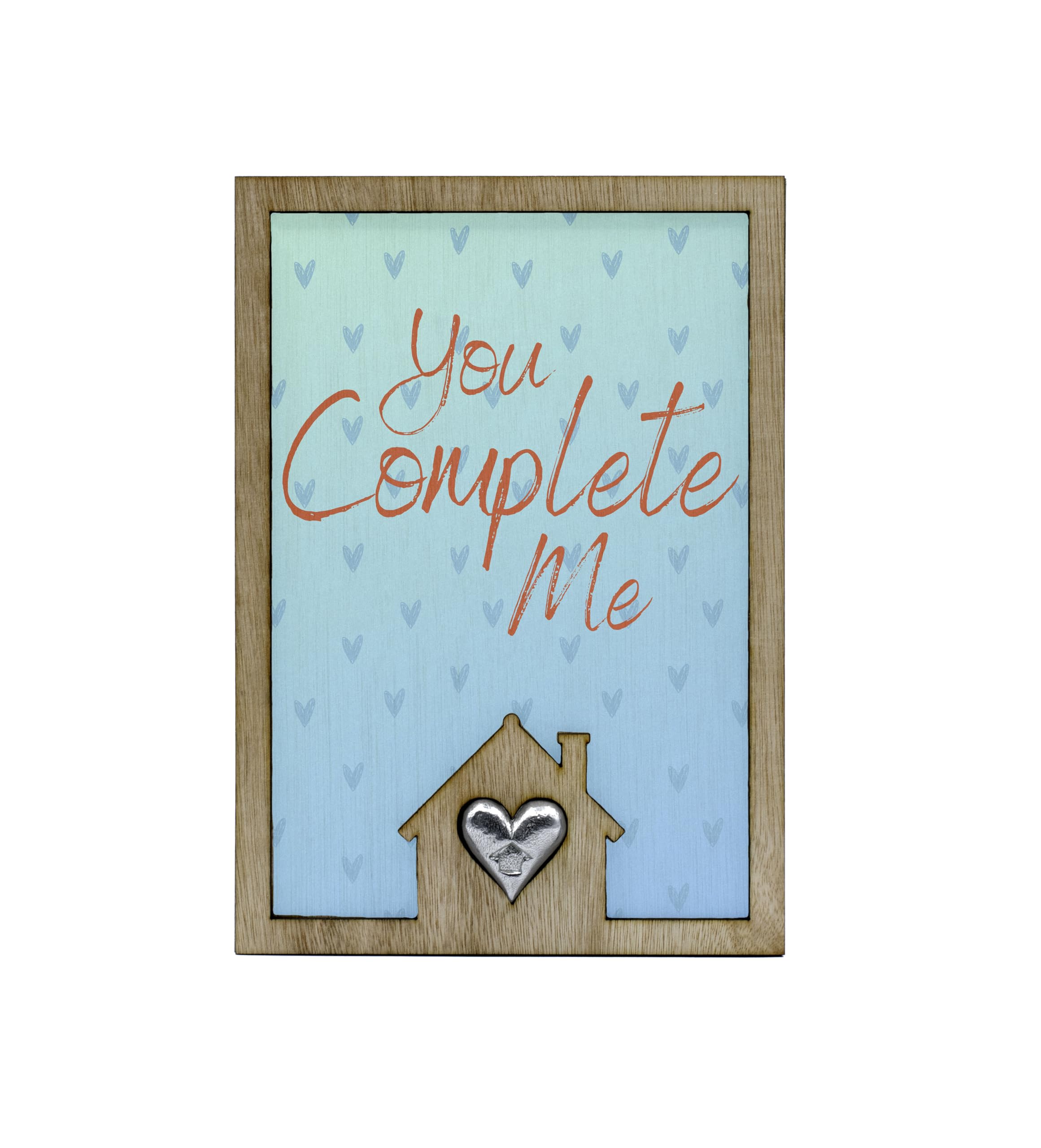 • Inspirational plaque with the love message 'you complete me' adds sentimental value