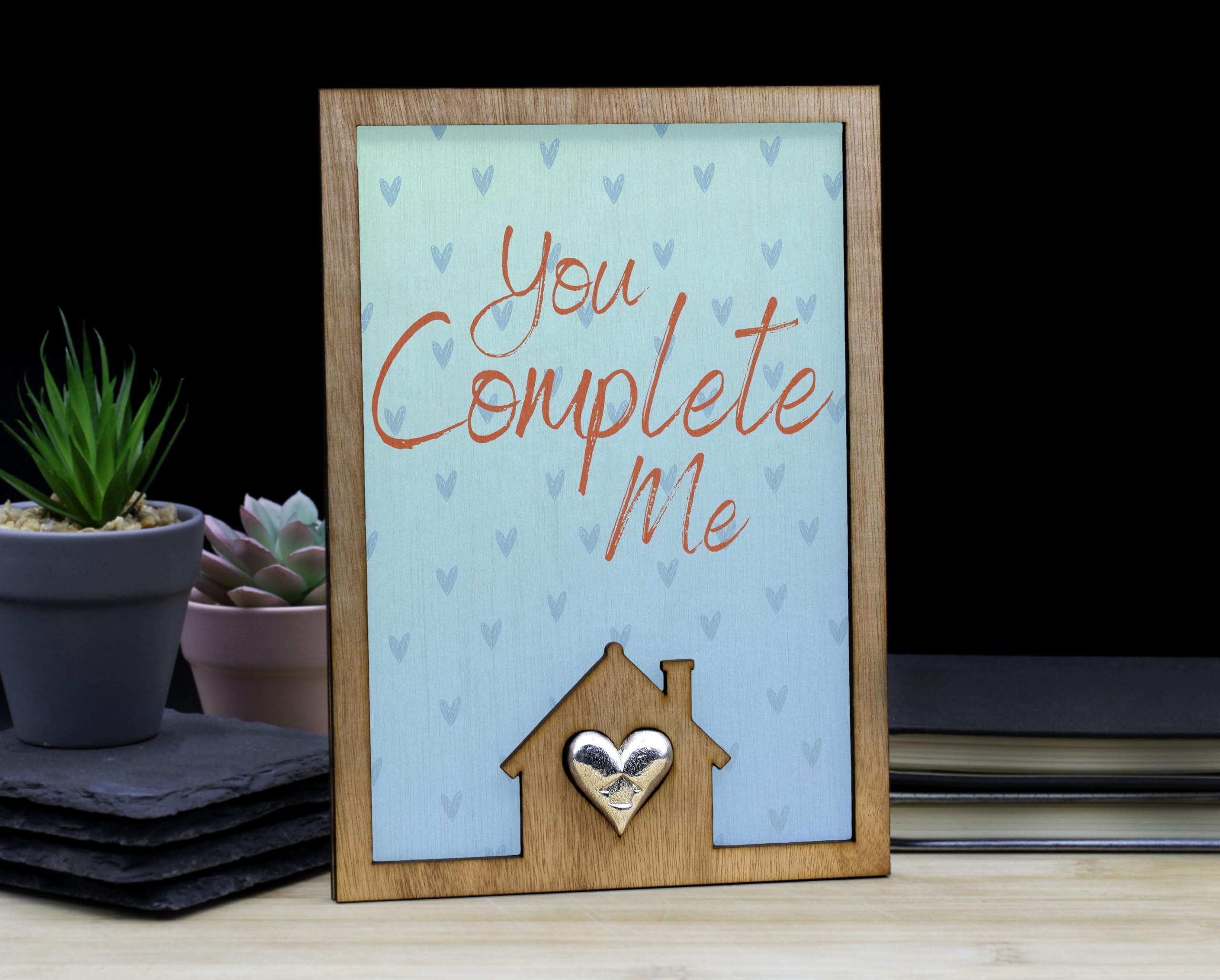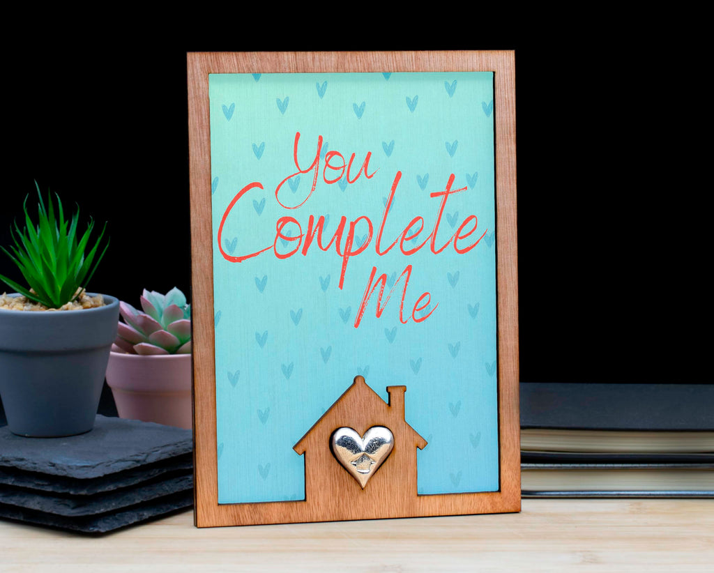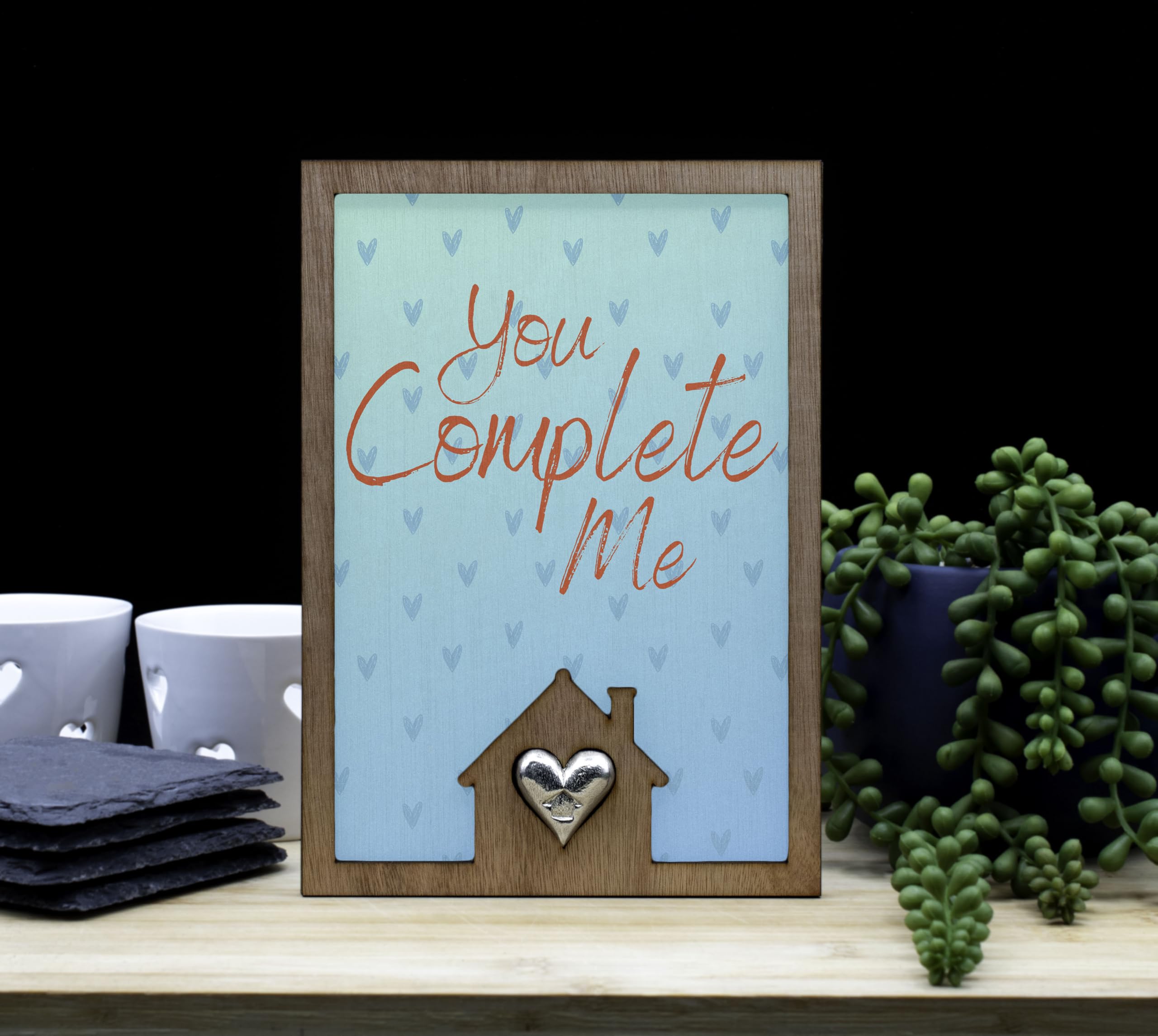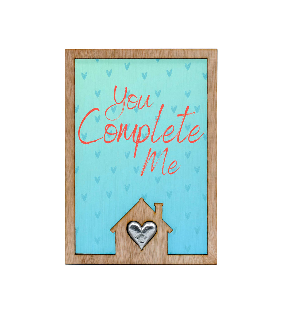 • Inspirational plaque with the love message 'you complete me' adds sentimental value